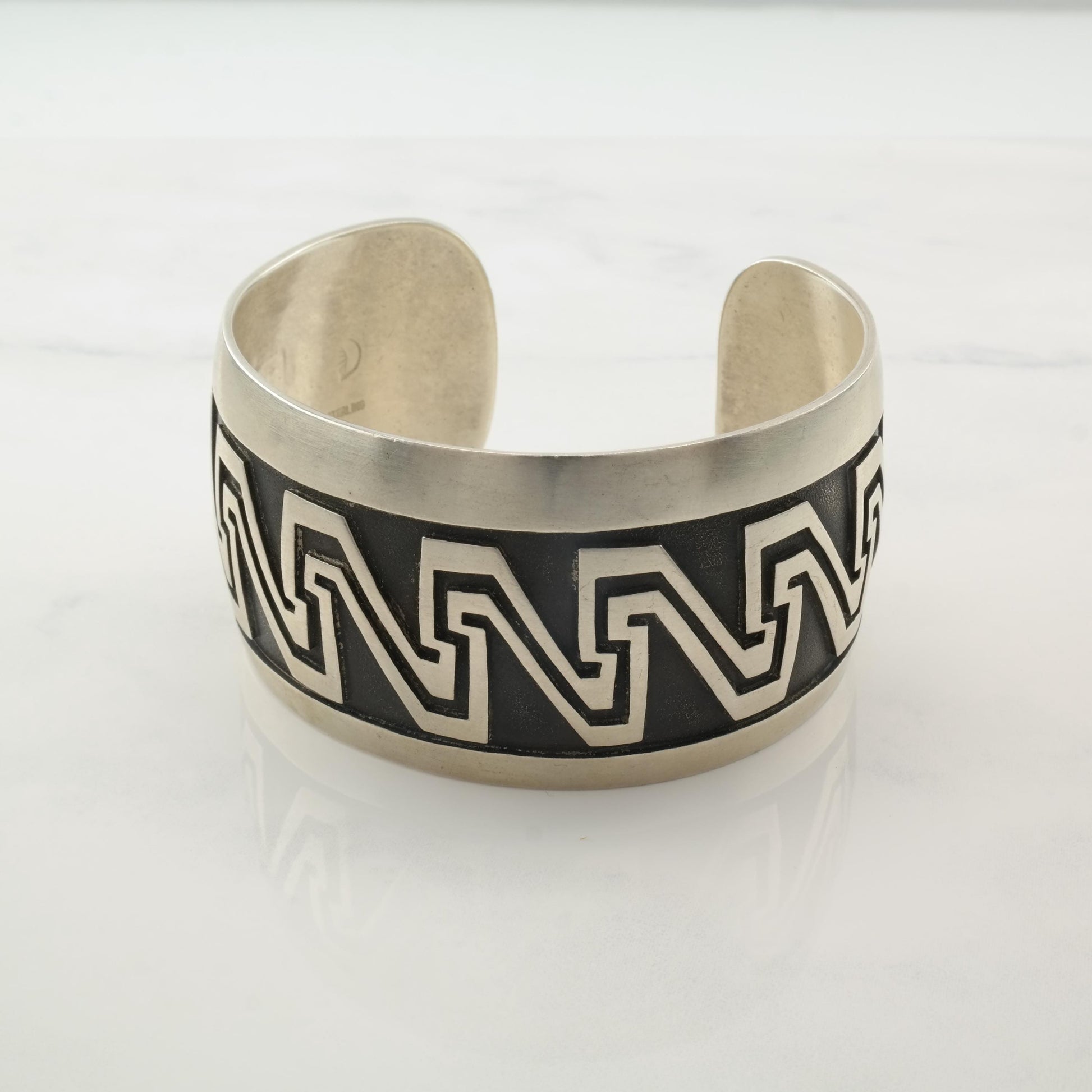 Native American Overlay Cuff Bracelet Sterling Silver Oxidized