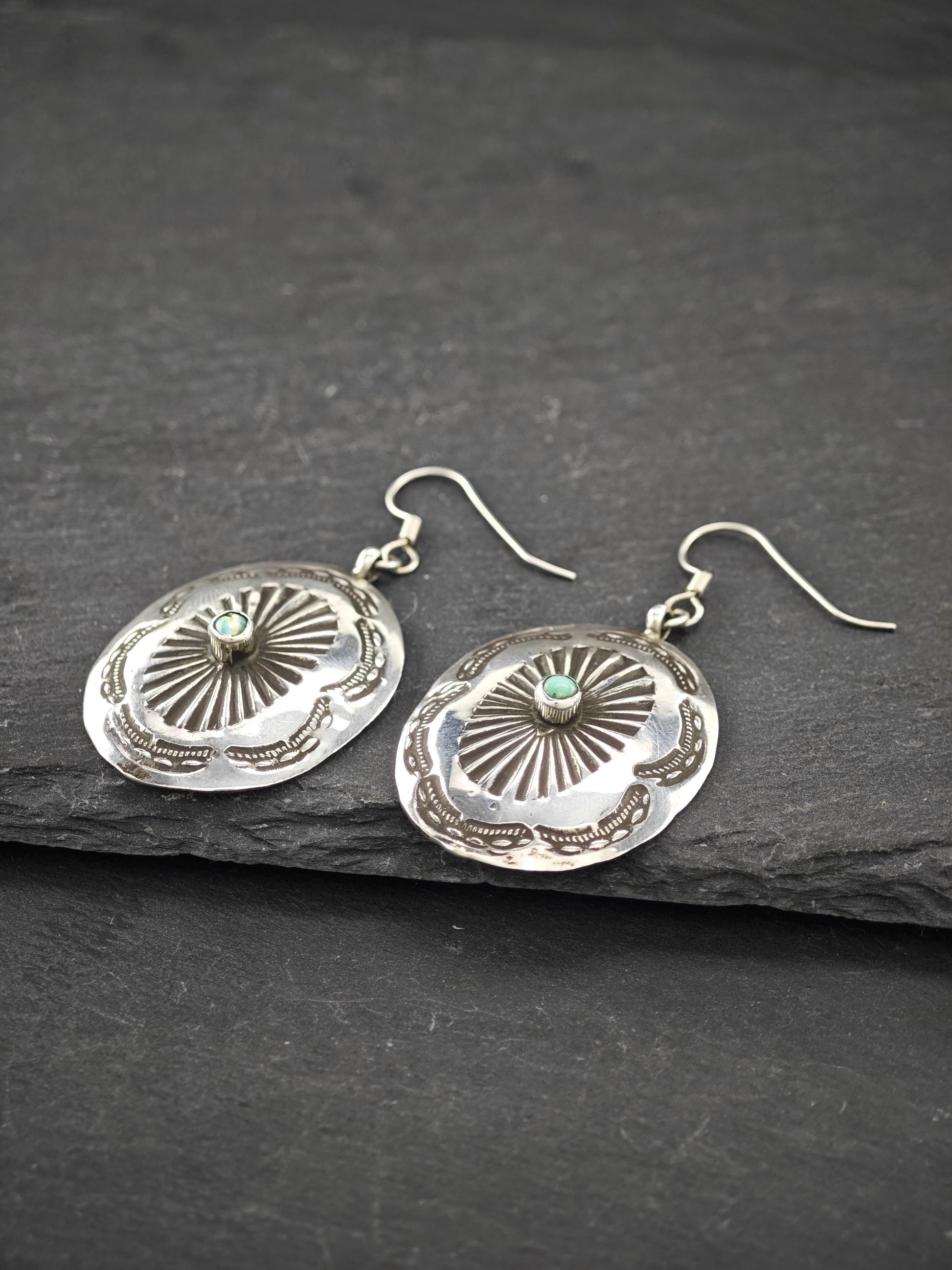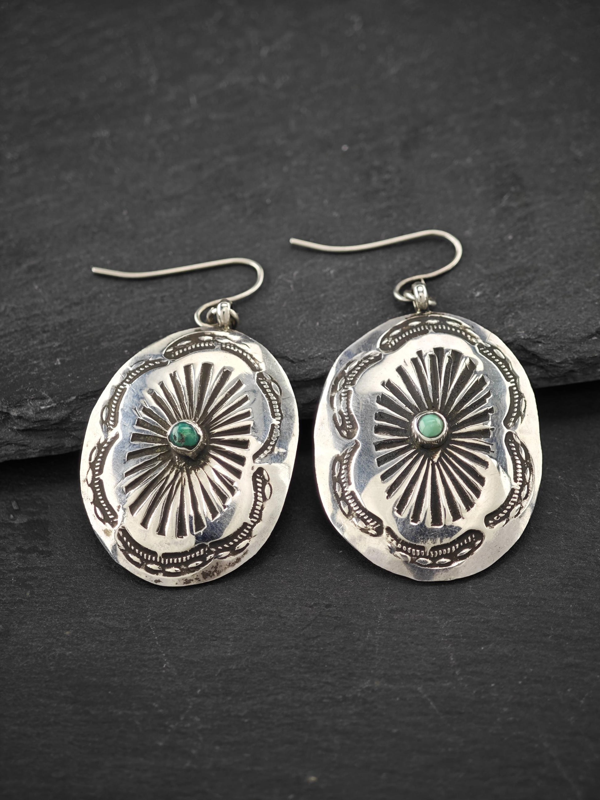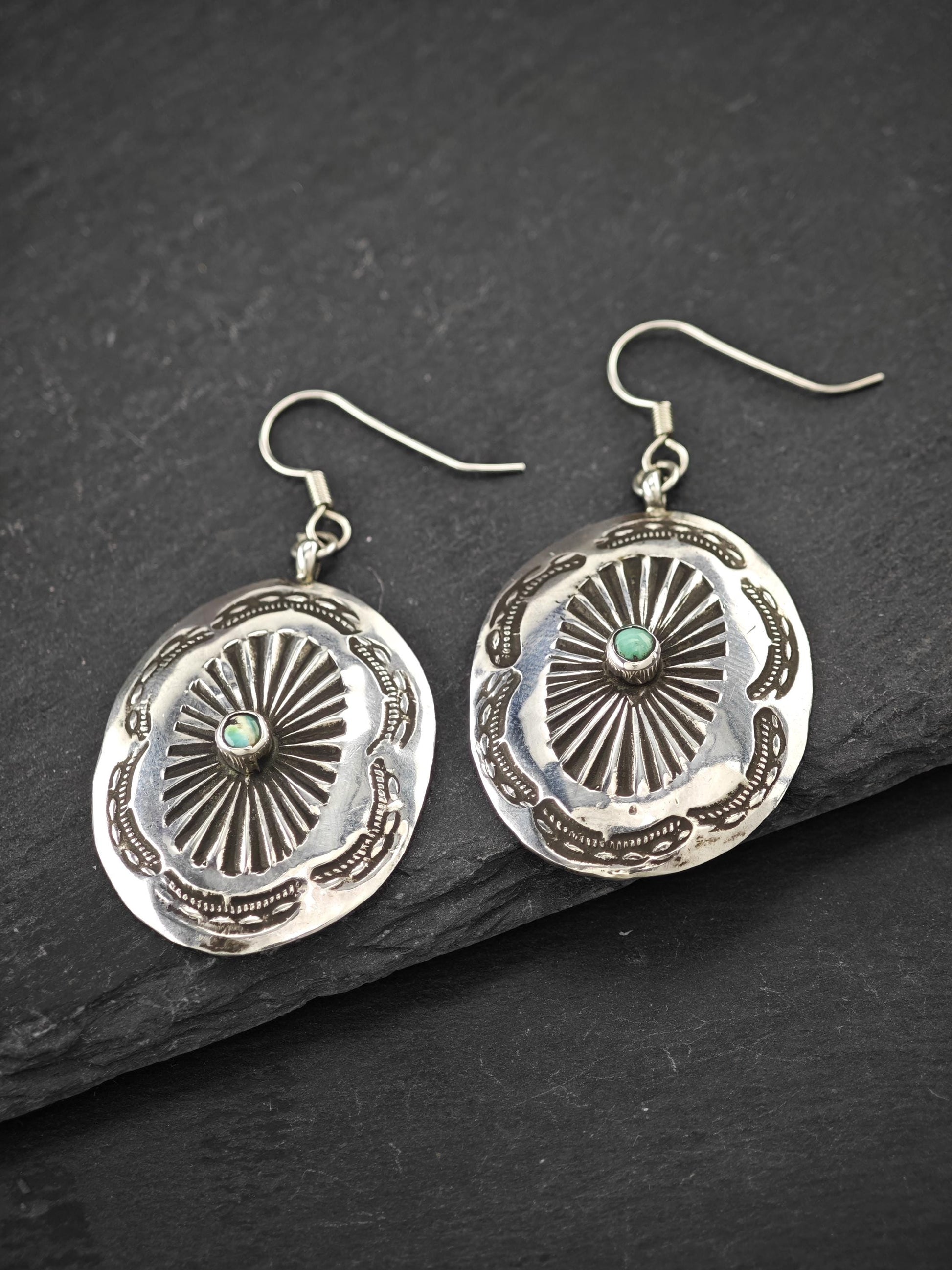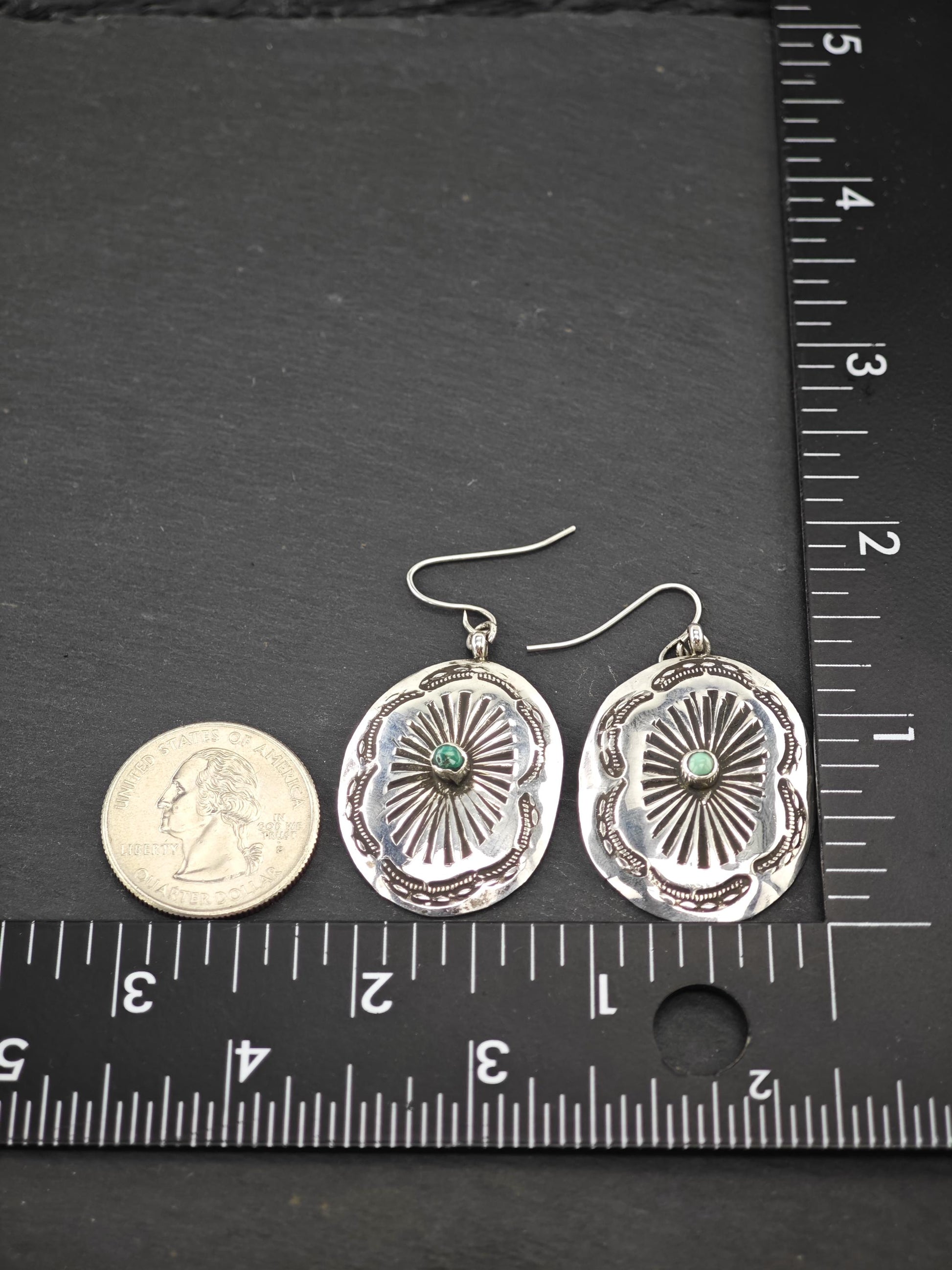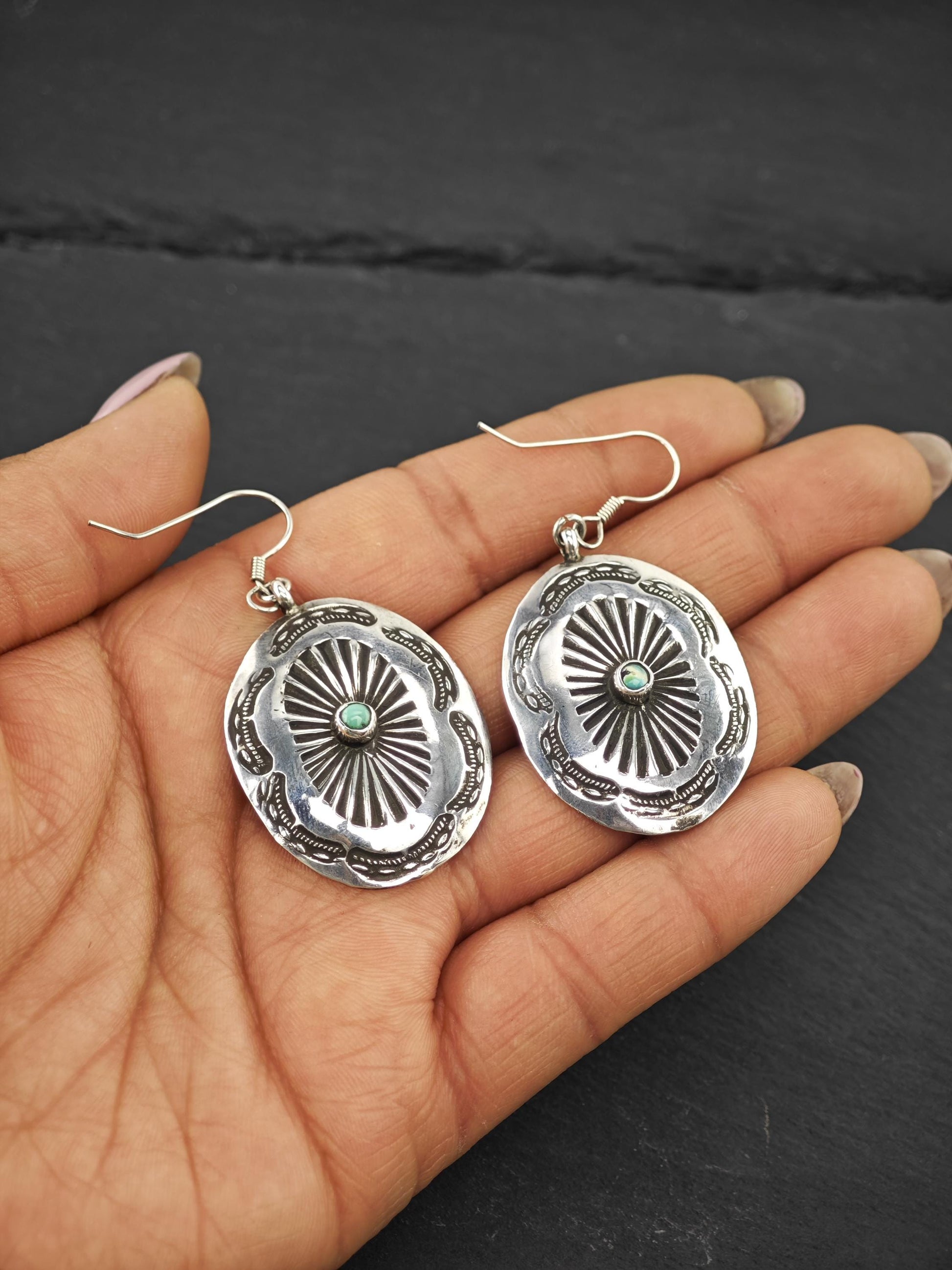 Native American Shield, Stamped Fish Hook Earrings Sterling Silver