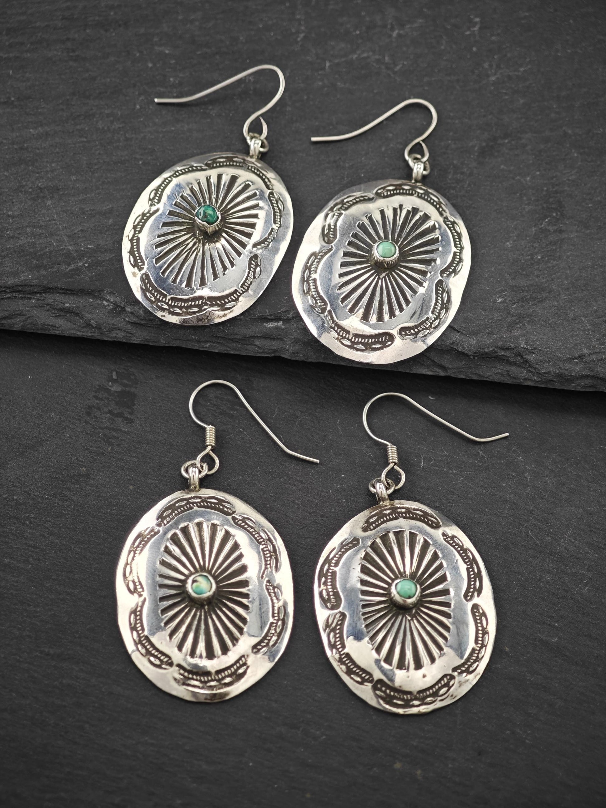 The Stone/Theme is Green Turquoise Shield, Stamped Natural, industry standard treatment if any
