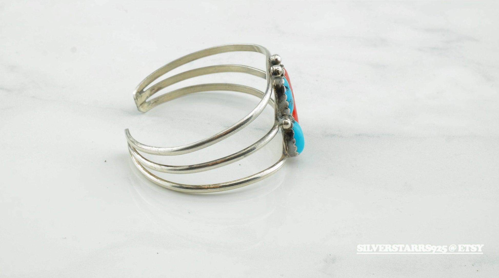 Native American Silver Cuff Bracelet Sterling Turquoise Coral