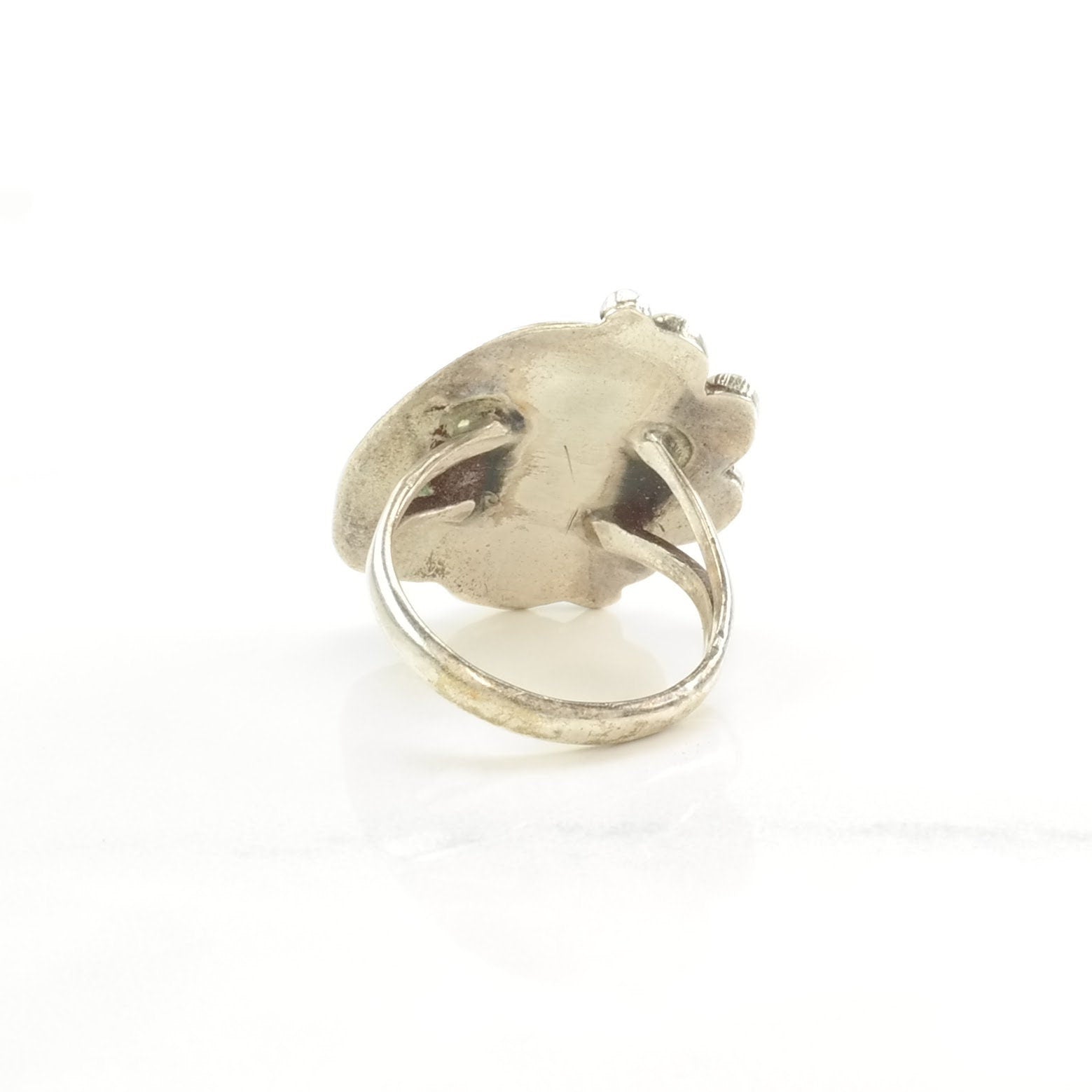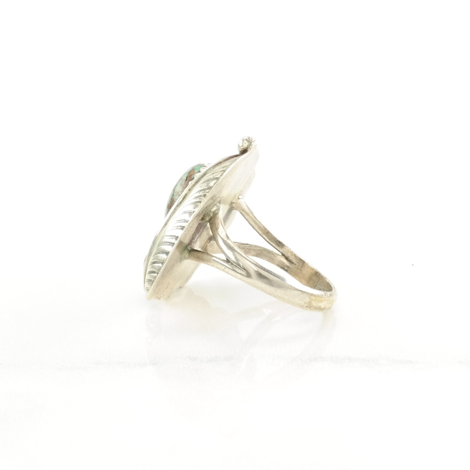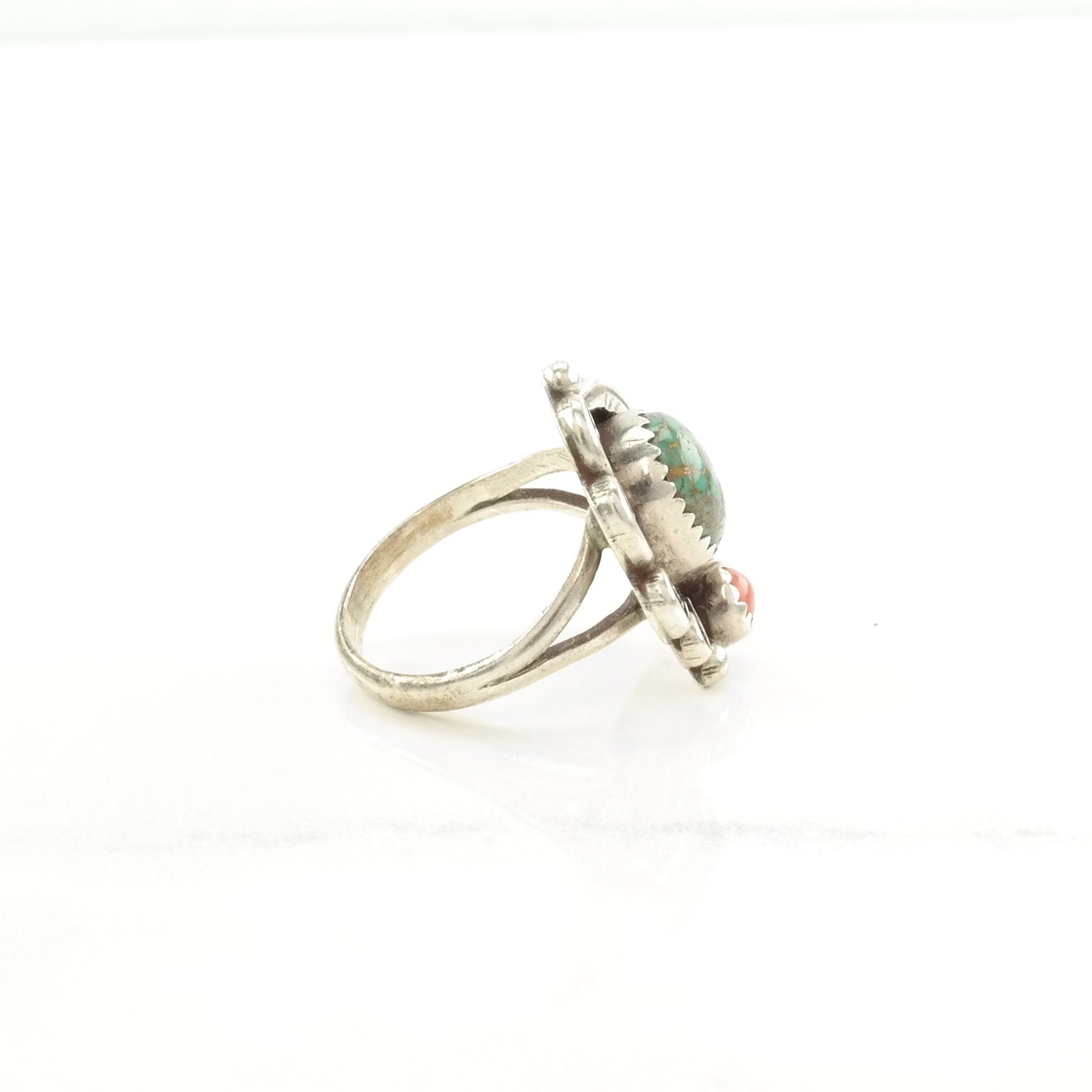 Native American Silver Ring Spiderweb Turquoise, Coral Feather Sterling Green, Red Size 6 1/2