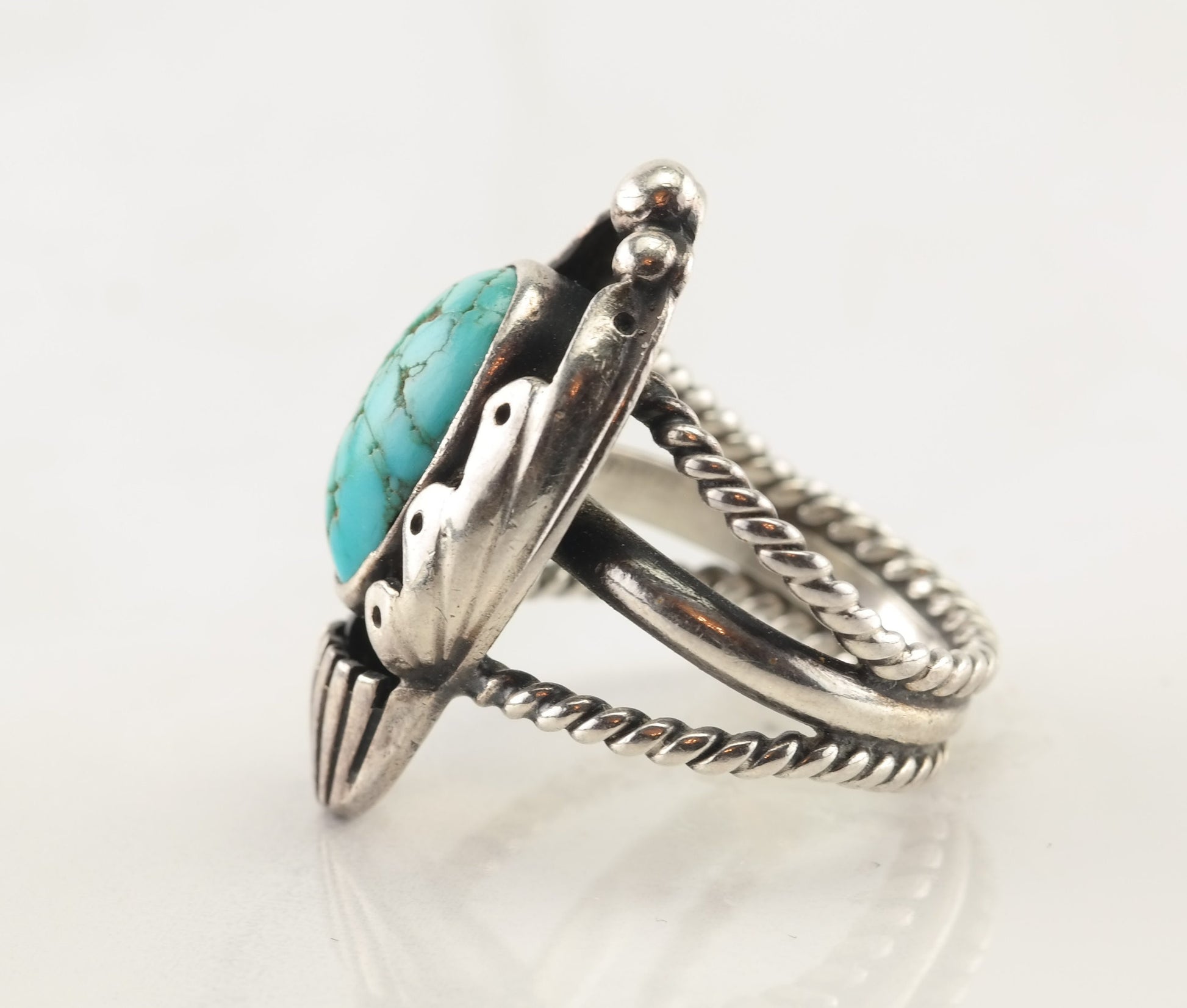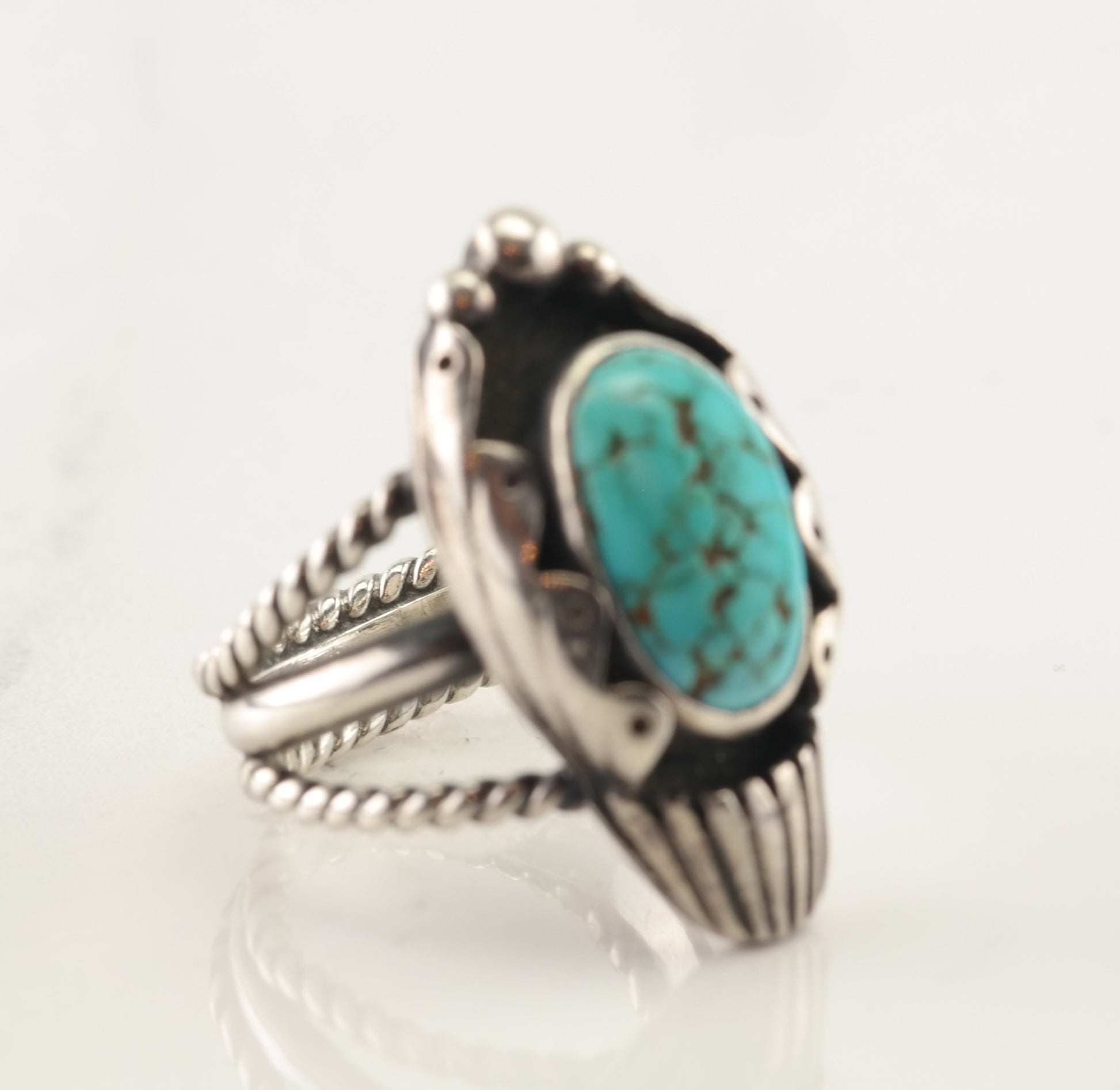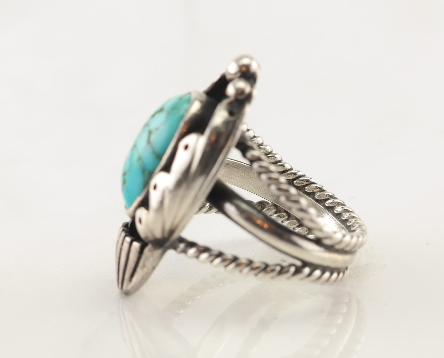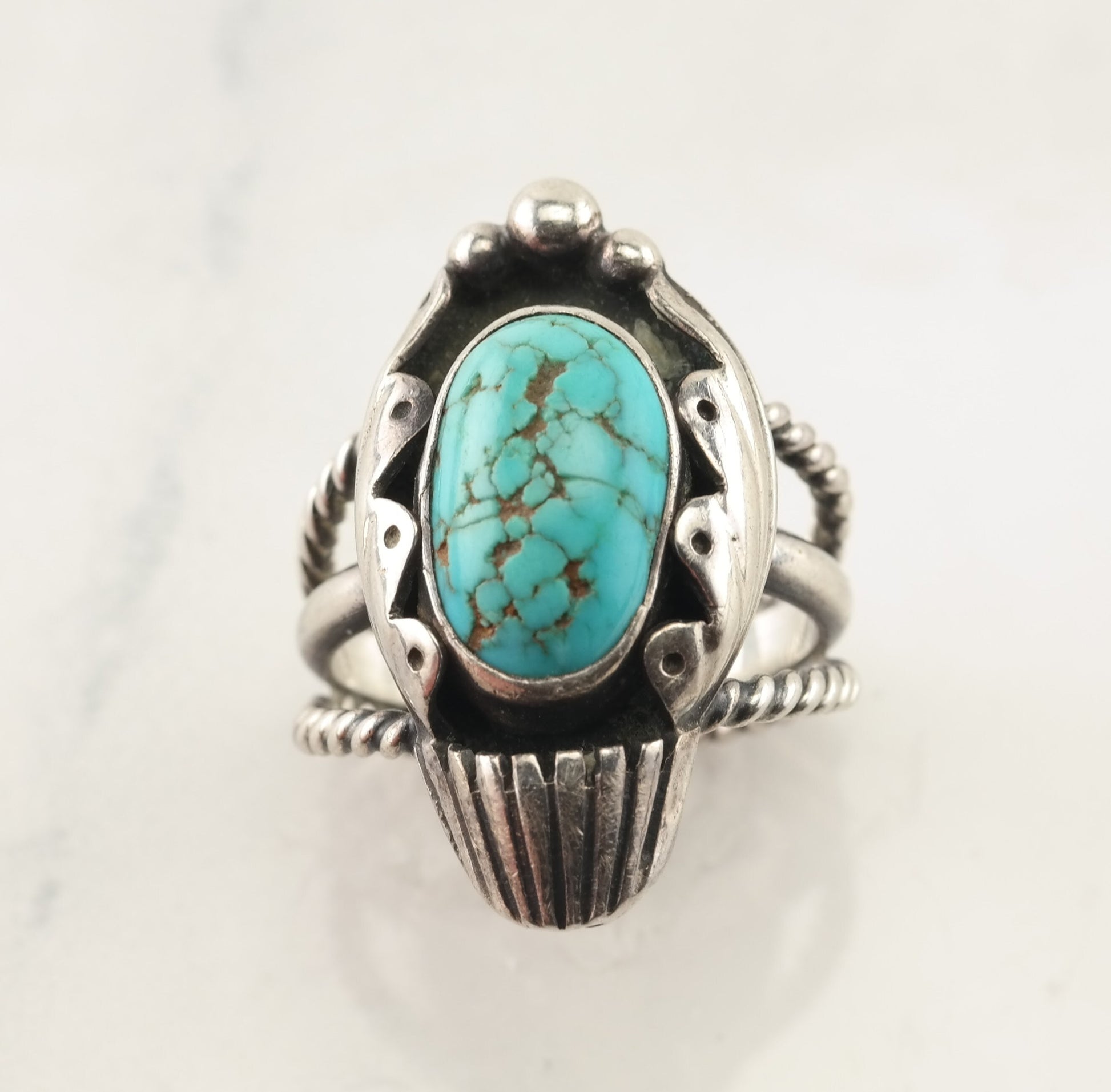 Native American Silver Ring Spiderweb Turquoise Shadowbox Sterling Size 7 1/2