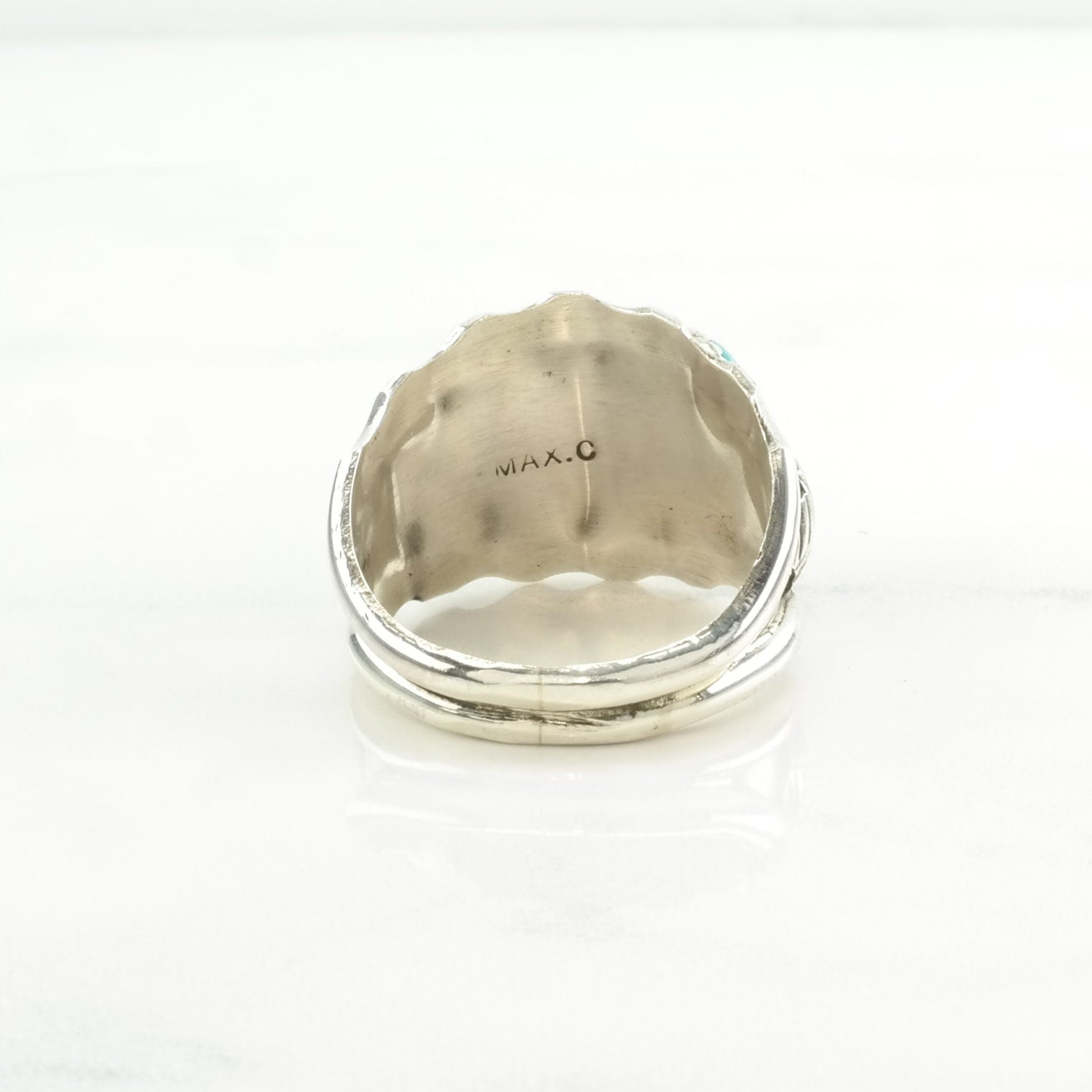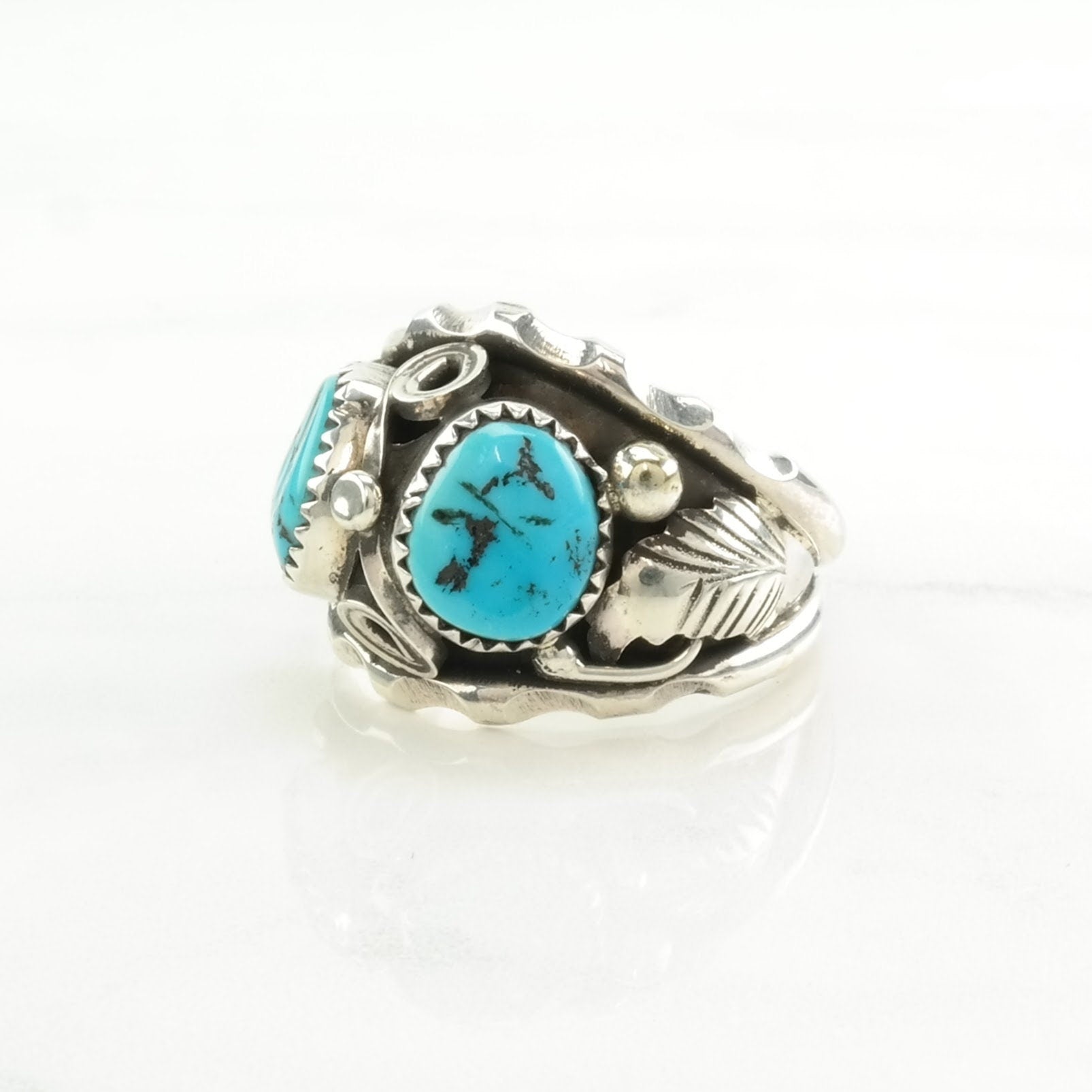 Native American Silver Ring Turquoise Leaf Sterling Blue Size 12 3/4