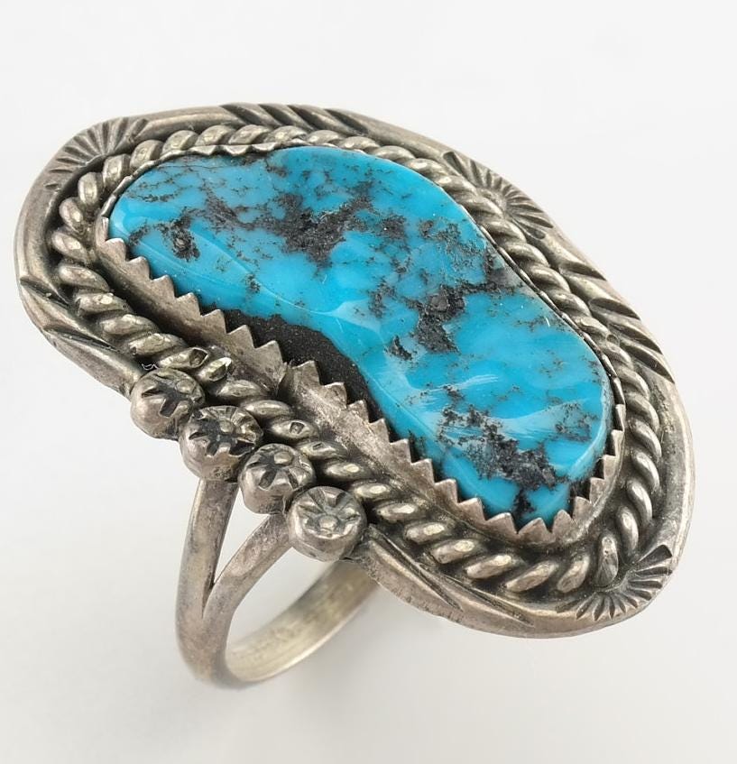 Native American Silver Ring Turquoise Sterling Kingman Size 6.5