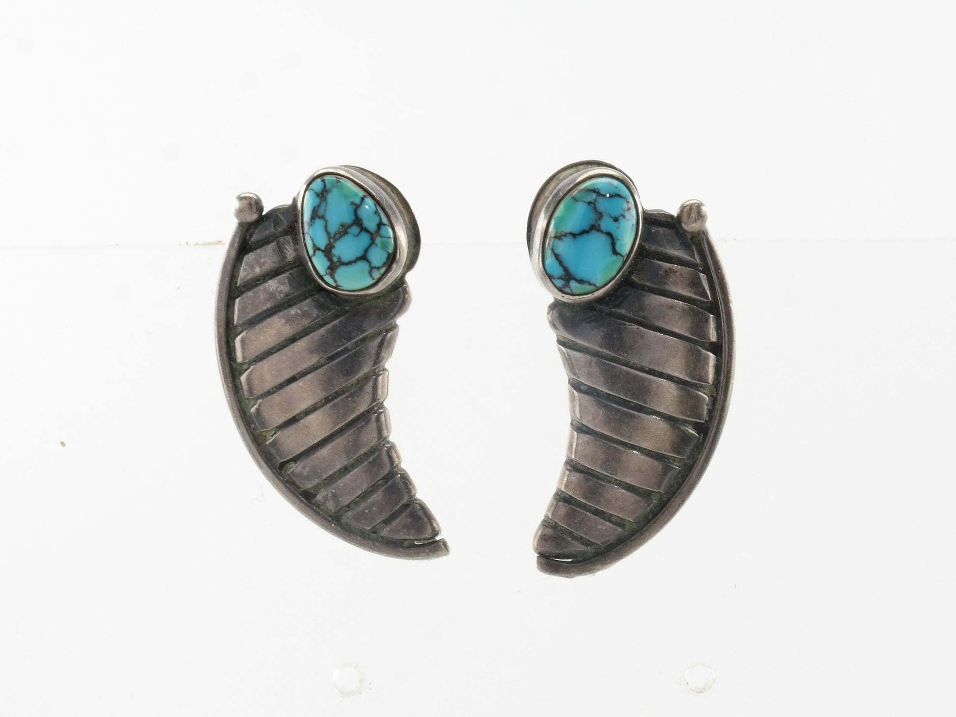 Native American Spiderweb Turquoise Claw Design Sterling Silver Earrings Screwback