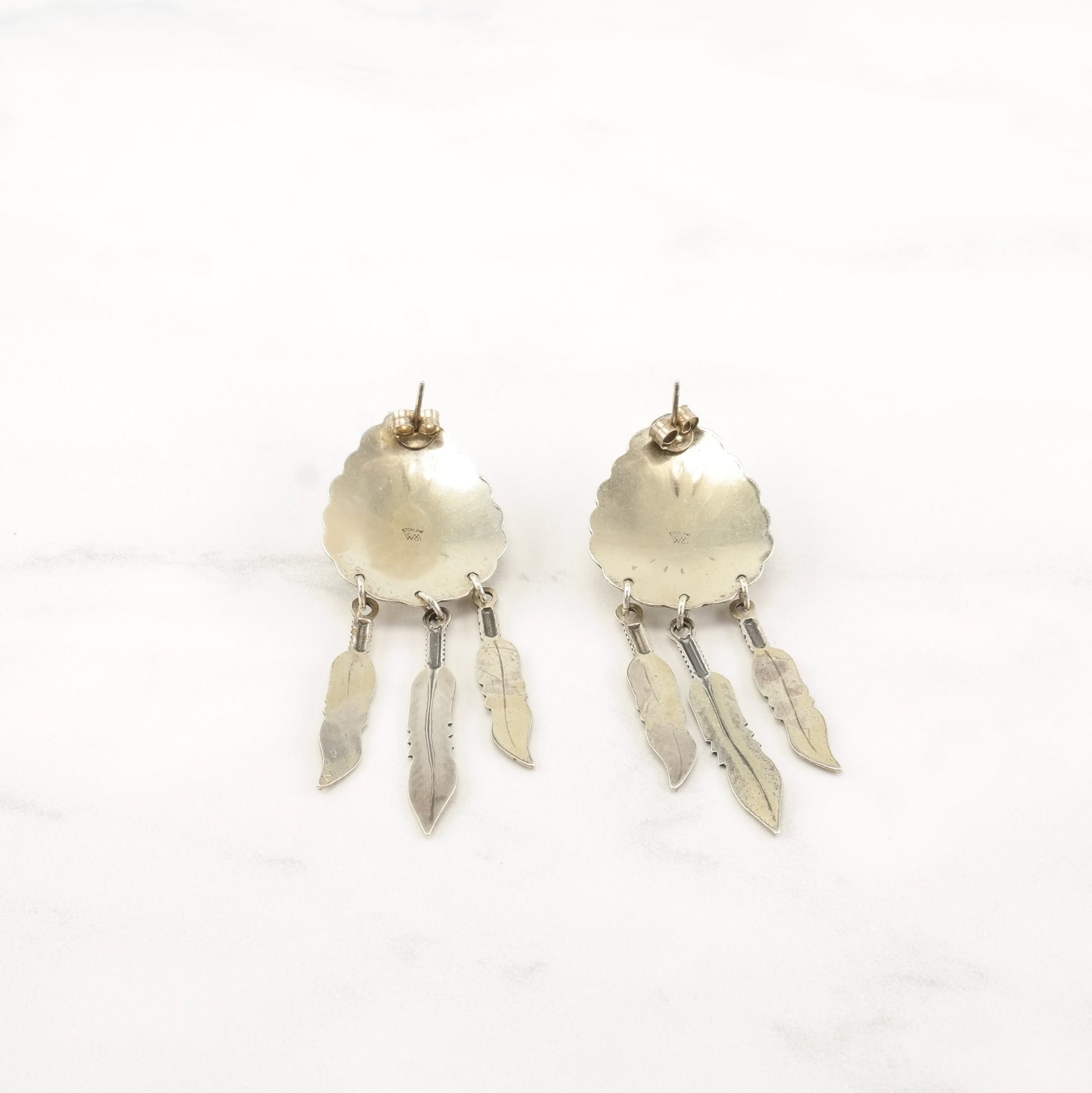 These vintage sterling silver earrings are 2 1/4" inches long, and 13/16" inch wide