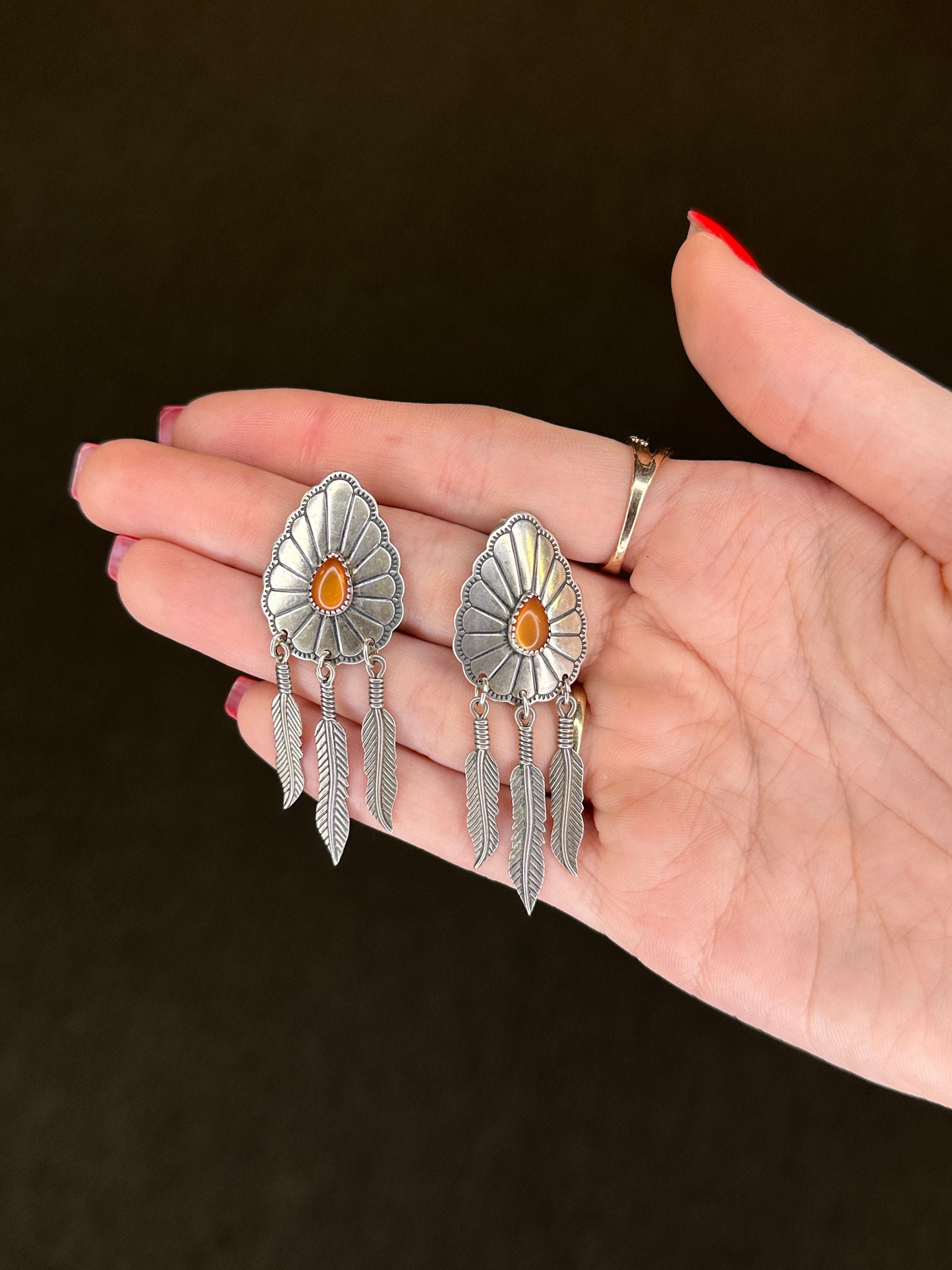 The Stone/Theme is Orange Amber, MOP Doublet Concho, Navajo Man made stones