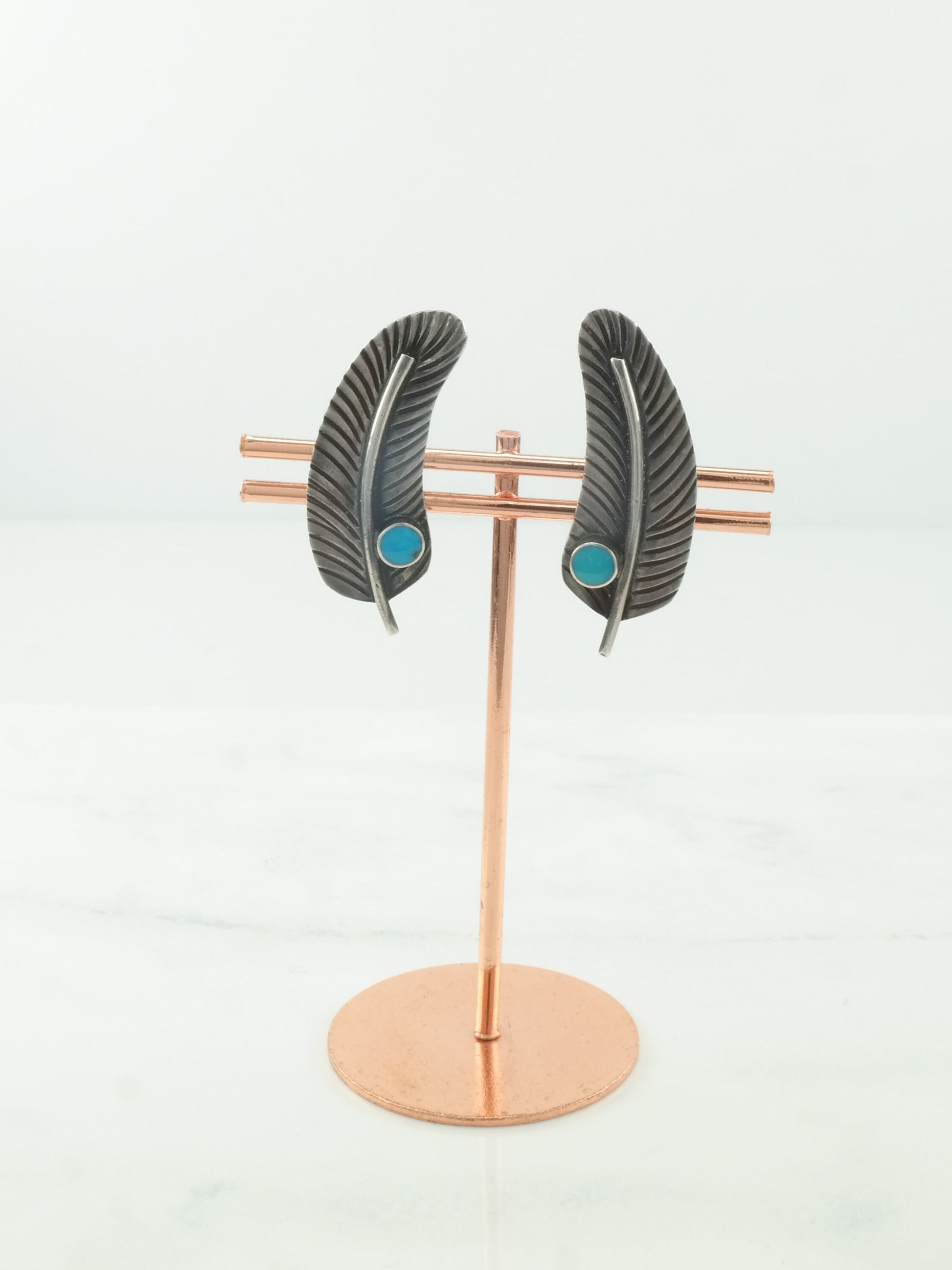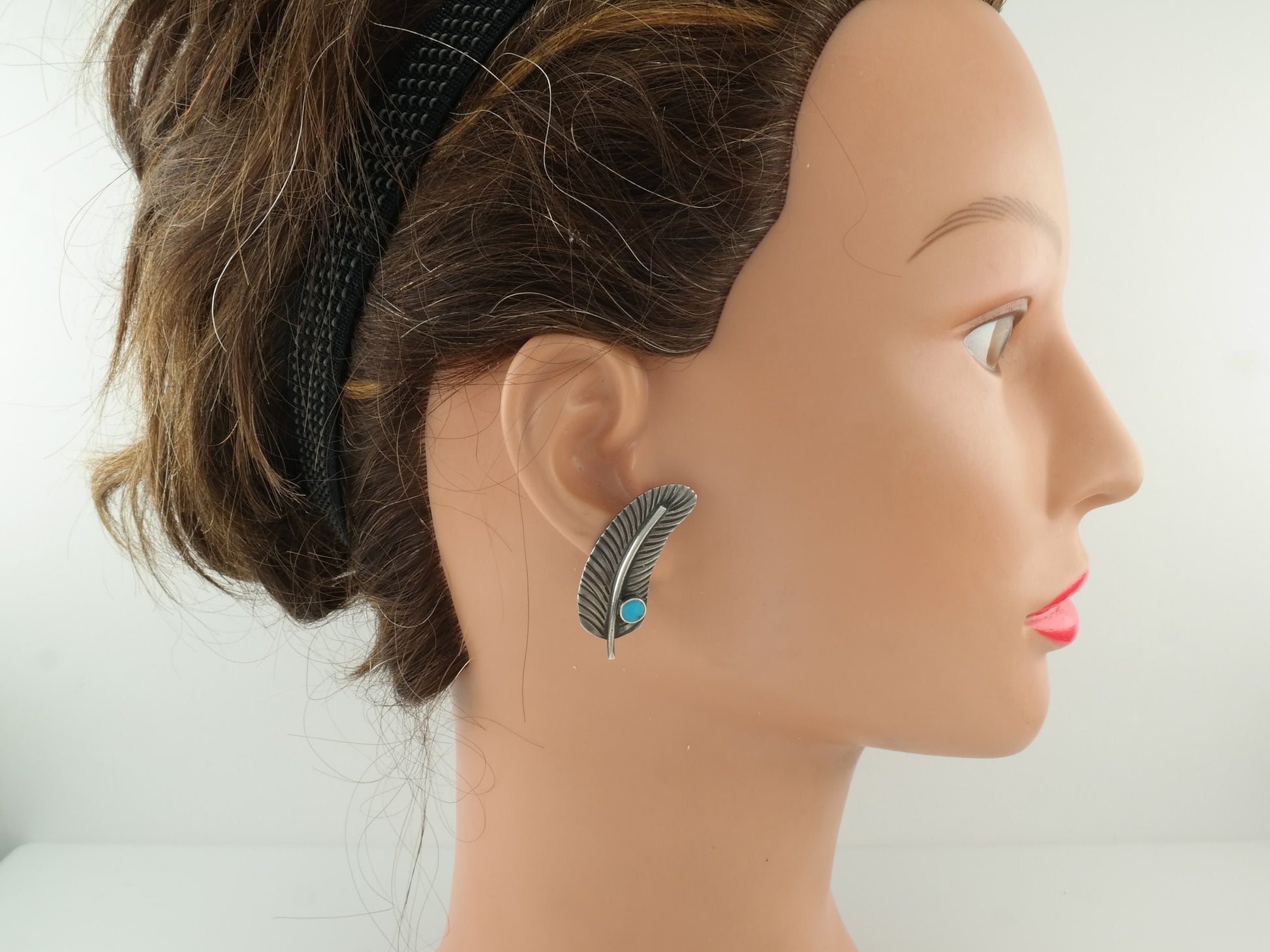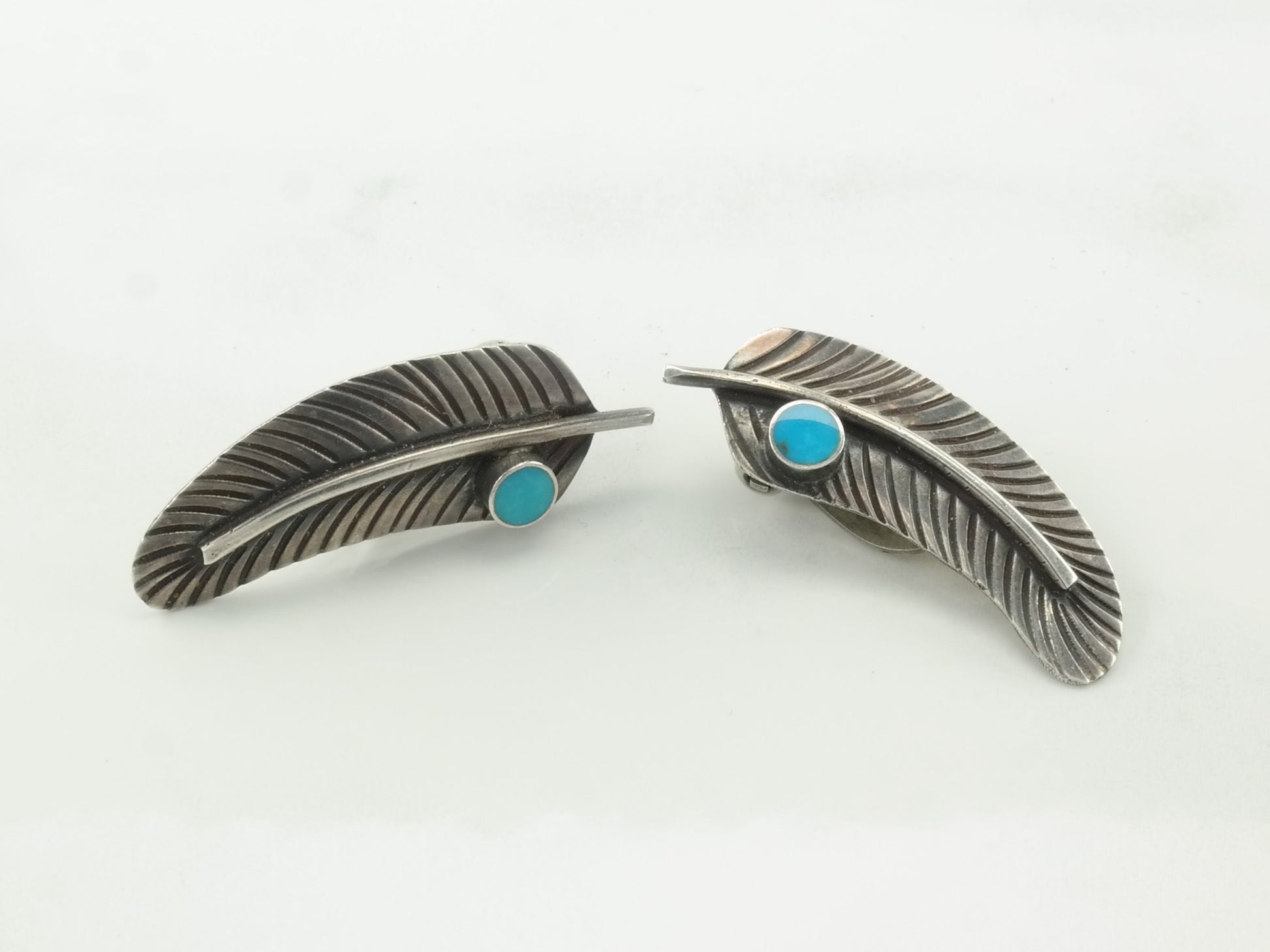Native American Sterling Silver Blue Turquoise Leaf Clip on Earrings