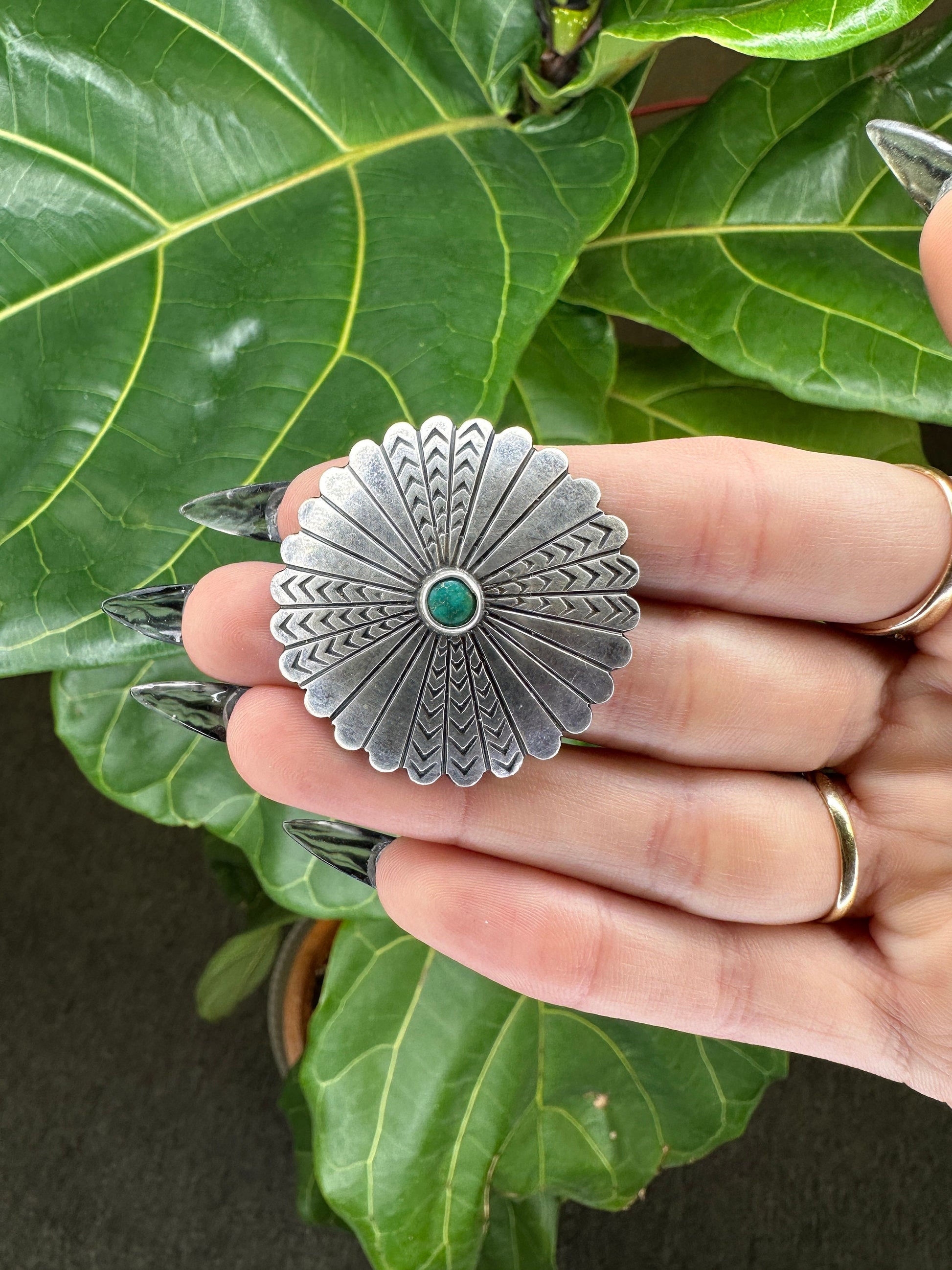 Stone or design featured on this brooch is Turquoise Concho