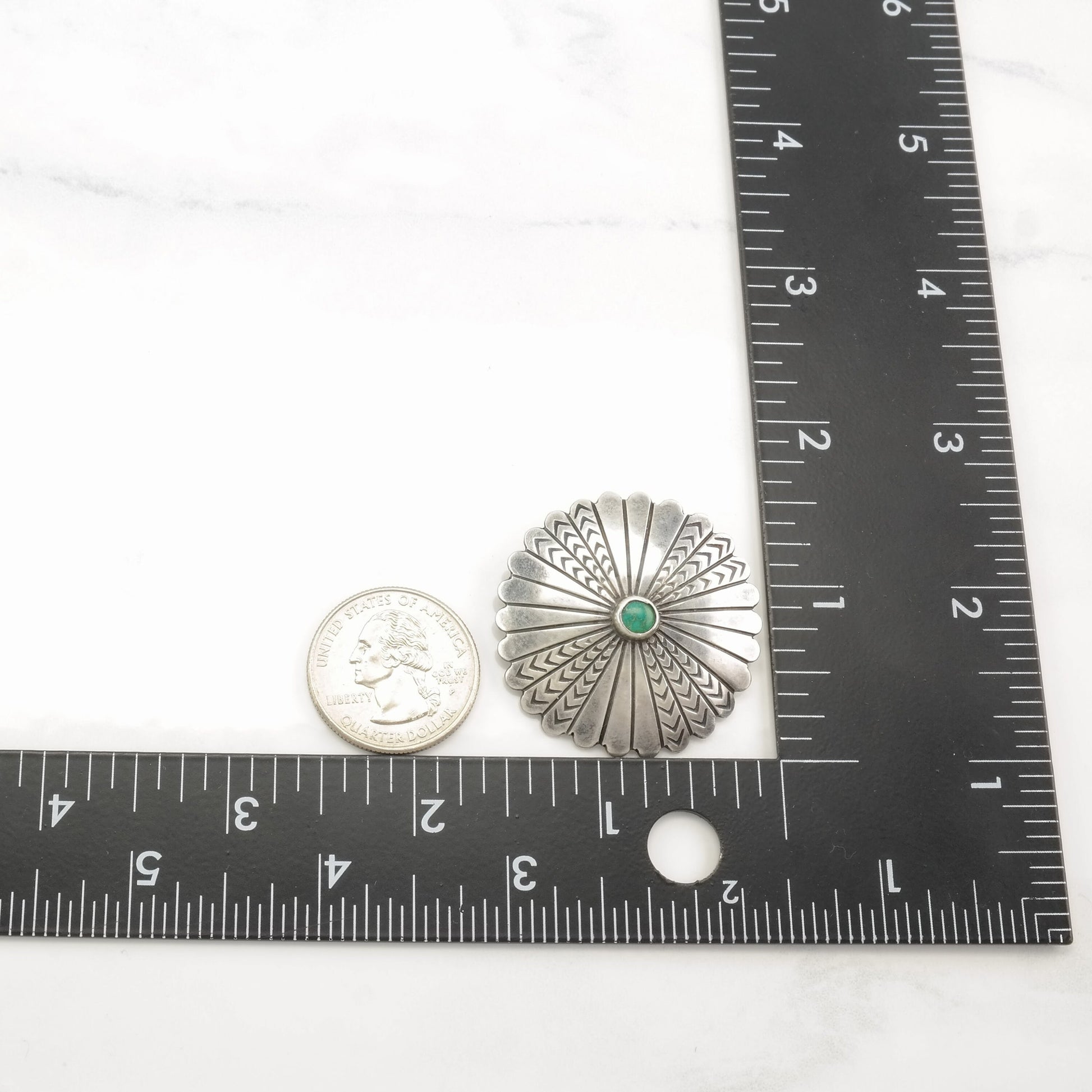 Native American Sterling Silver Brooch Concho Green Turquoise