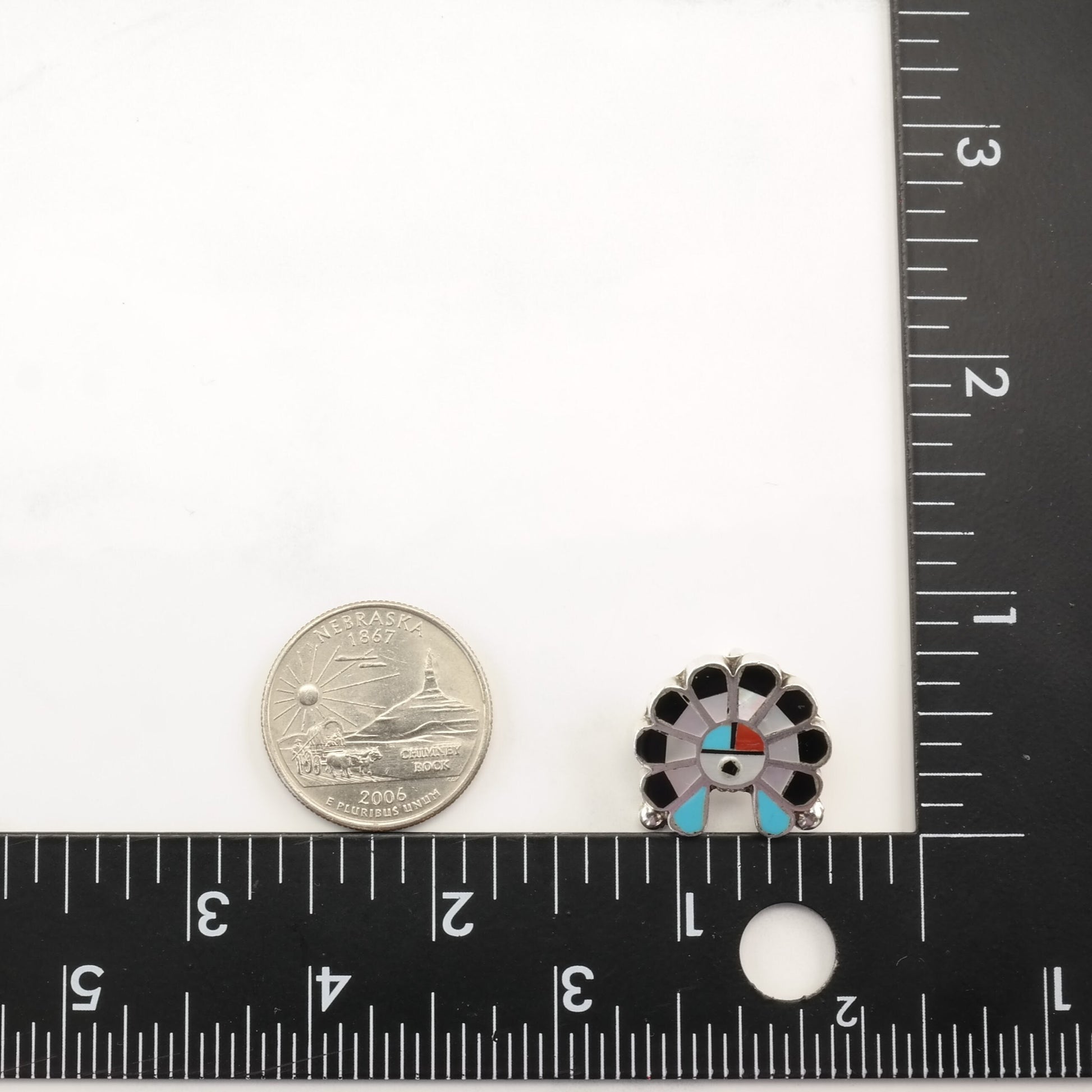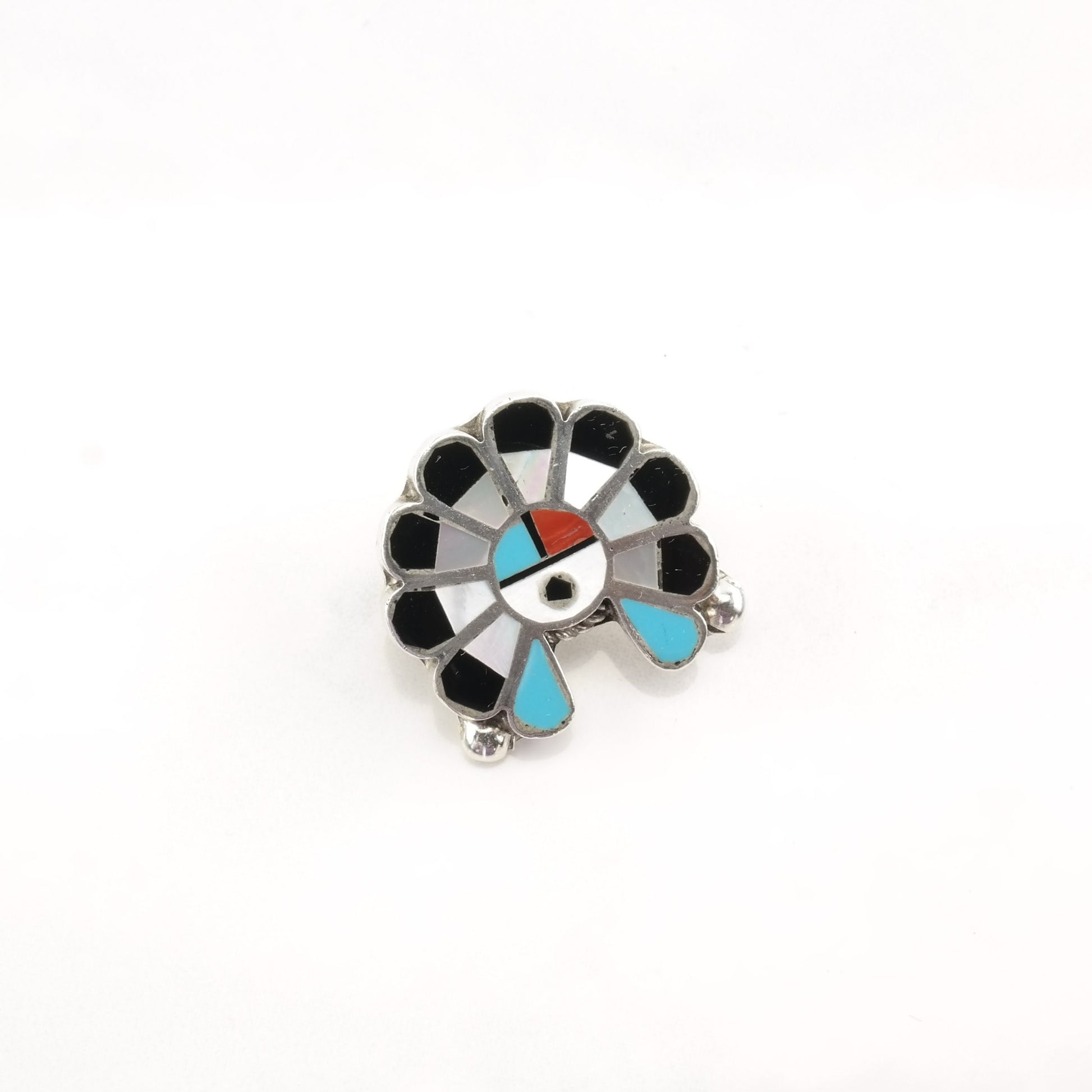 Native American Sterling Silver Brooch Pendant Inlay MOP Turquoise Coral Onyx