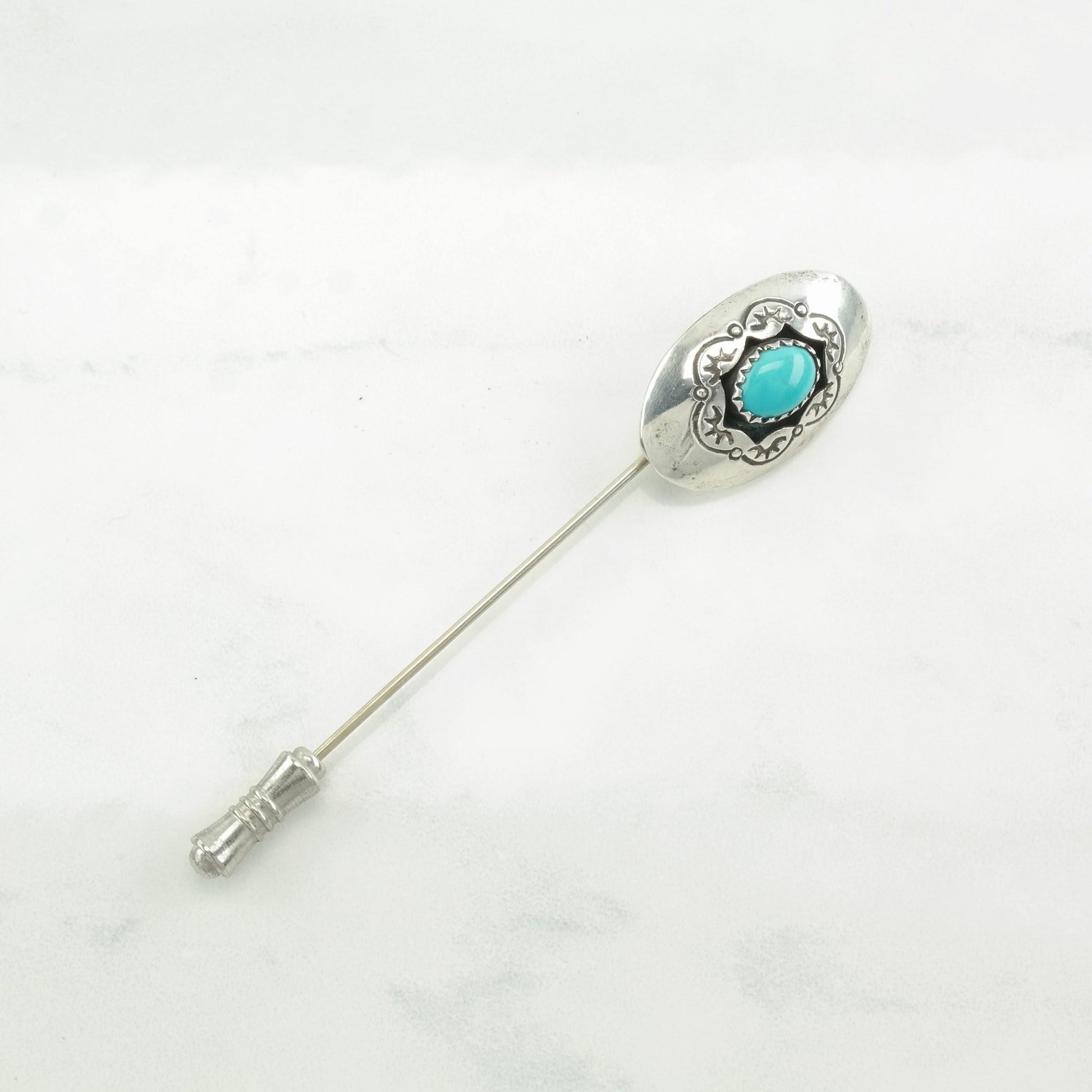 Native American Sterling Silver Brooch Shadowbox Blue Turquoise