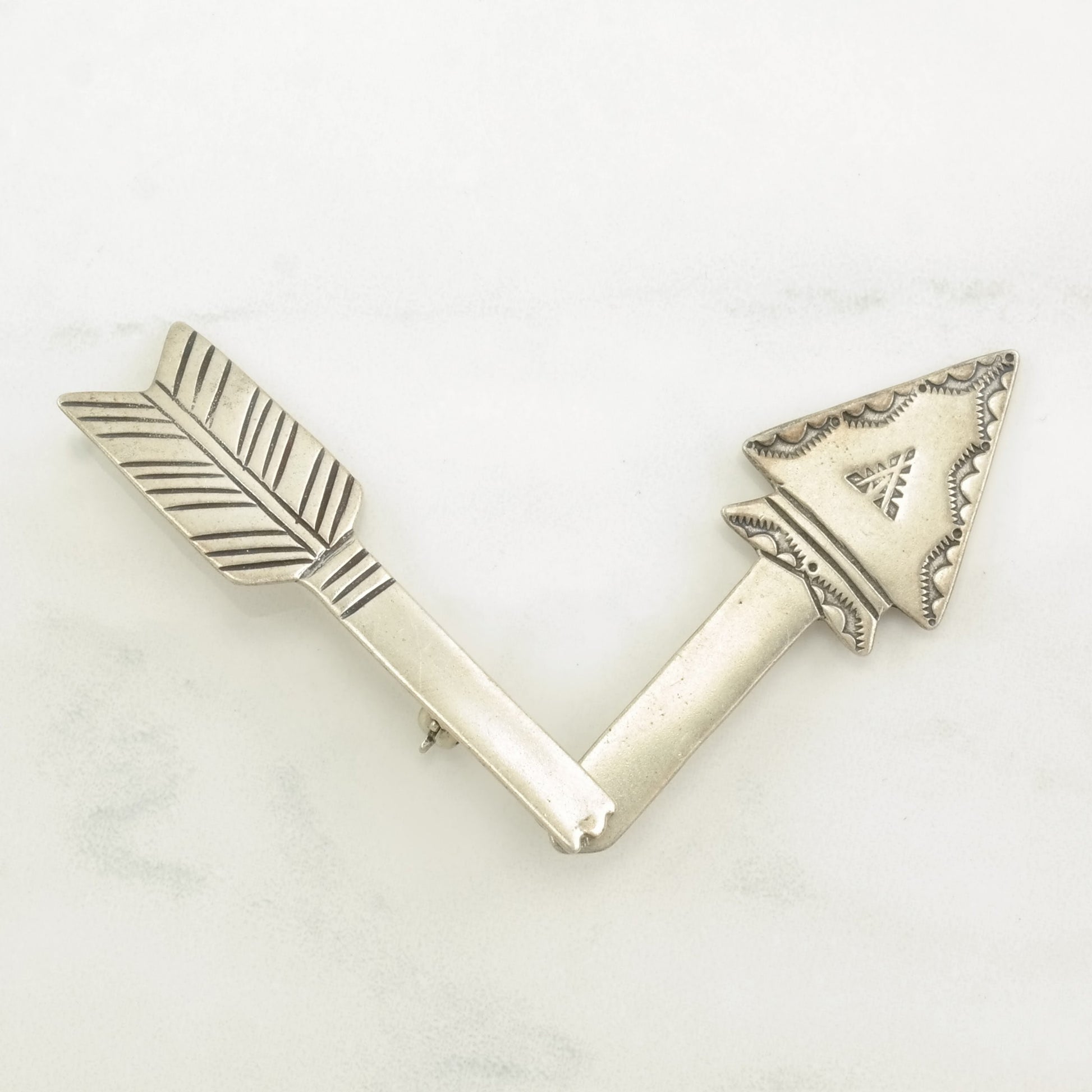 Native American Sterling Silver Brooch Stamped Articulated Arrow