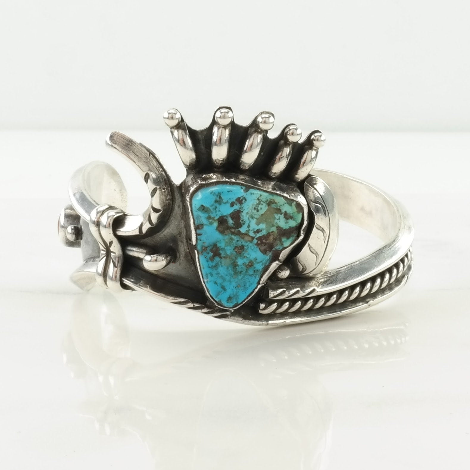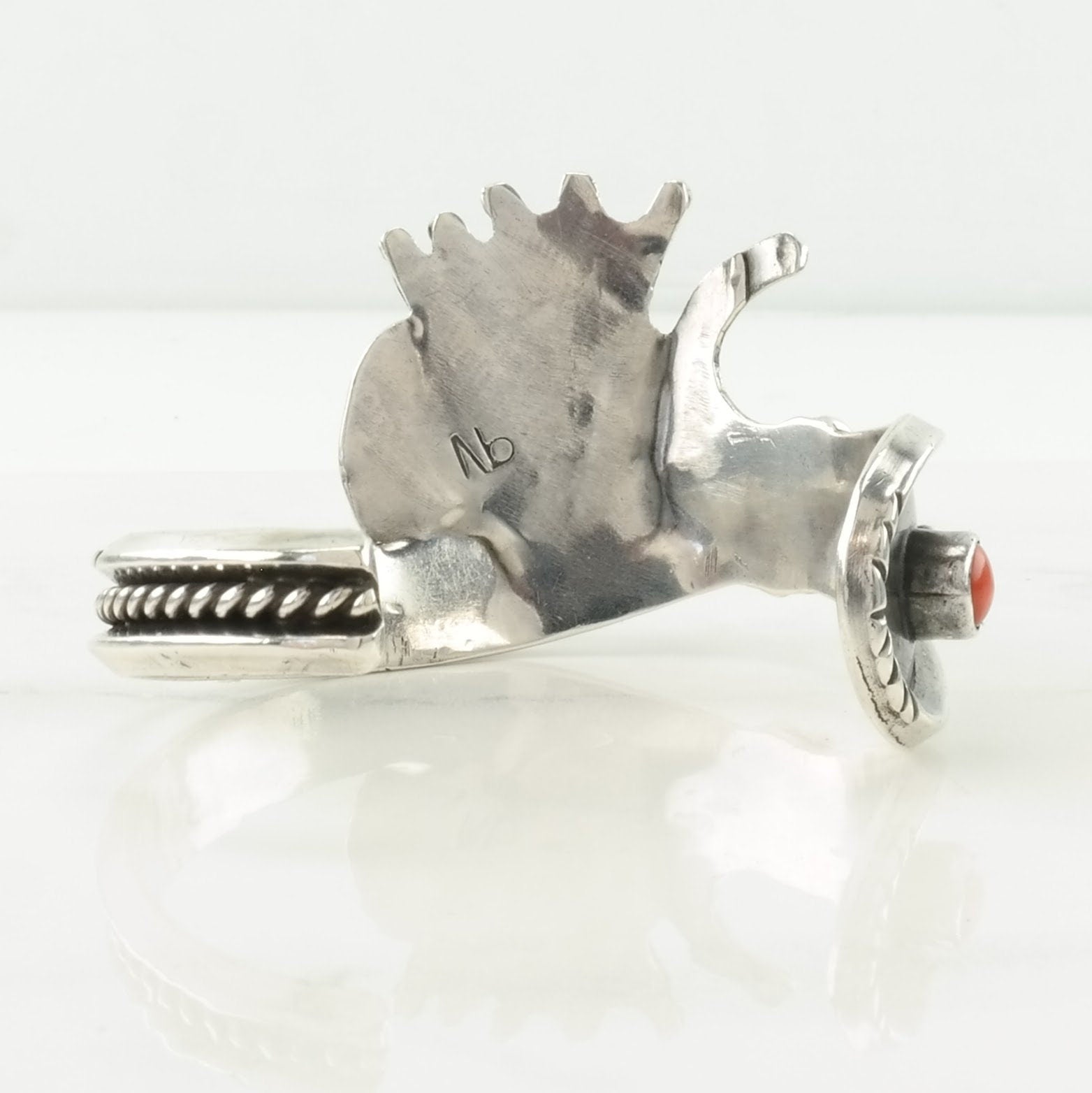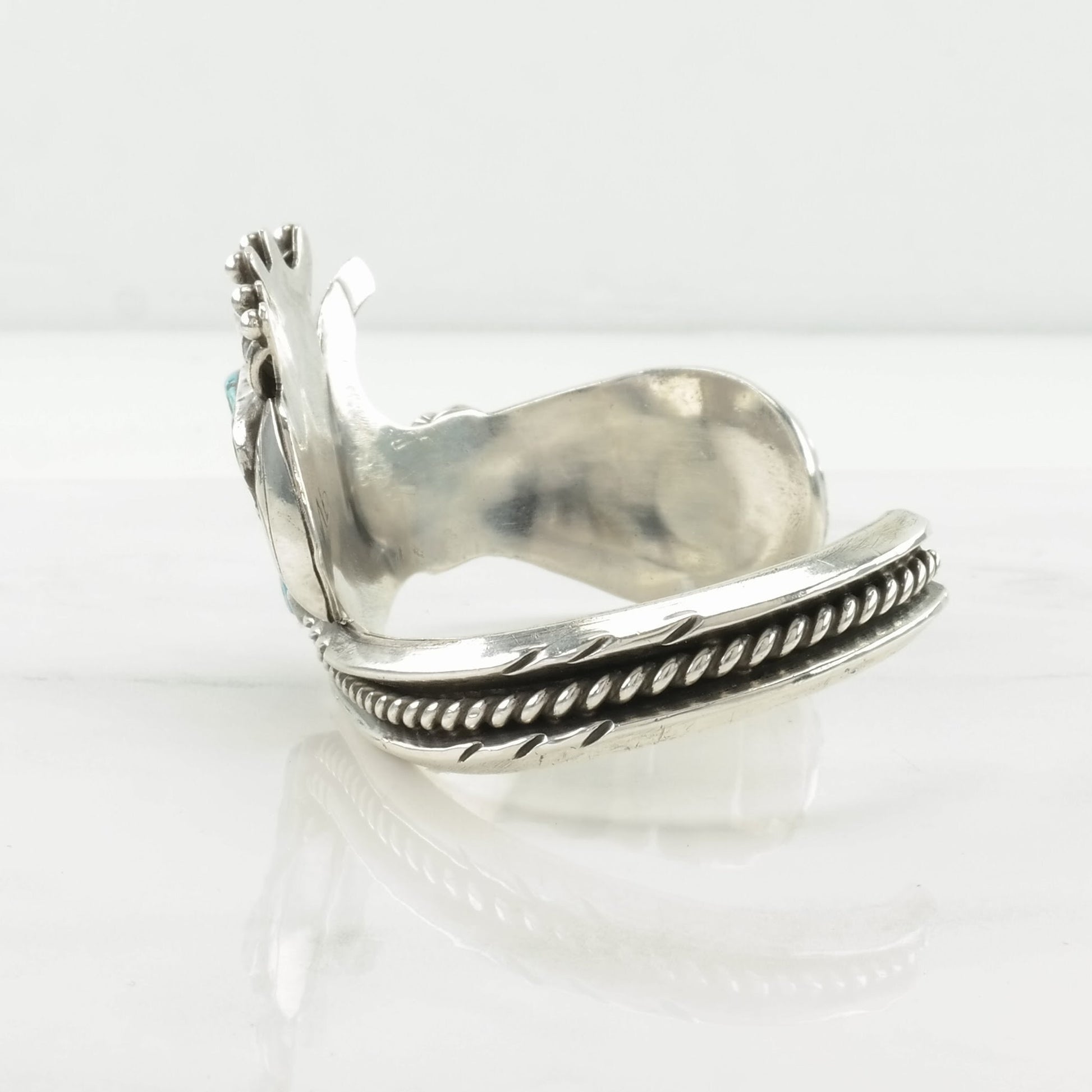 Native American Sterling Silver Cuff Bracelet Blue, Red Turquoise, Coral Crown