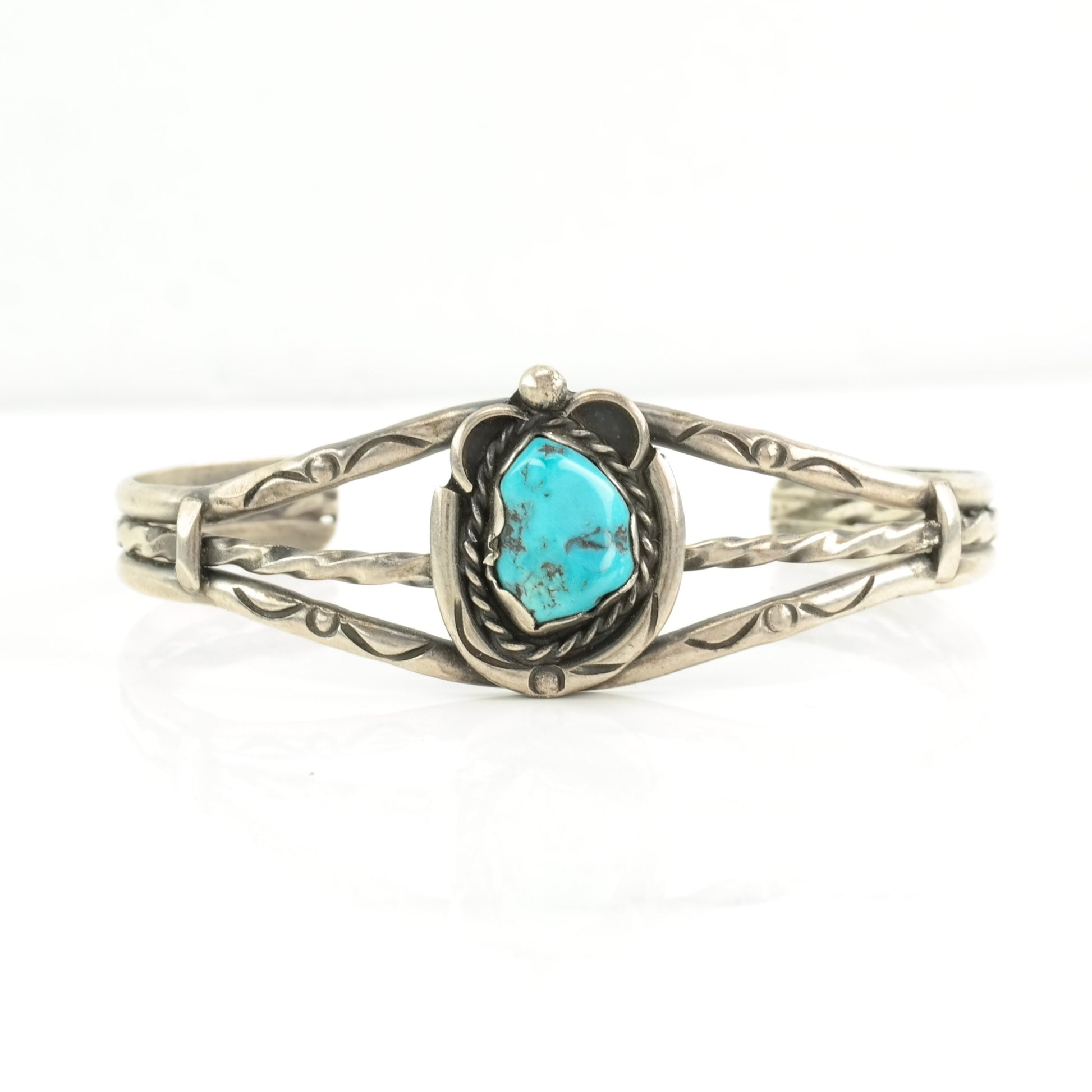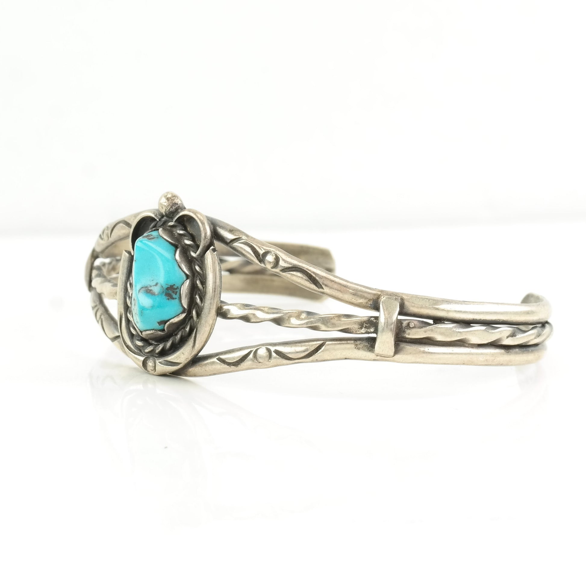 Native American Sterling Silver Cuff Bracelet Blue Turquoise