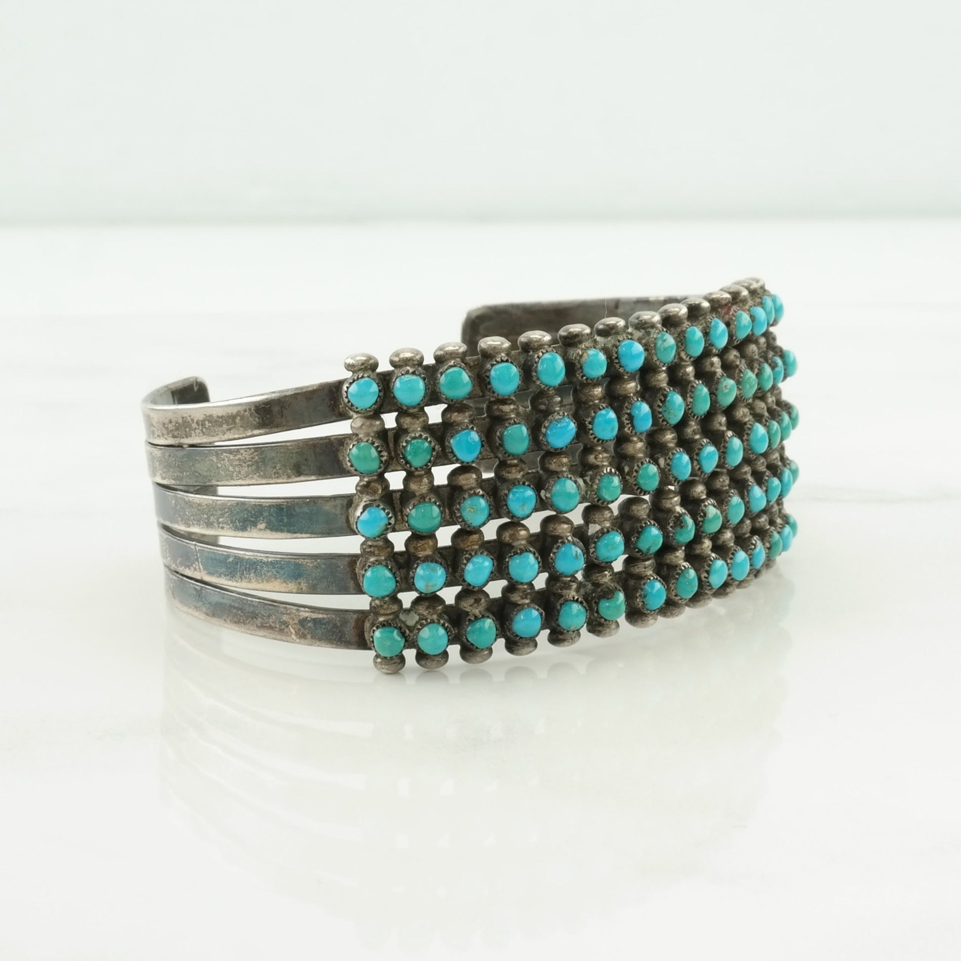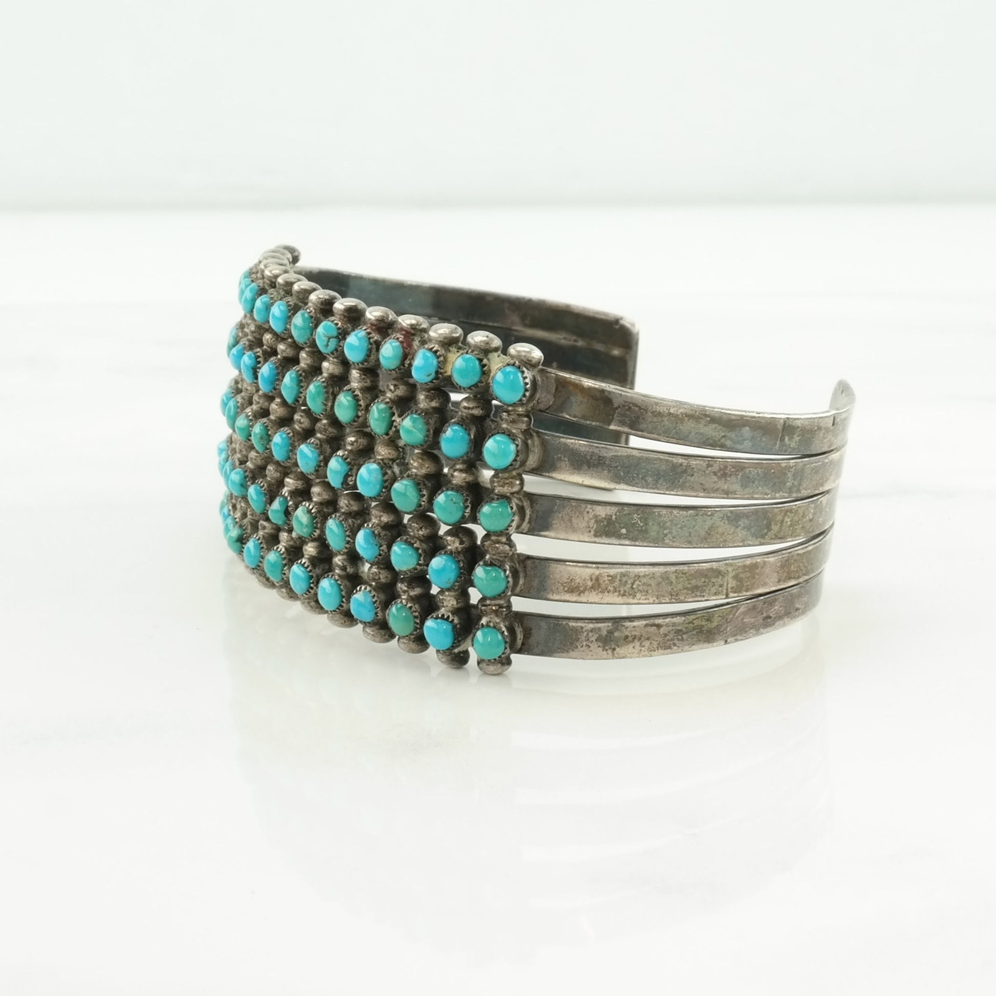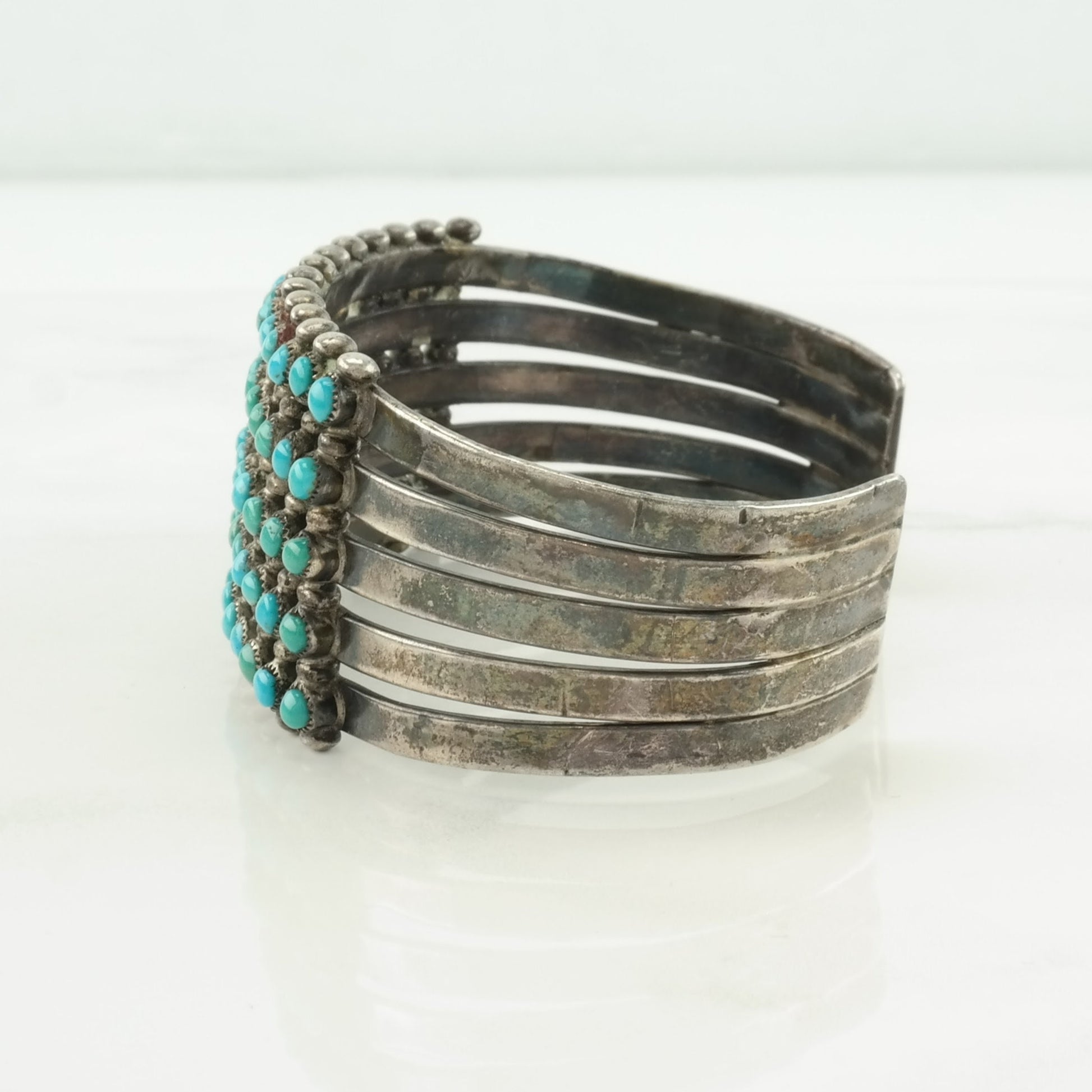 Native American Sterling Silver Cuff Bracelet Blue Turquoise, Cluster 5 Row