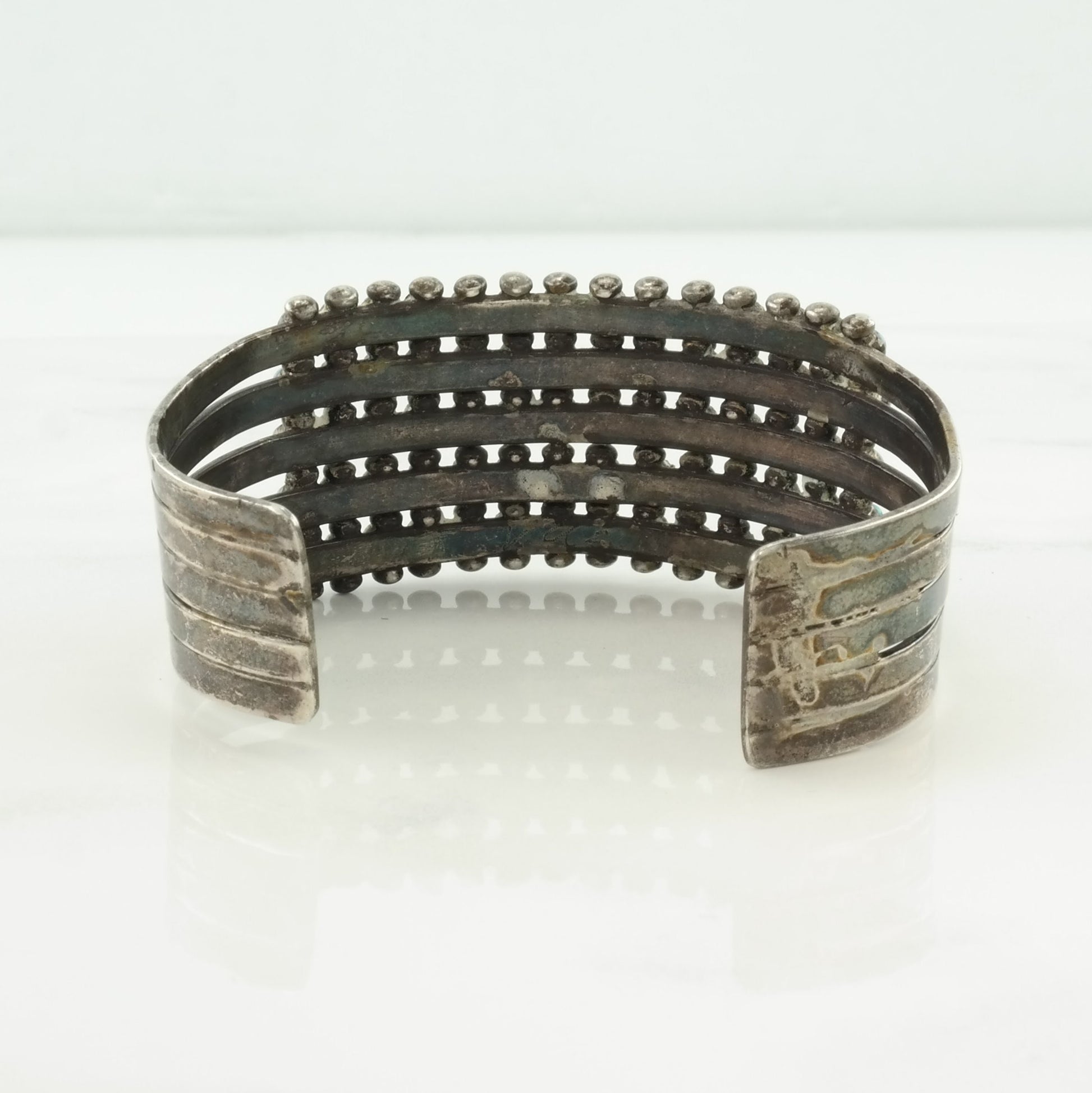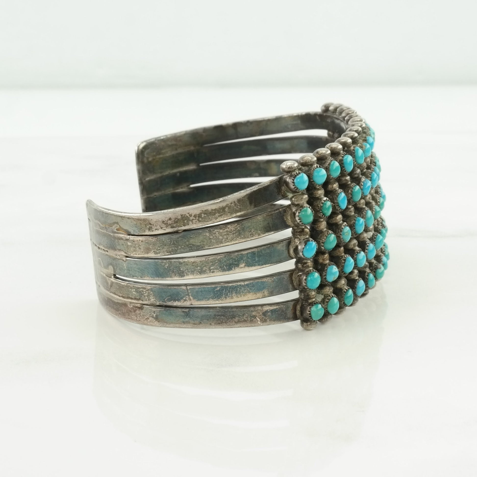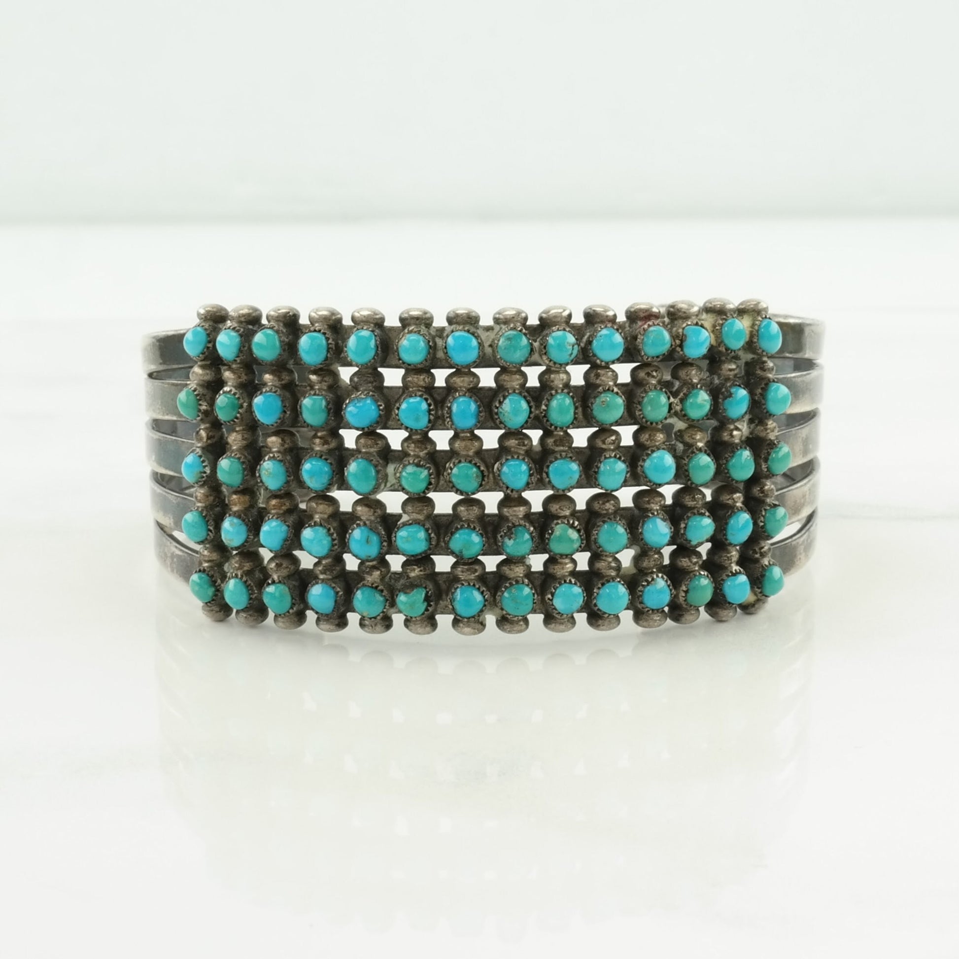 Native American Sterling Silver Cuff Bracelet Blue Turquoise, Cluster 5 Row