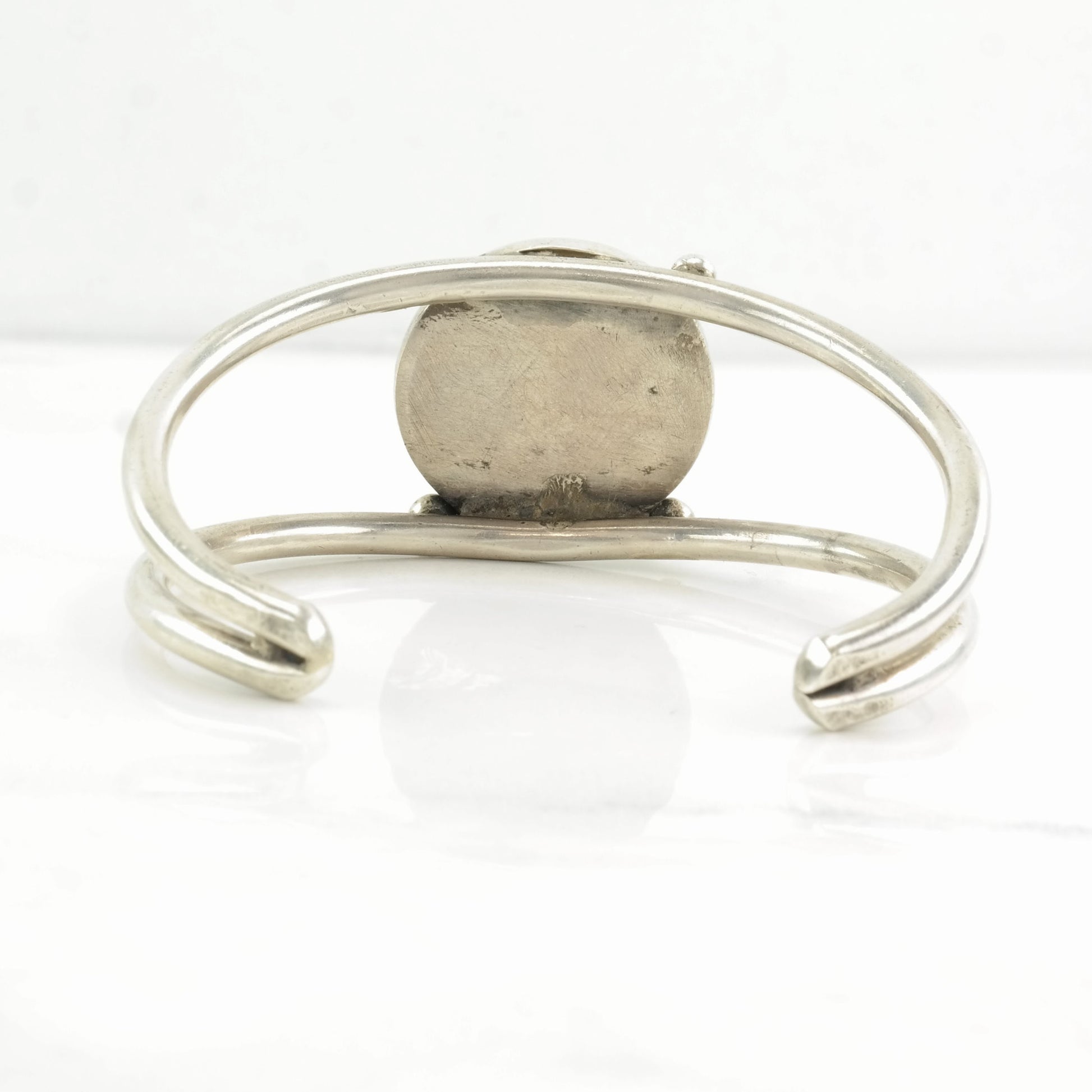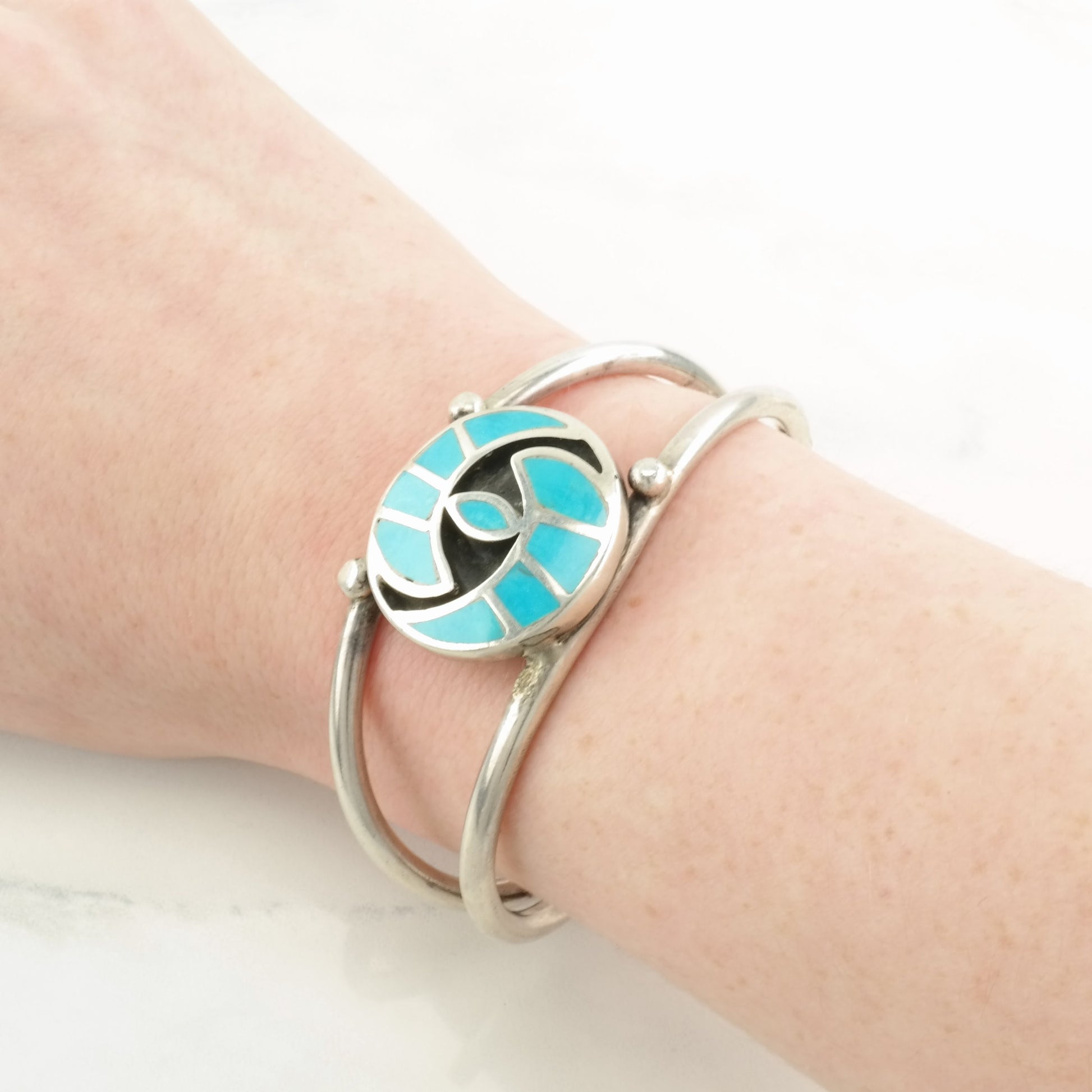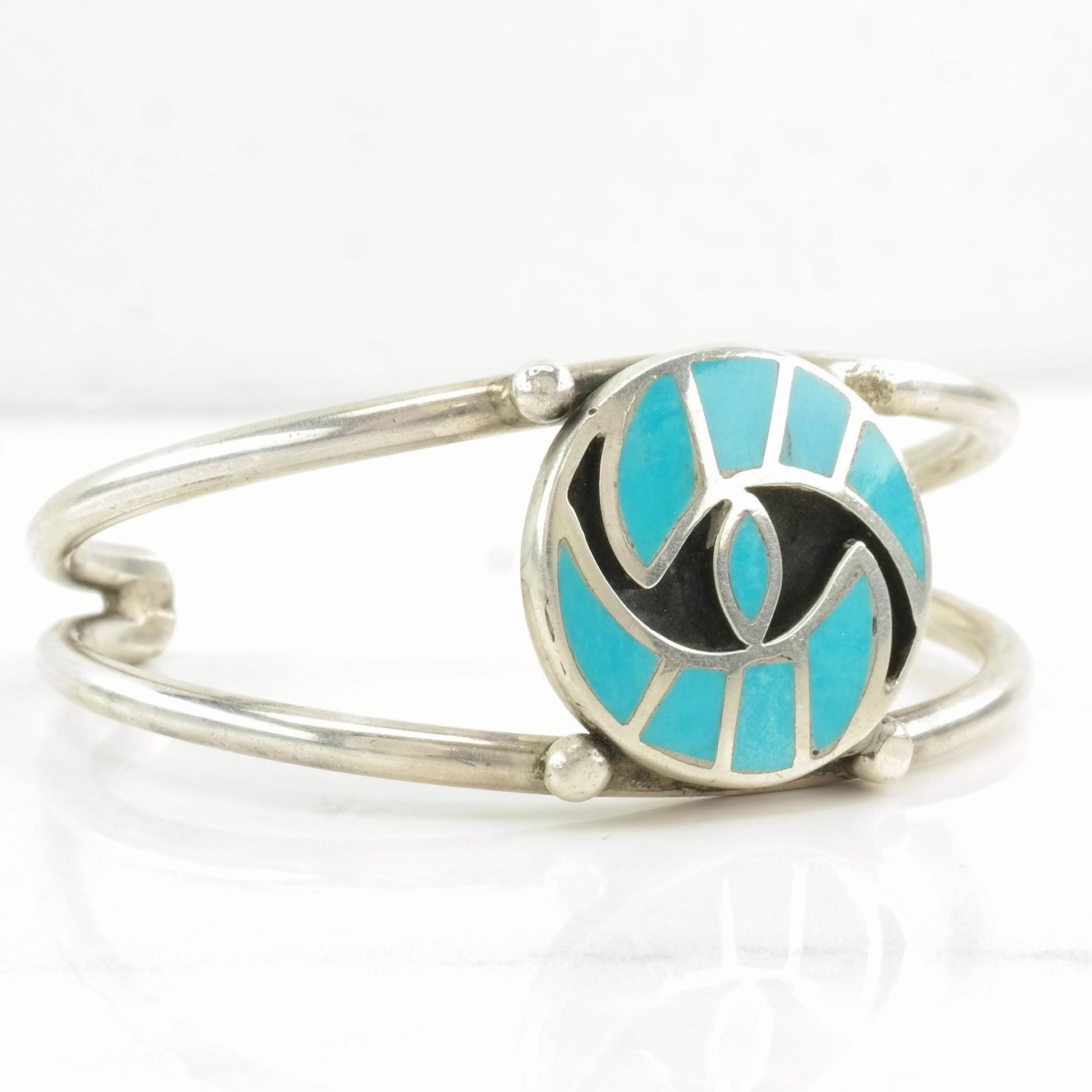 Native American Sterling Silver Cuff Bracelet Blue Turquoise Inlay