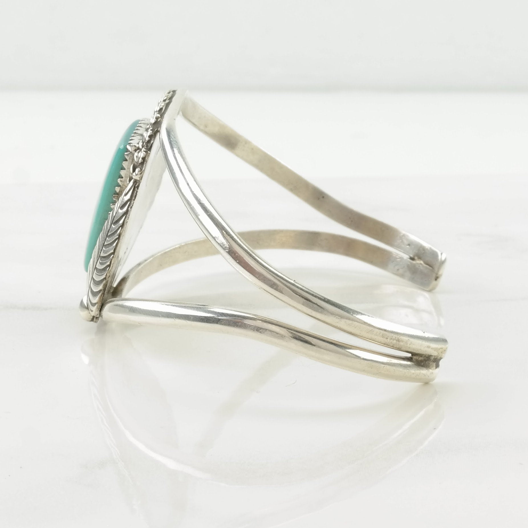 Native American Sterling Silver Cuff Bracelet Blue Turquoise Leaf