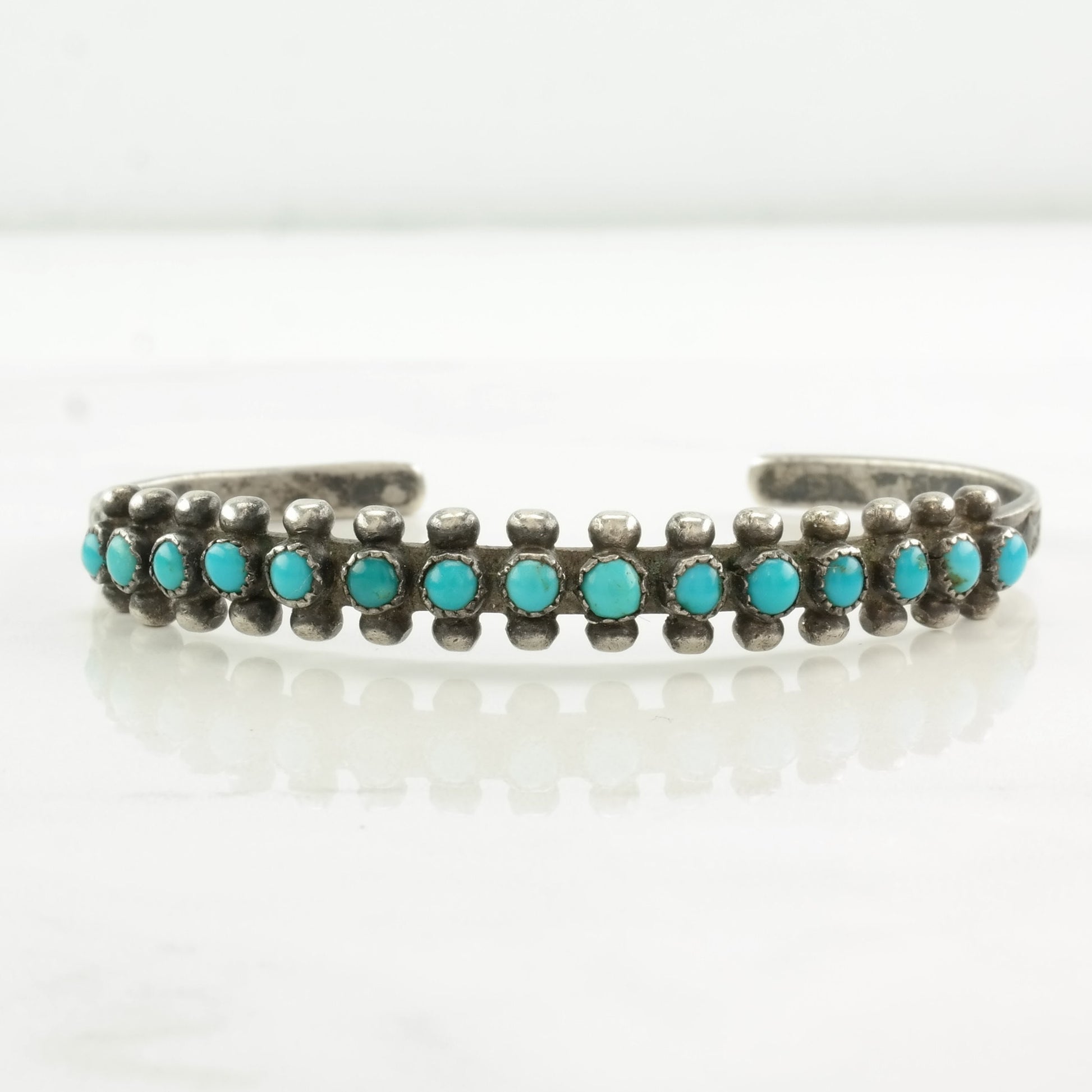 Native American Sterling Silver Cuff Bracelet Blue Turquoise Row