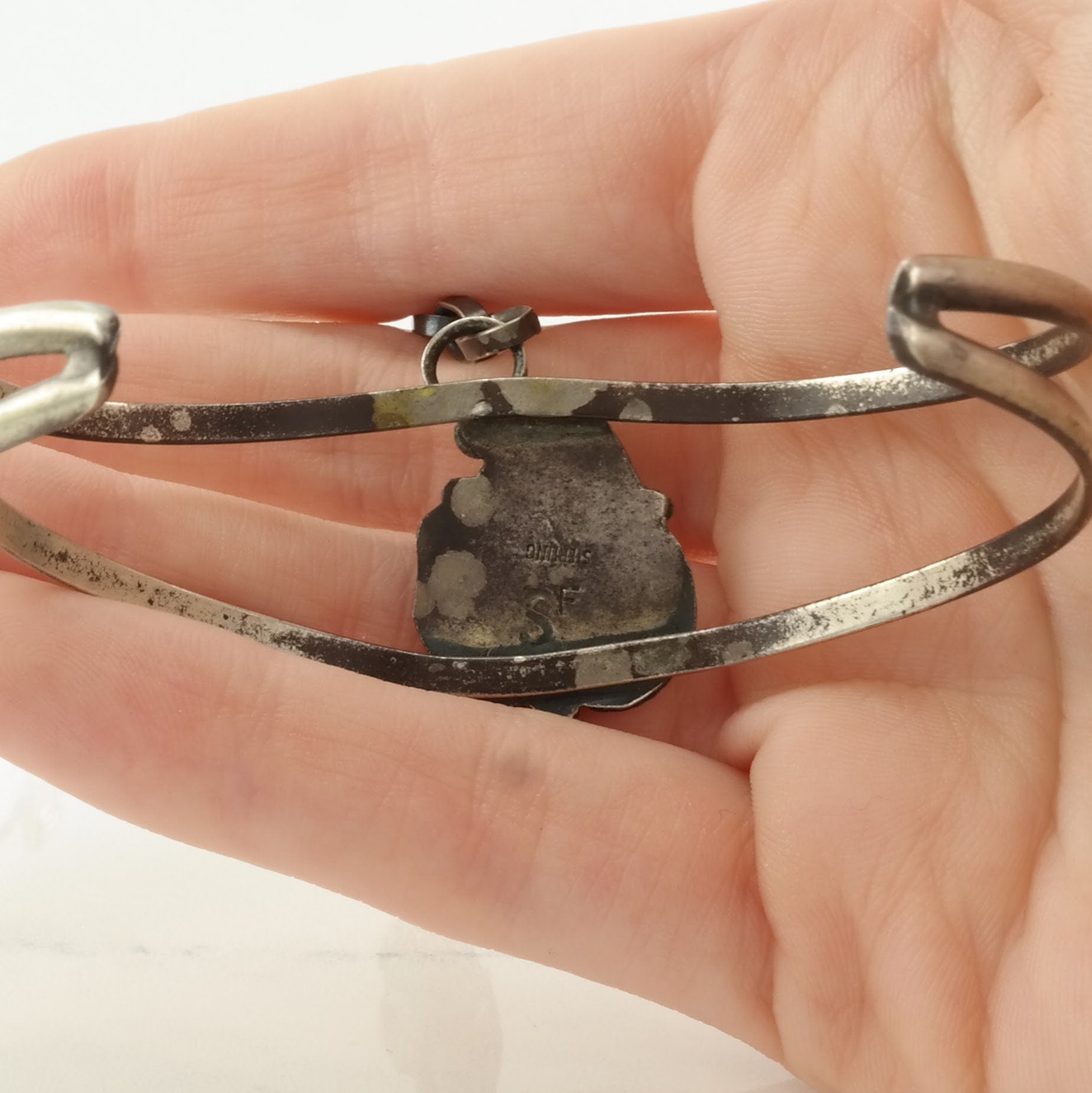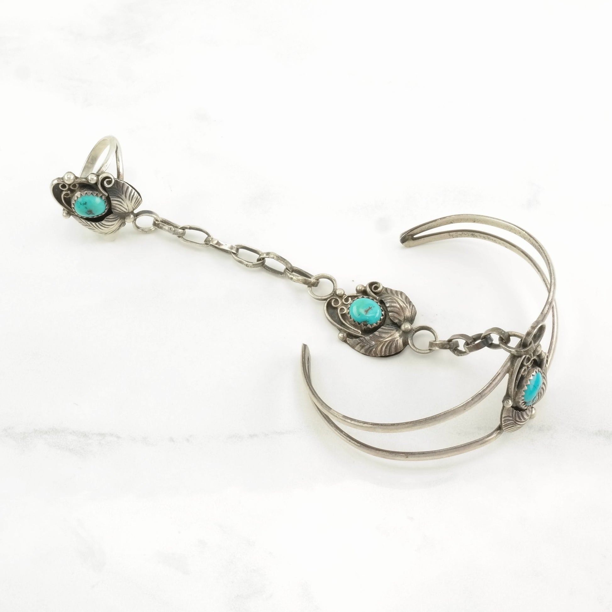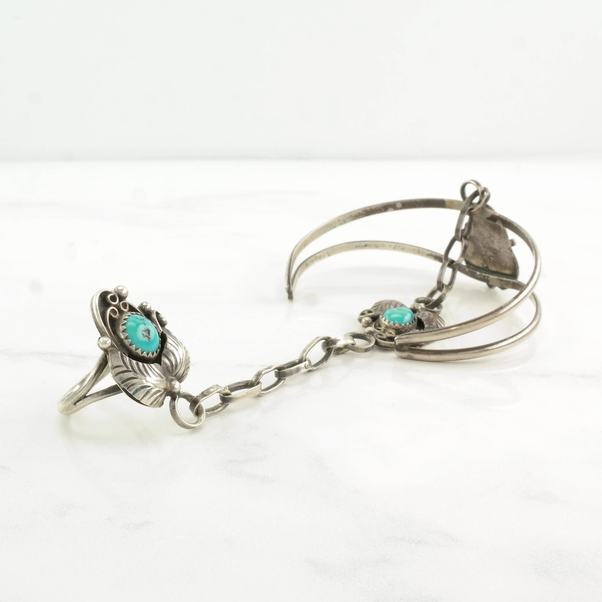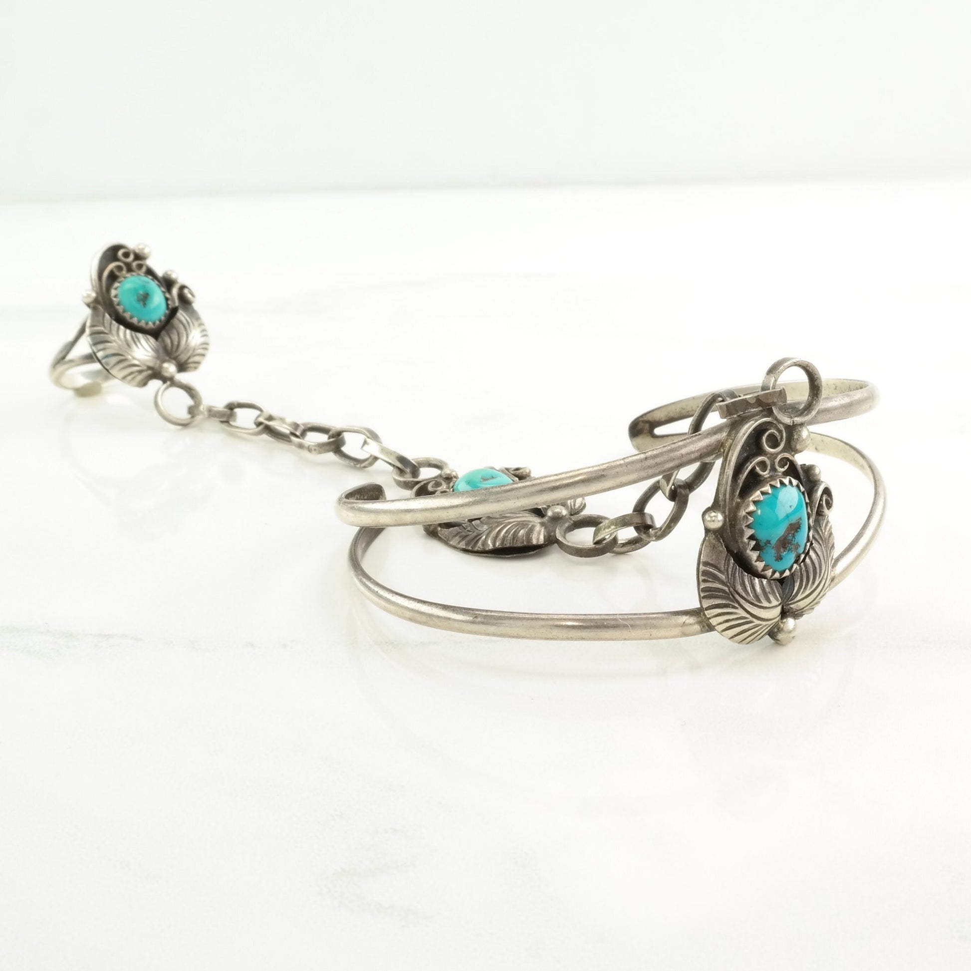 Native American Sterling Silver Cuff Bracelet Ring Combo Blue Turquoise Leaf