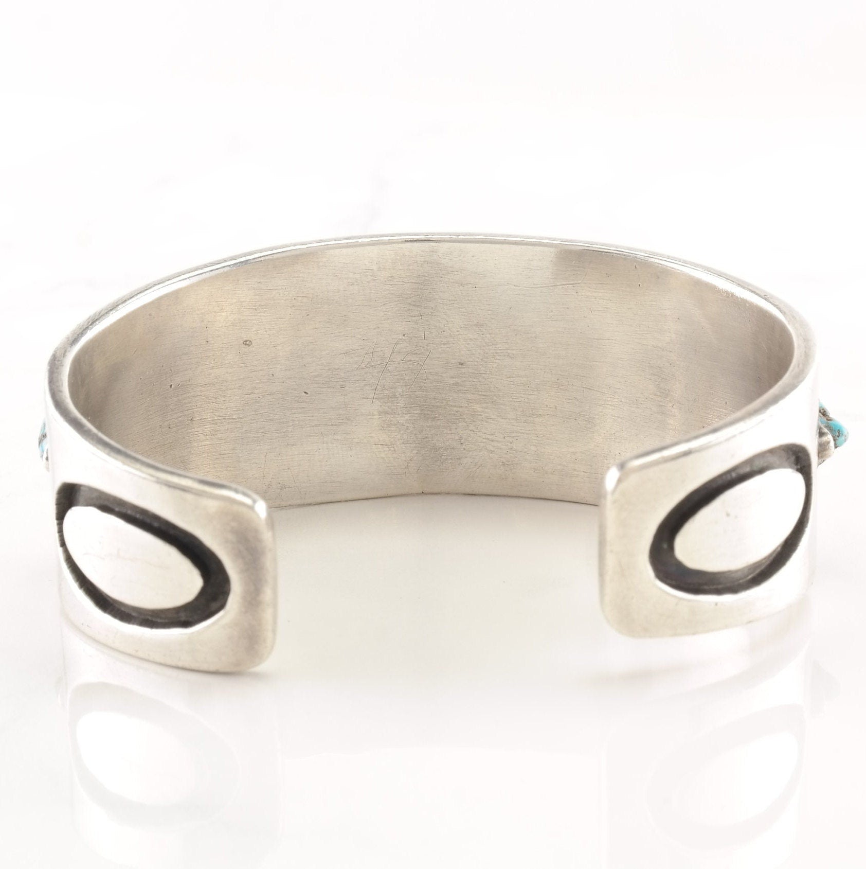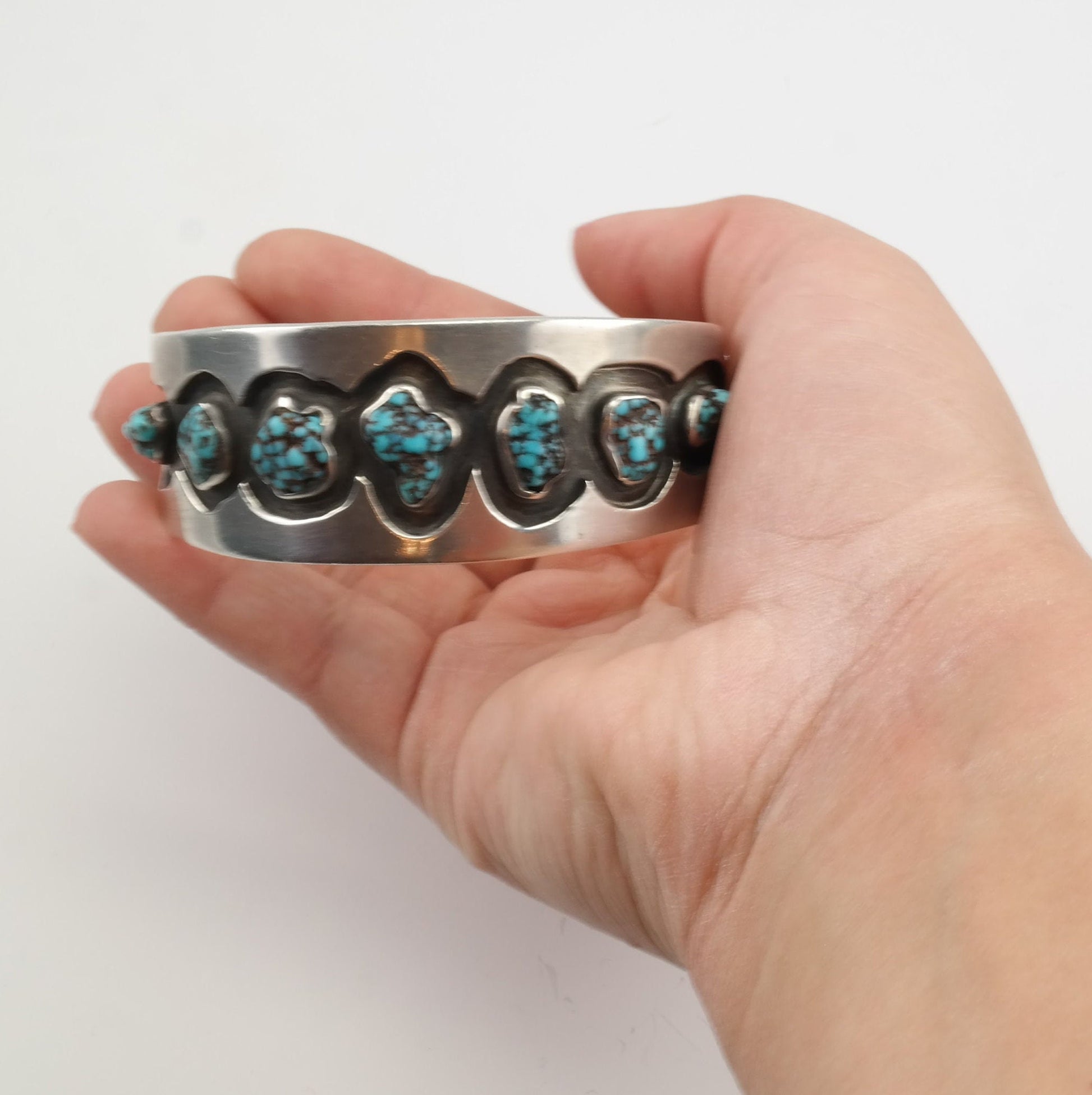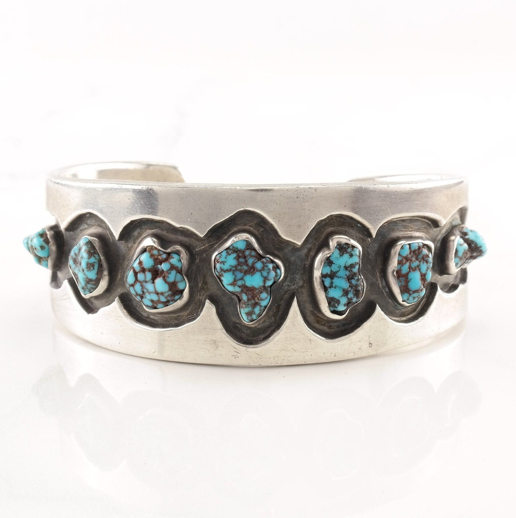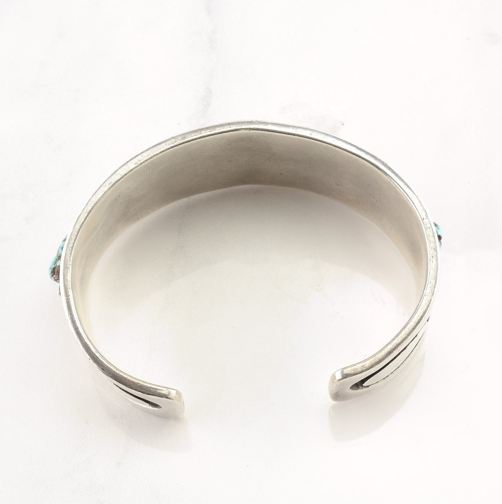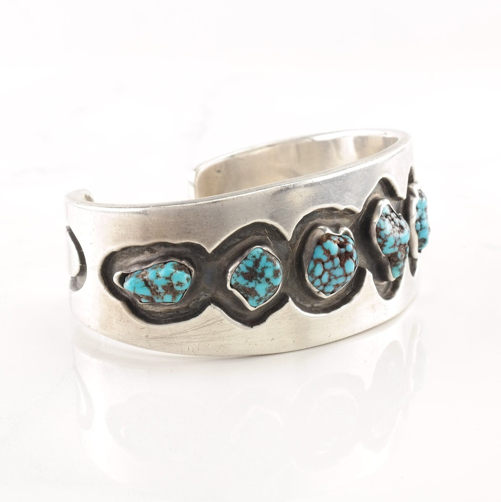Native American Sterling Silver Cuff Bracelet Spiderweb Turquoise Nuggets
