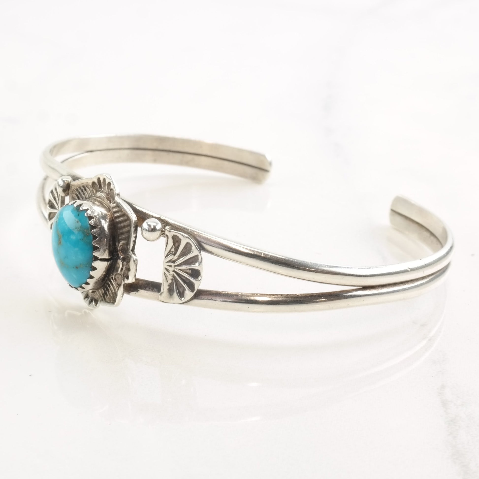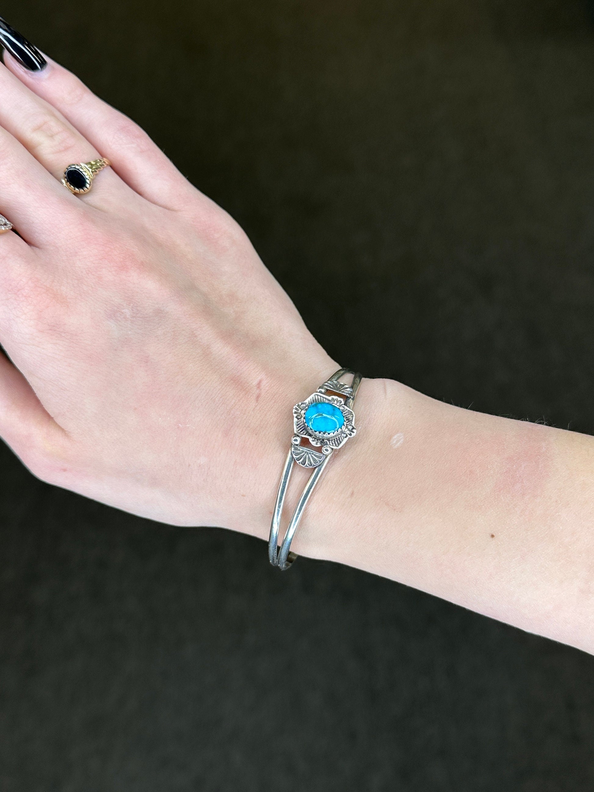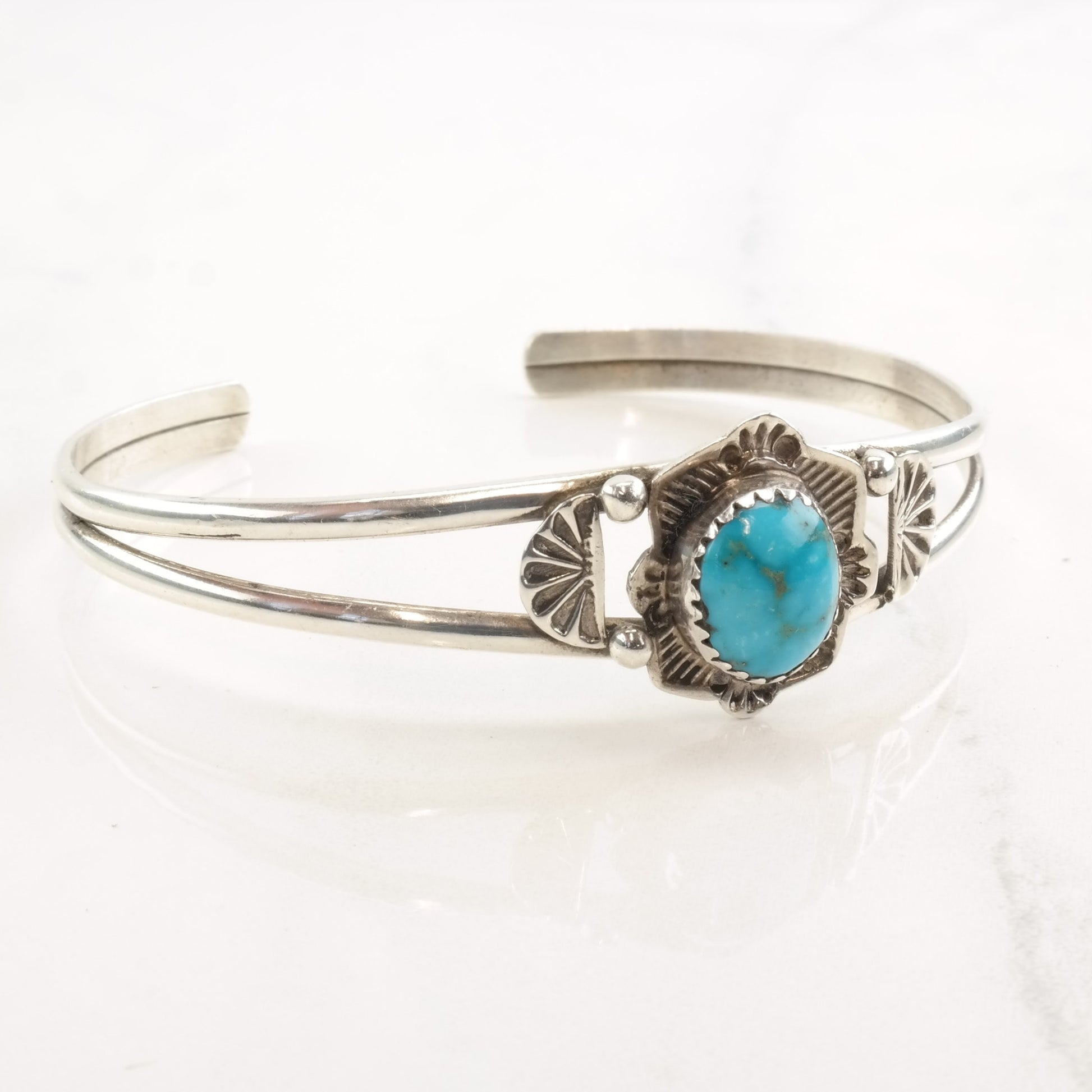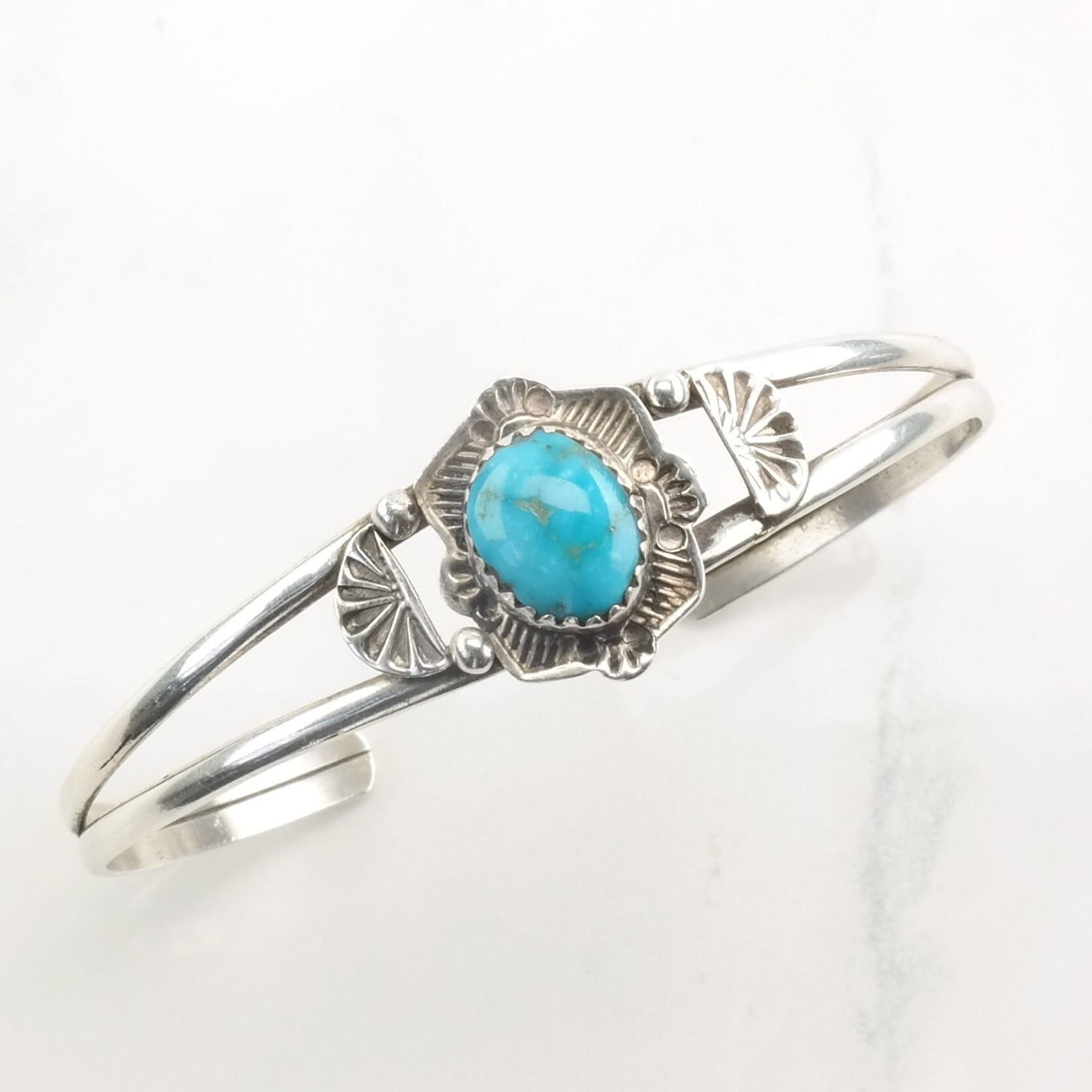 Native American Sterling Silver Cuff Bracelet Turquoise Oval
