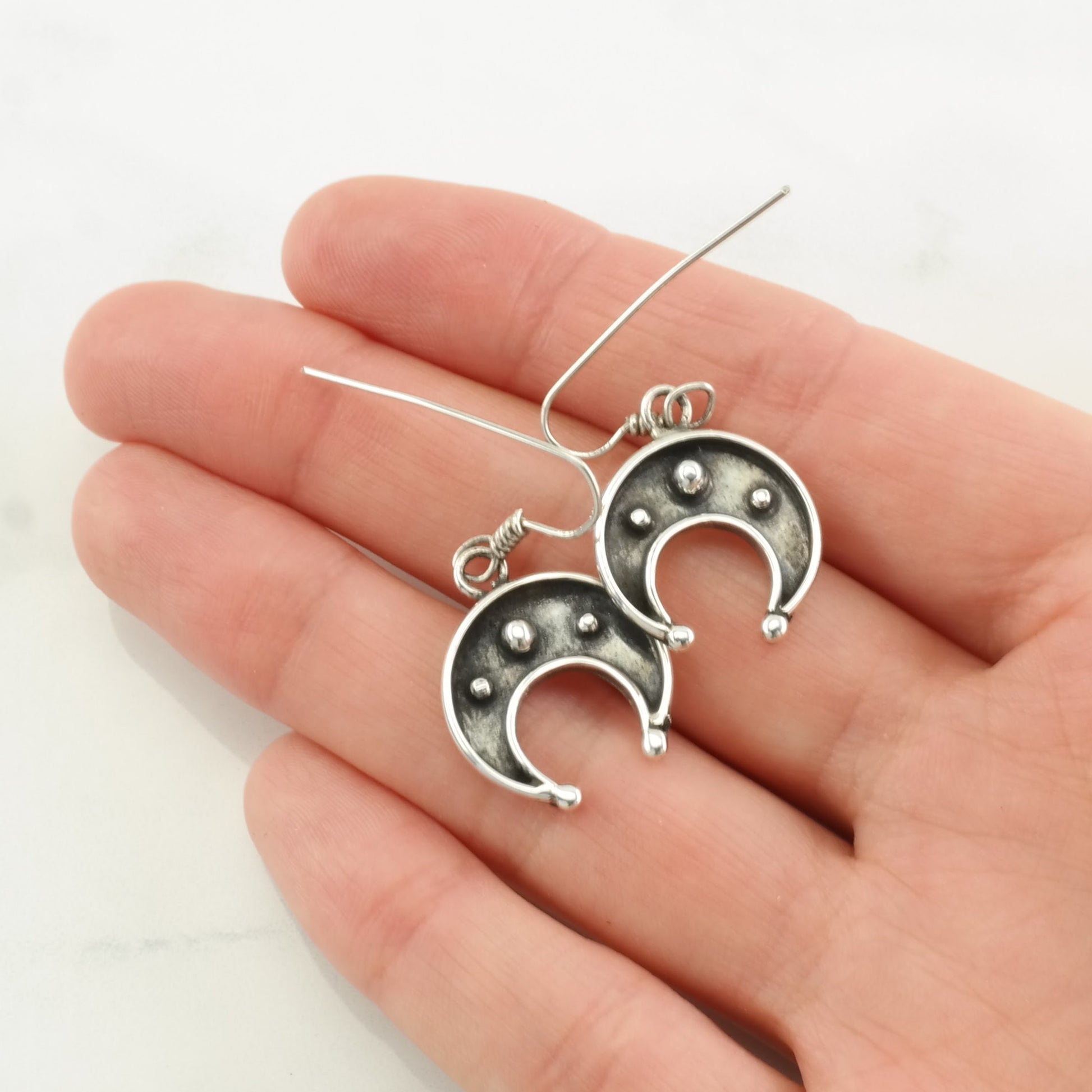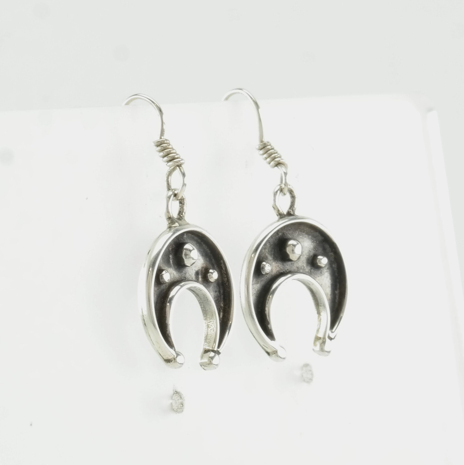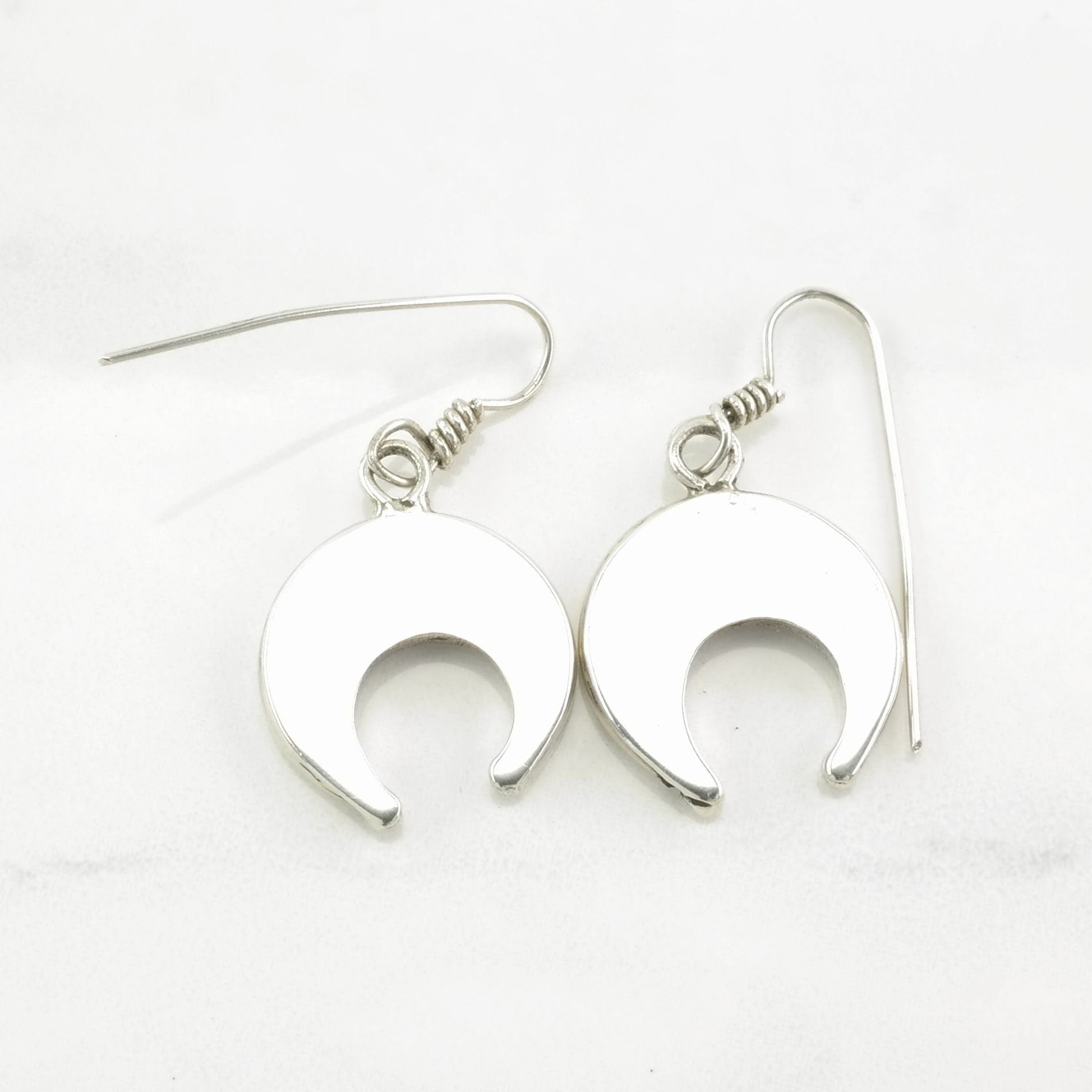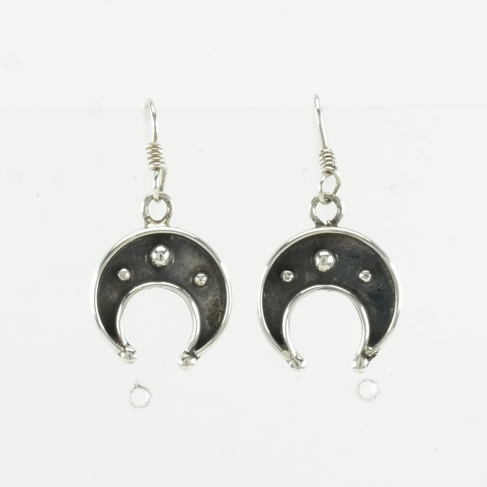 Native American Sterling Silver Shadowbox Crescent Earrings Fish hook