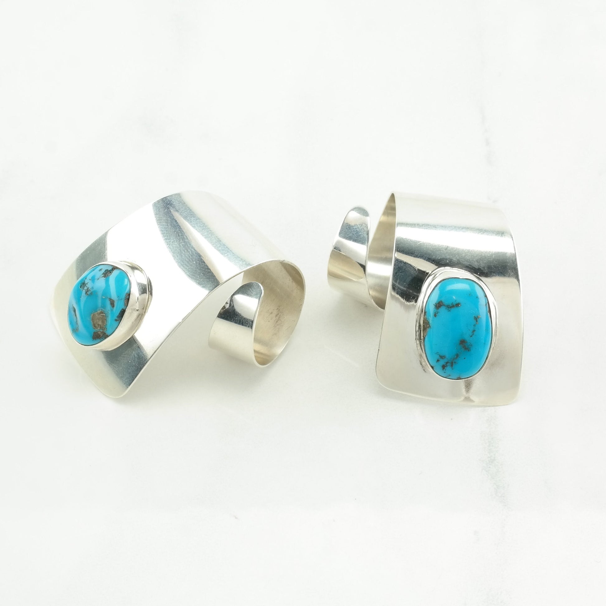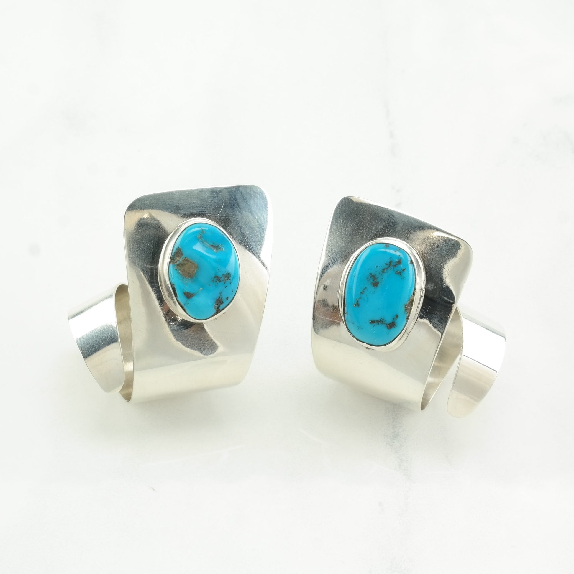 Native American Sterling Silver Turquoise Abstract Earrings Stud