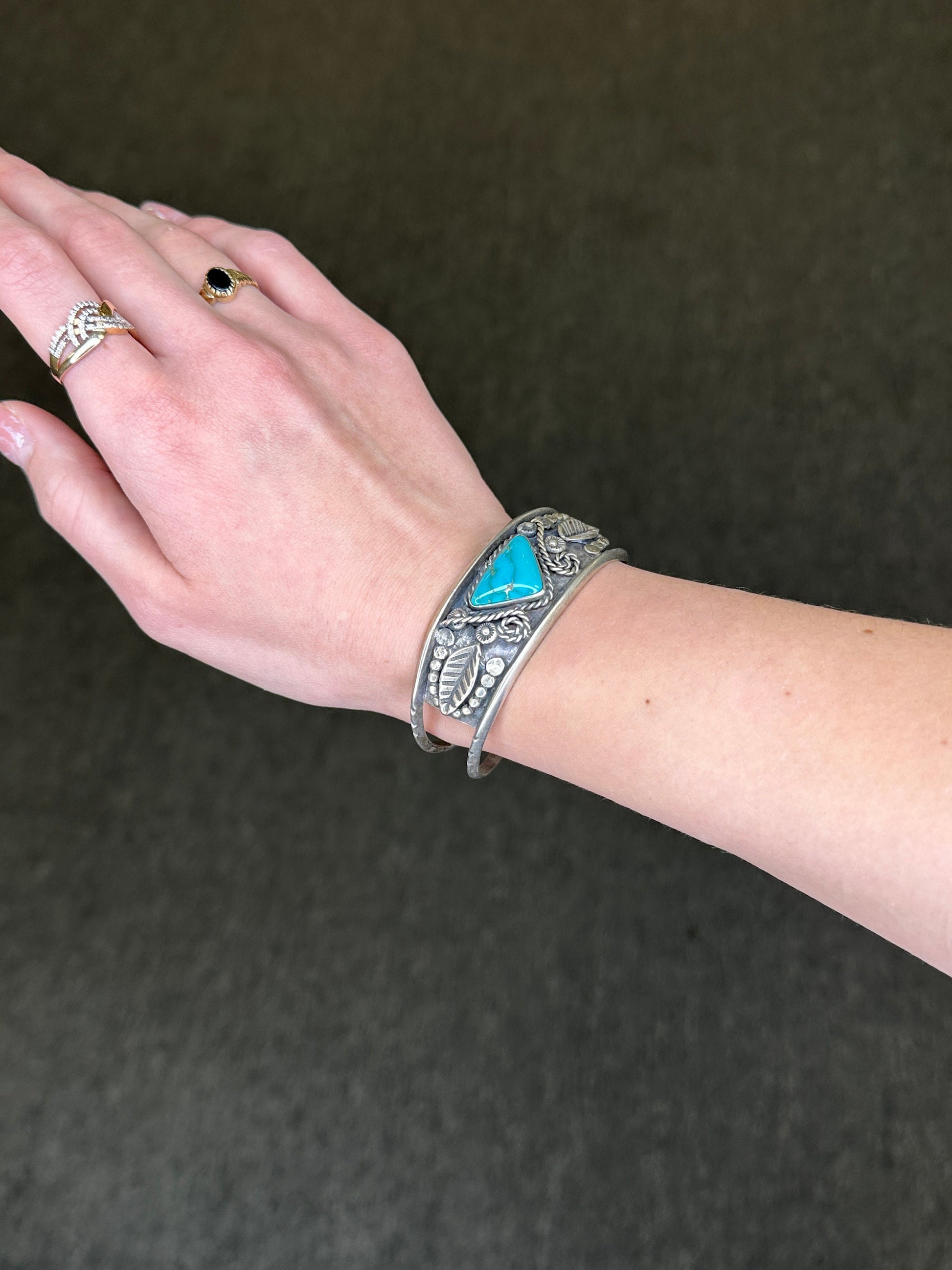 Native American Sterling Silver Turquoise Leaf Triangle Cuff Bracelet