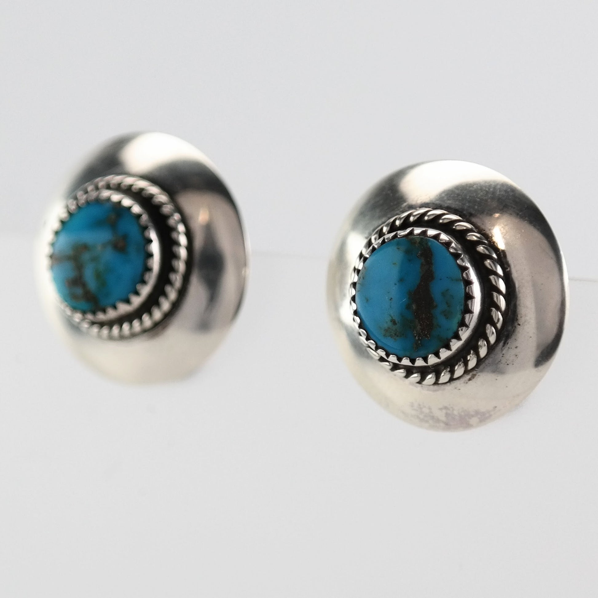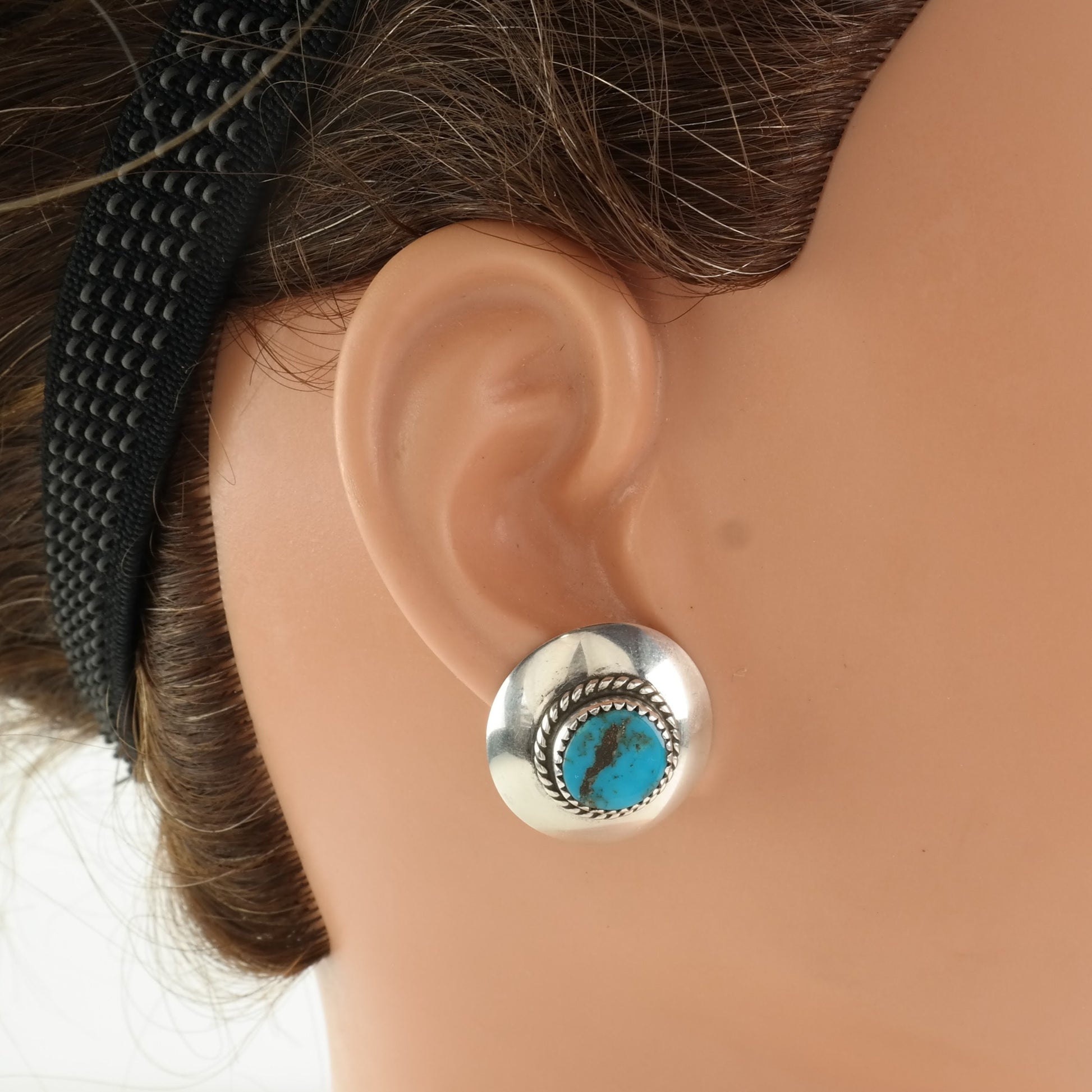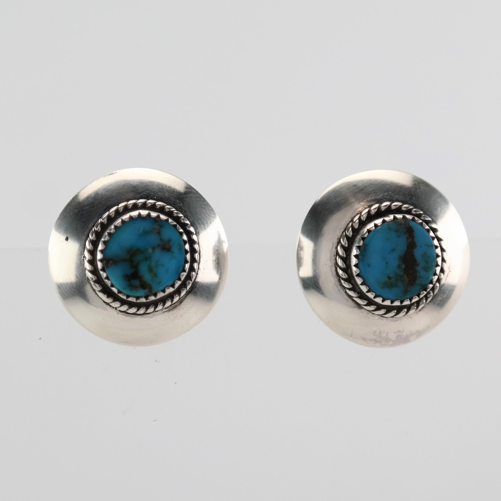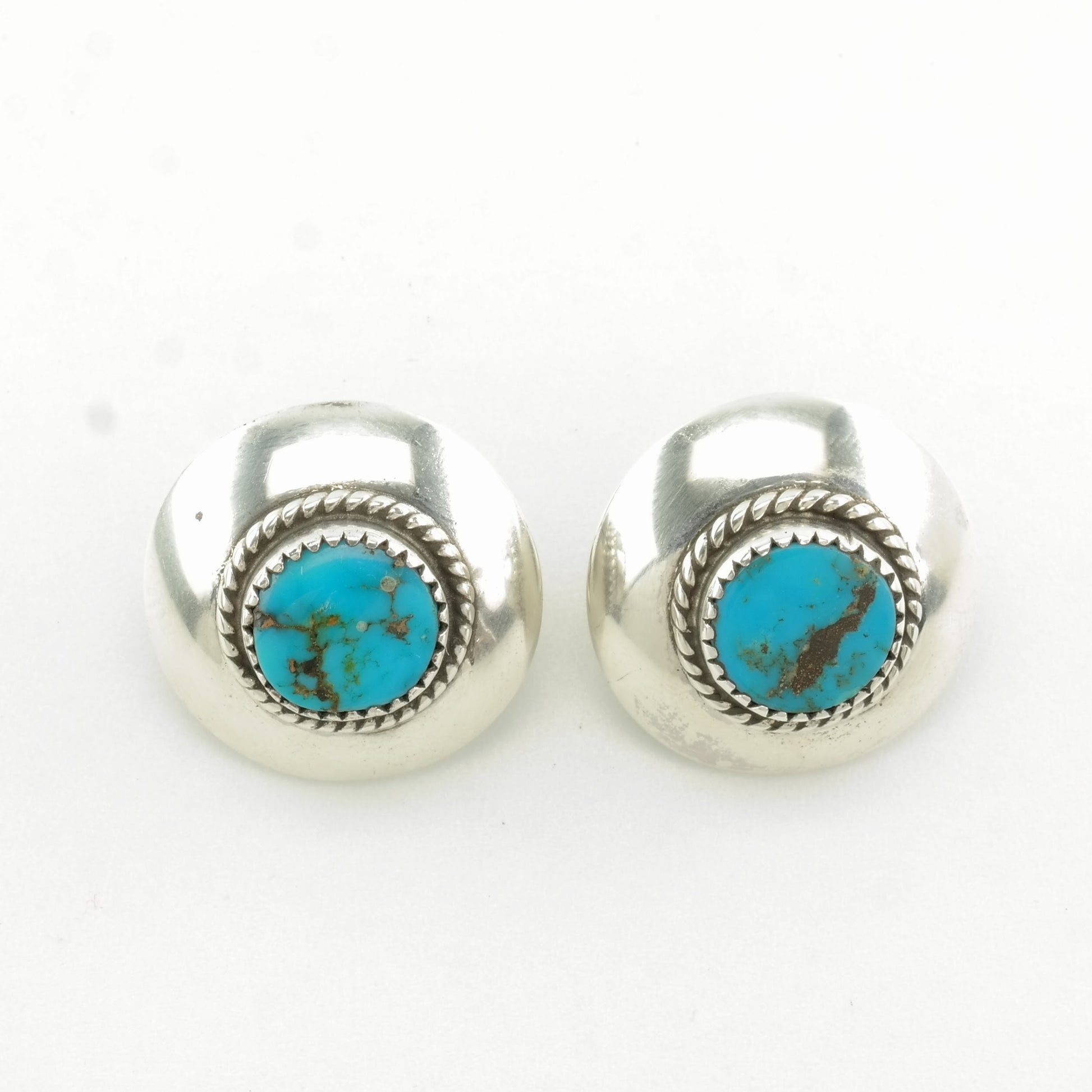 Native American Sterling Silver Turquoise Shield Earrings Clip on