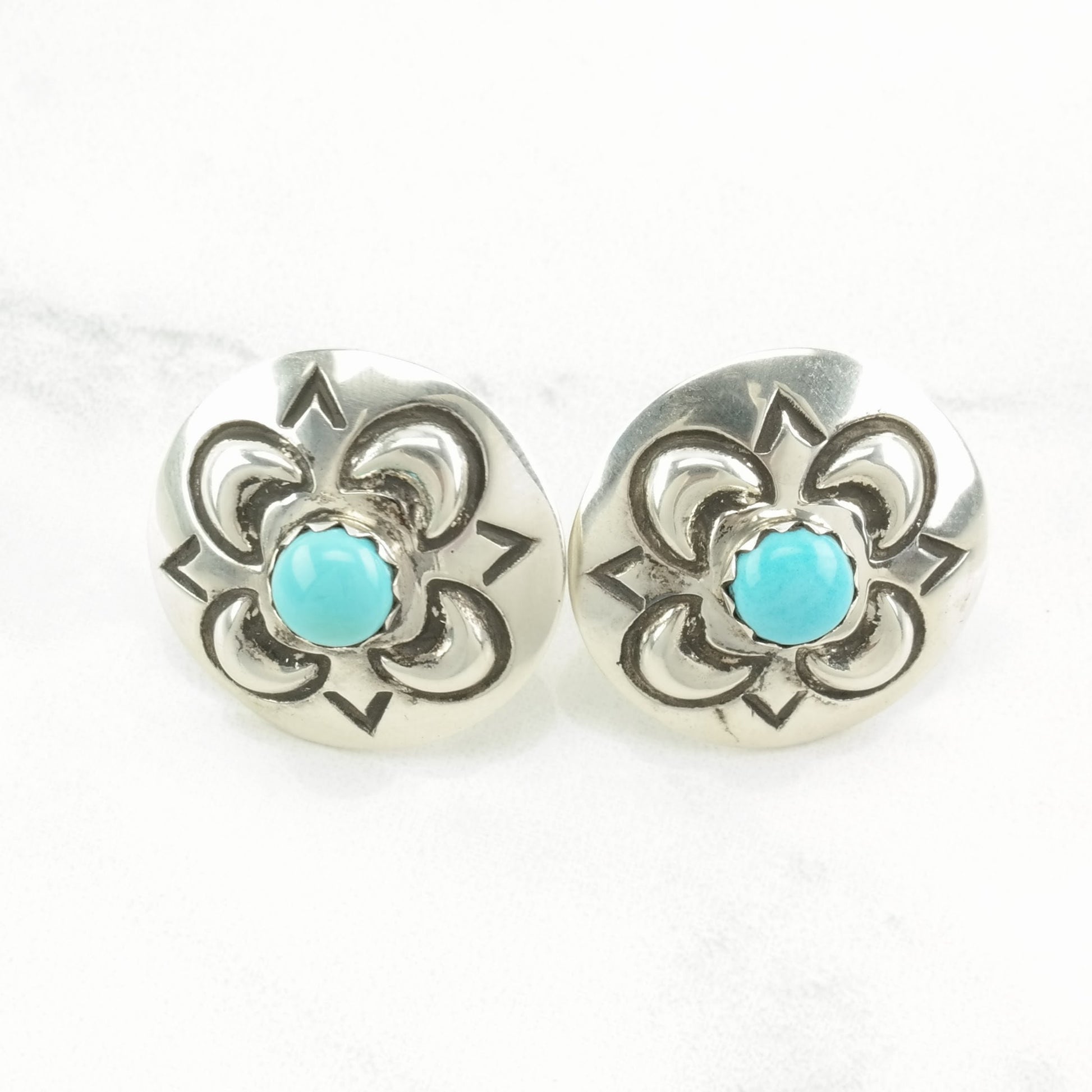 Native American Sterling Silver Turquoise Stamped Earrings Stud