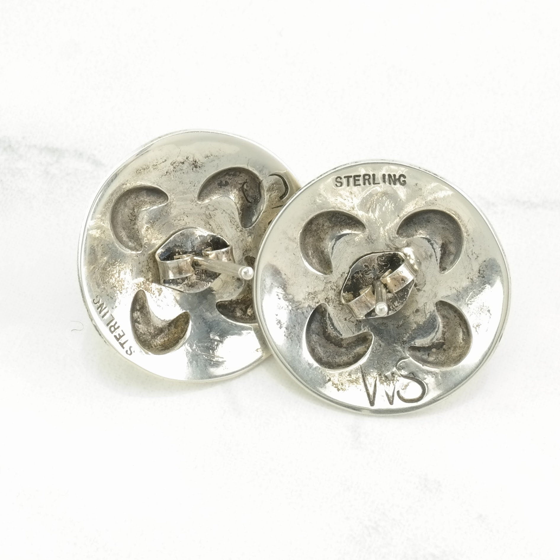 These vintage sterling silver earrings are 13/16 inches long and 13/16 inch wide