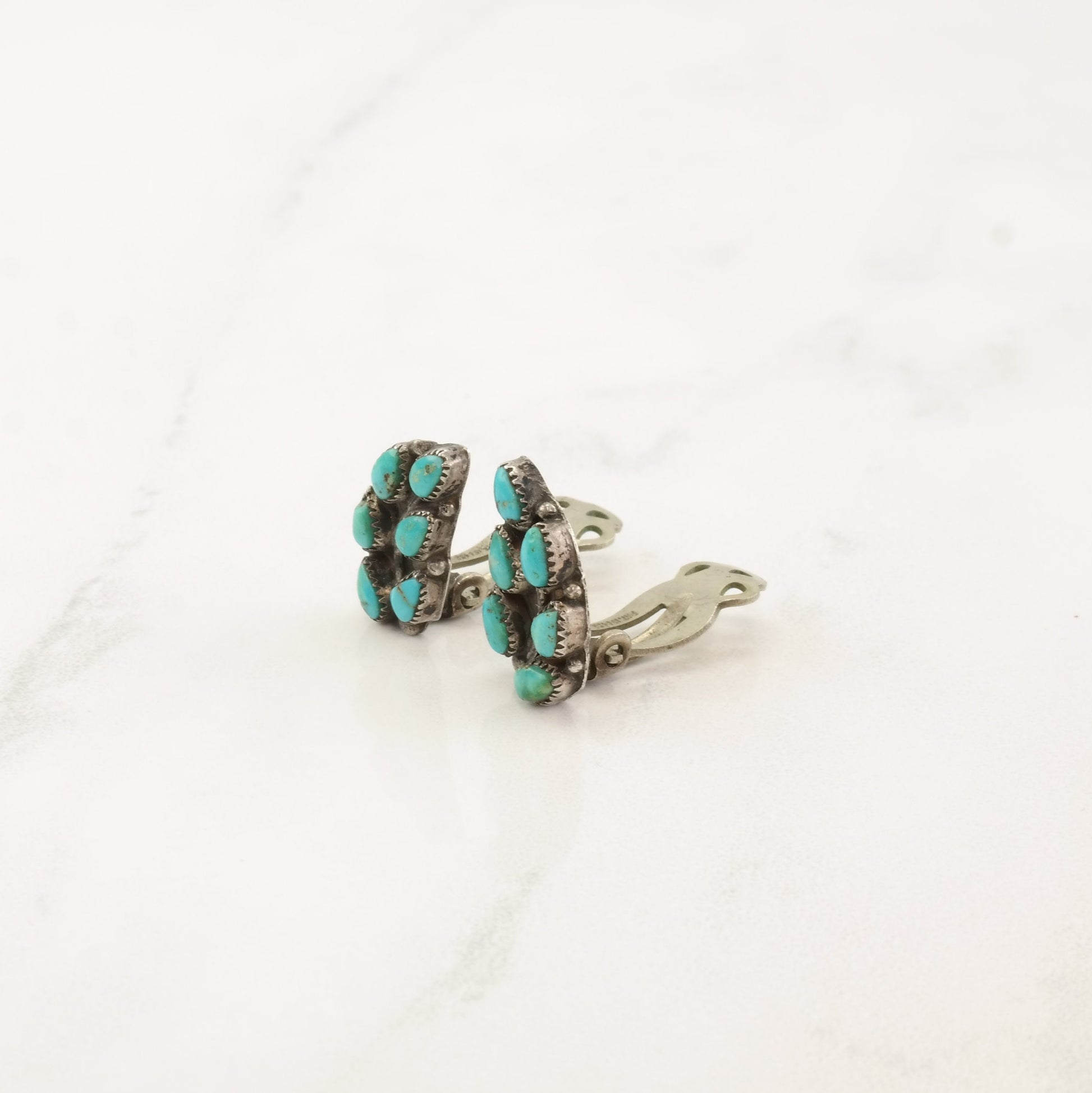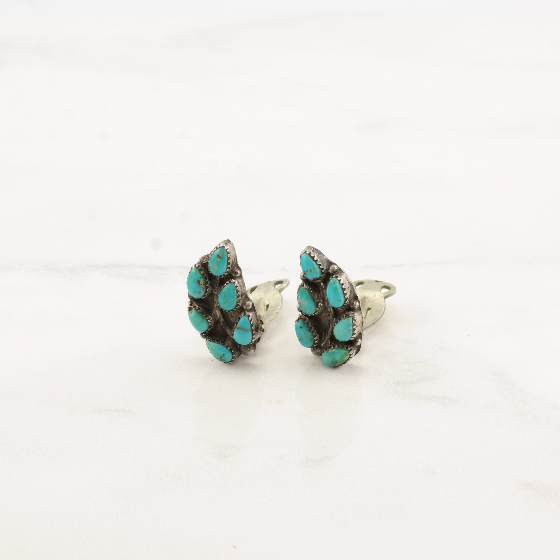 Native American Sterling Silver Turquoise Zuni Leaf Earrings Clip On