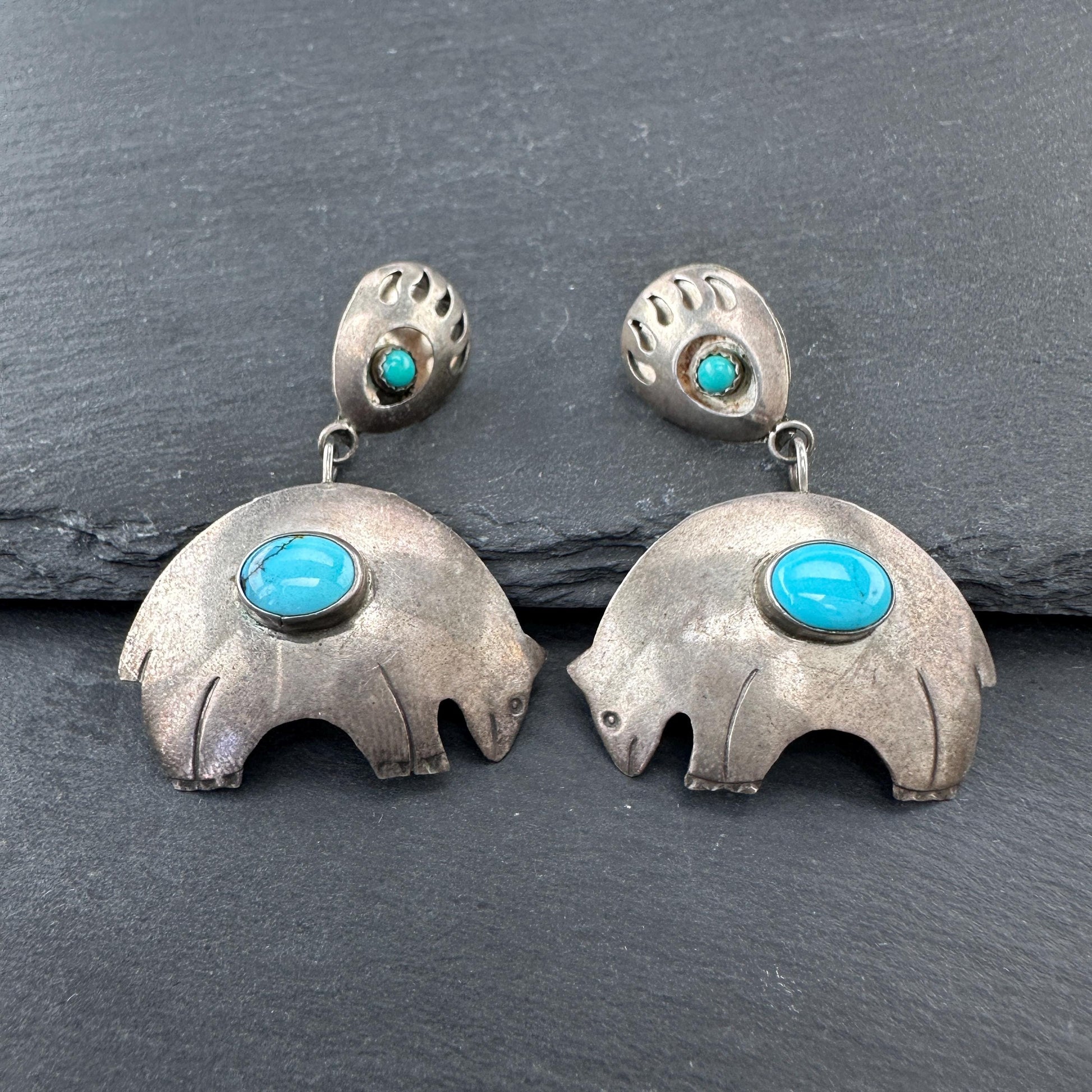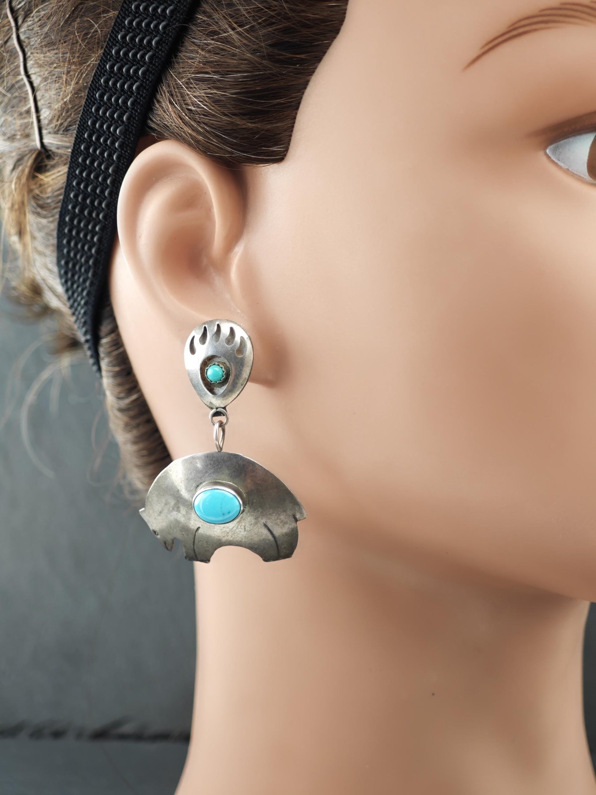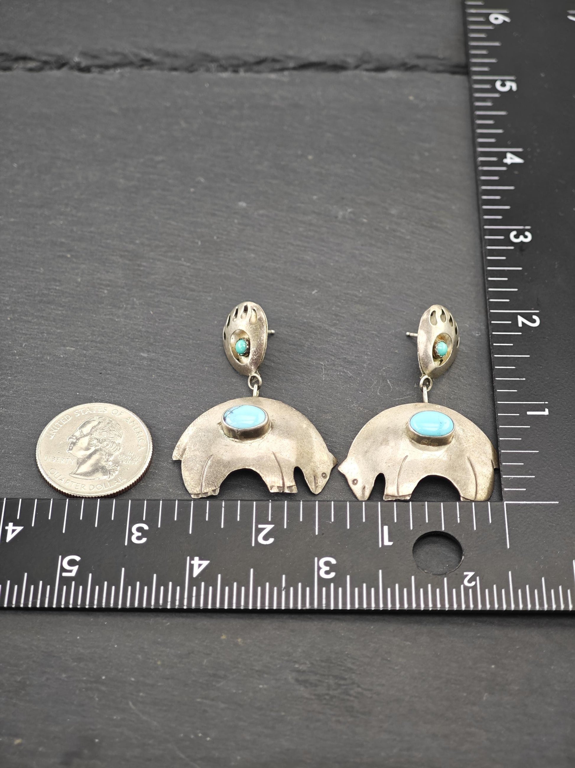 Native American, Turquoise Bear Stud/Dangle Earrings Sterling Silver