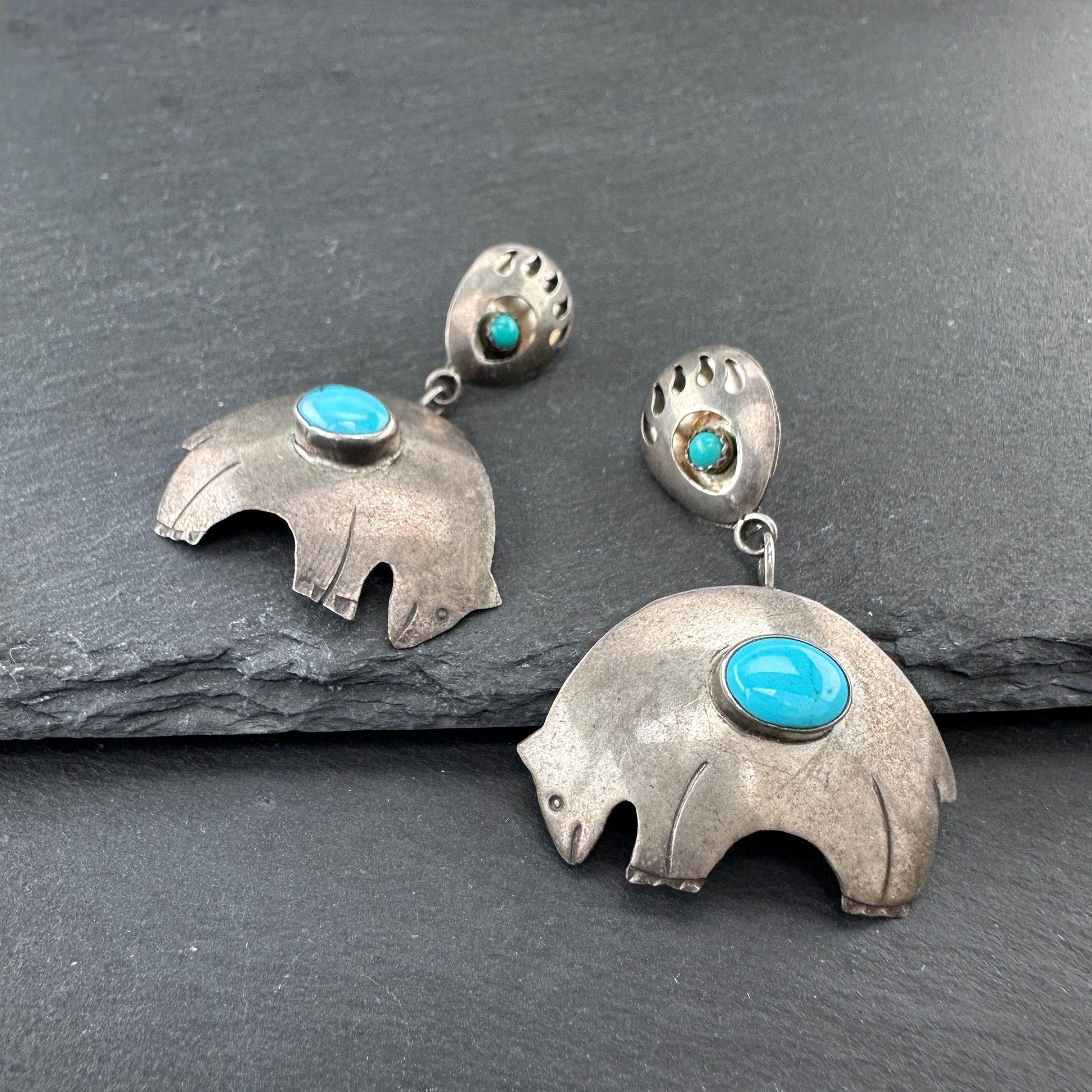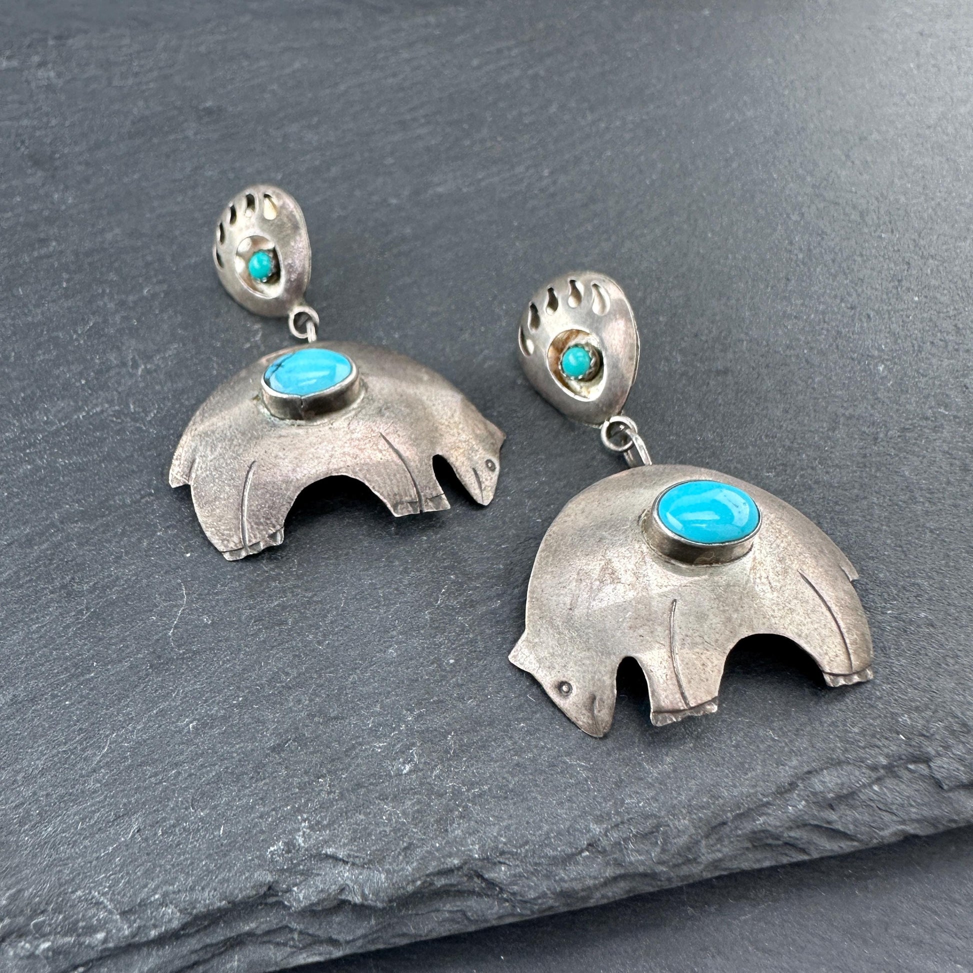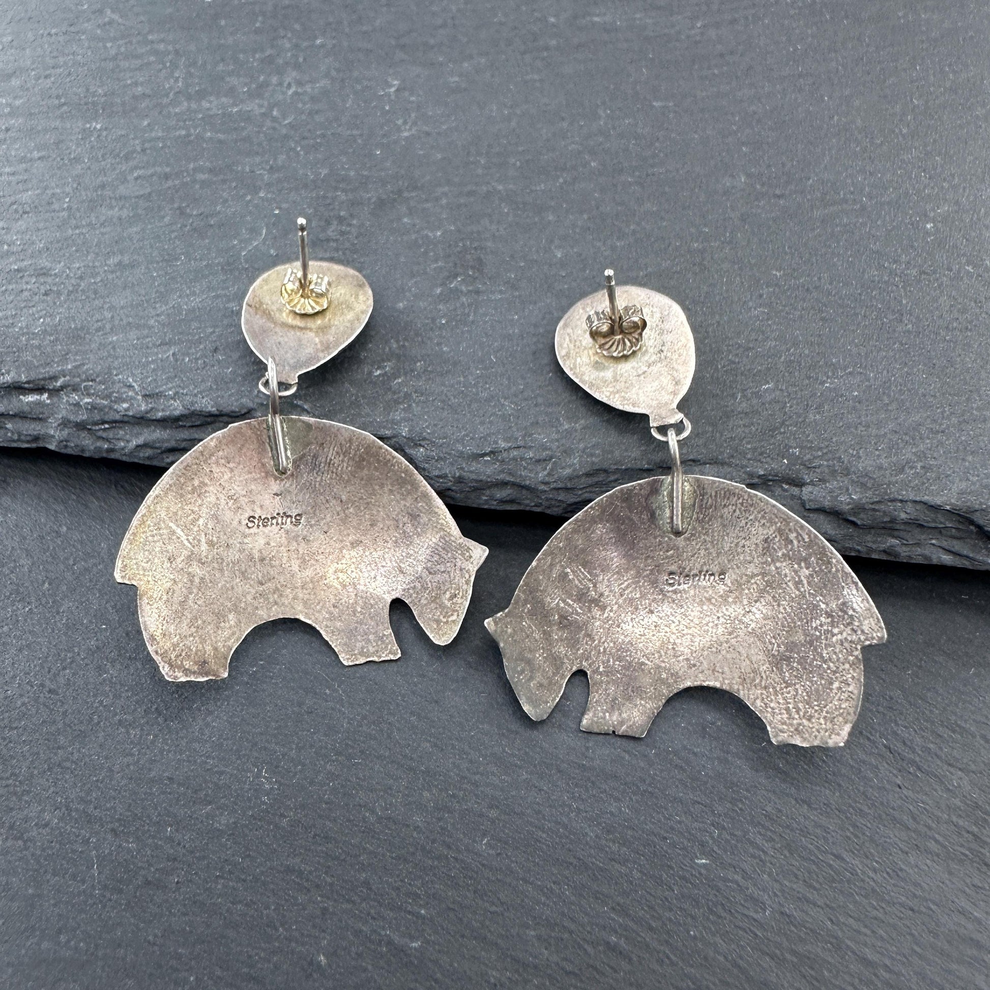 Native American, Turquoise Bear Stud/Dangle Earrings Sterling Silver