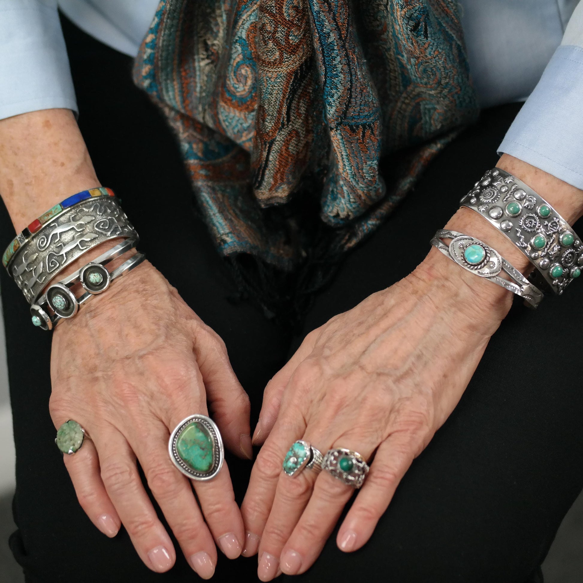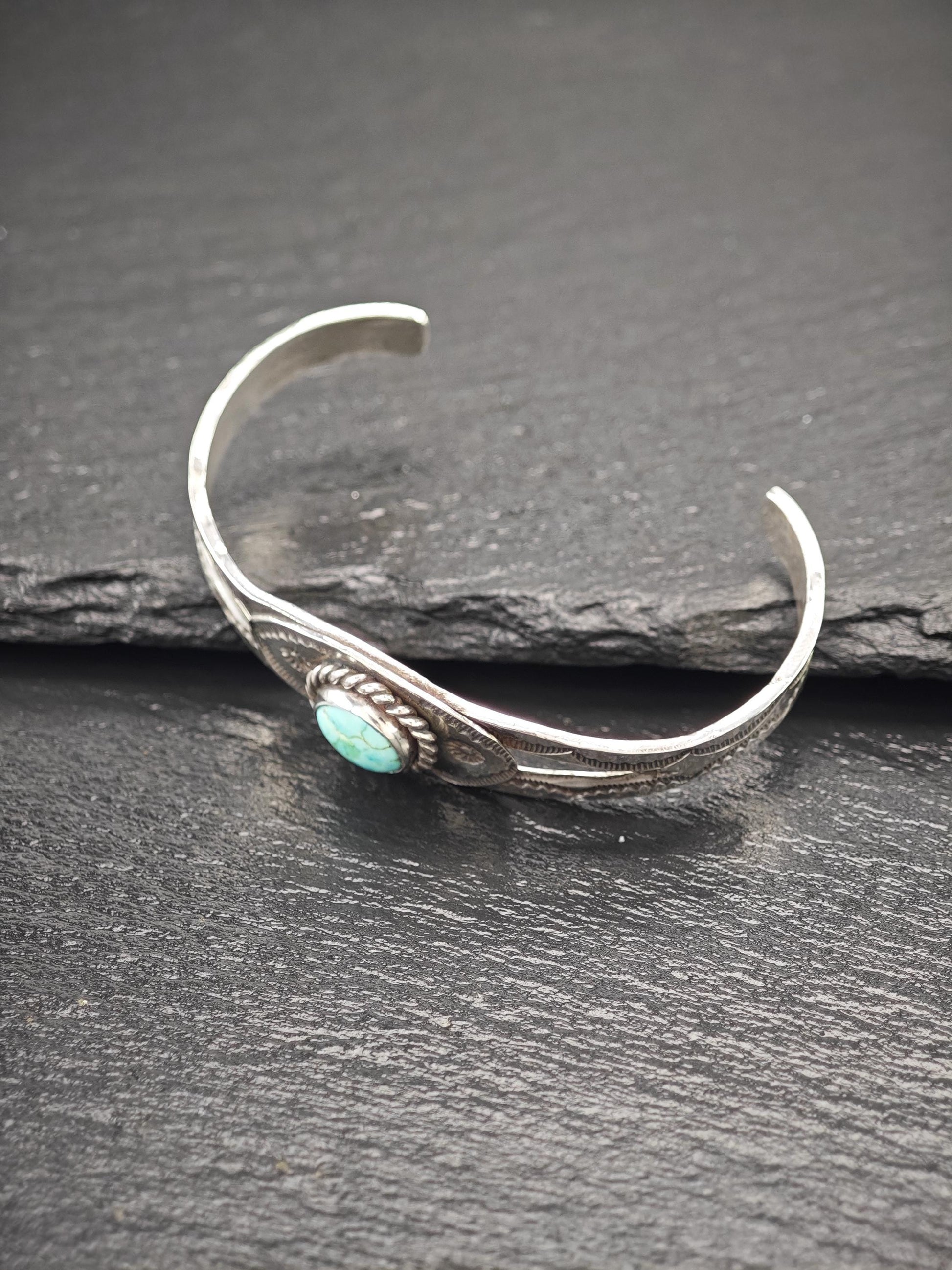 Native American Turquoise, Stamped Cuff Bracelet Sterling Silver