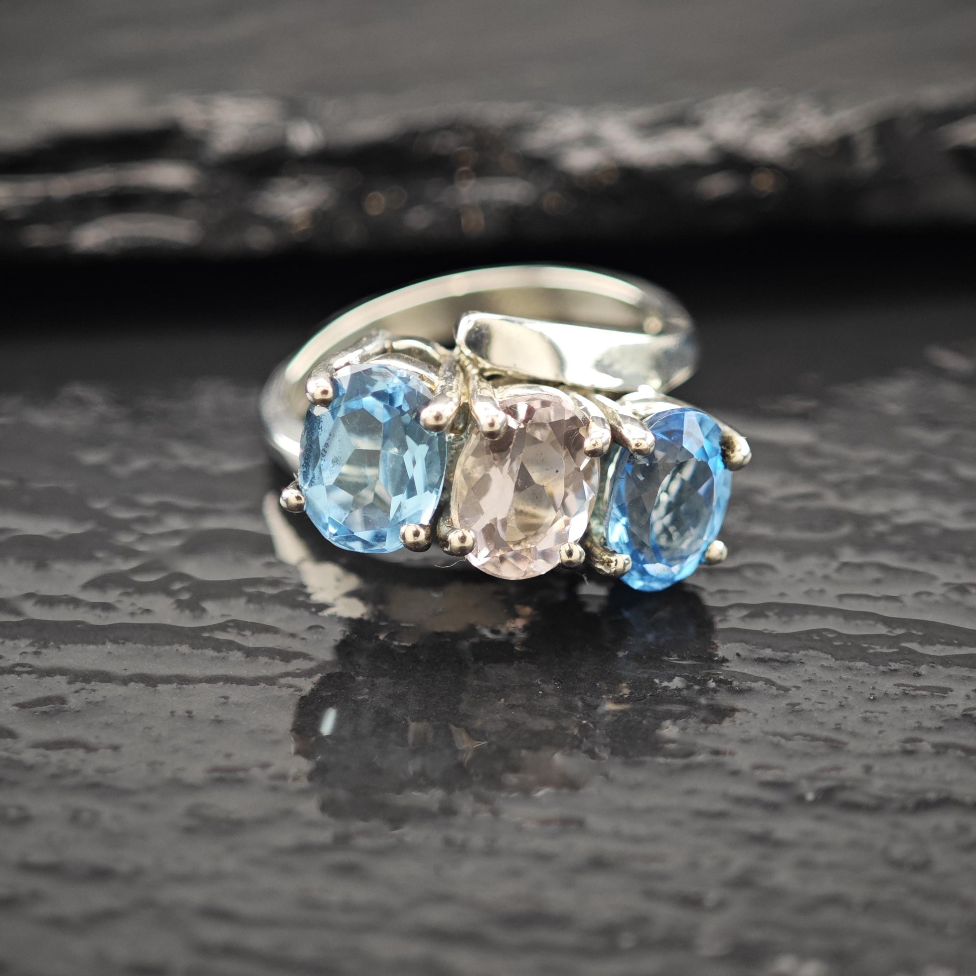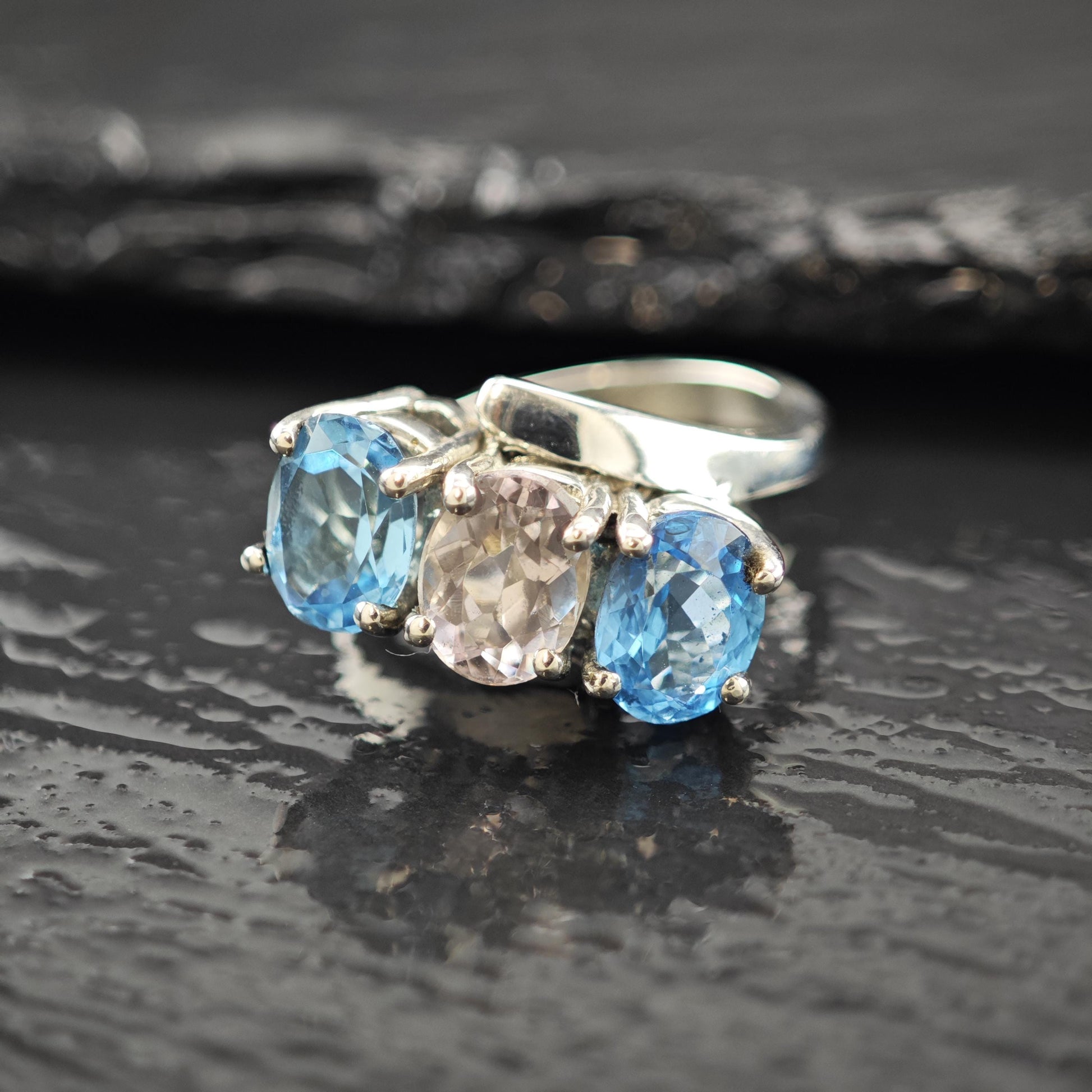 Natural Amethyst and Topaz Ring: Sterling Silver Vintage Style Size 6 3/4