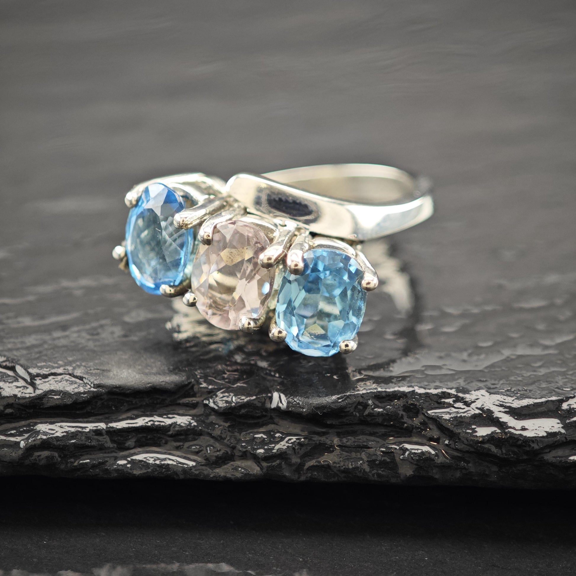 Discover the timeless elegance of this sterling silver ring, beautifully crafted with natural amethyst and topaz stones that evoke a vintage charm. This vintage ring, stamped with a designer hallmark and guaranteed 925 silver, carries a story of refined craftsmanship and classic style. Perfect as a holiday gift or a cherished addition to your own collection, it blends delicate artistry with lasting quality.