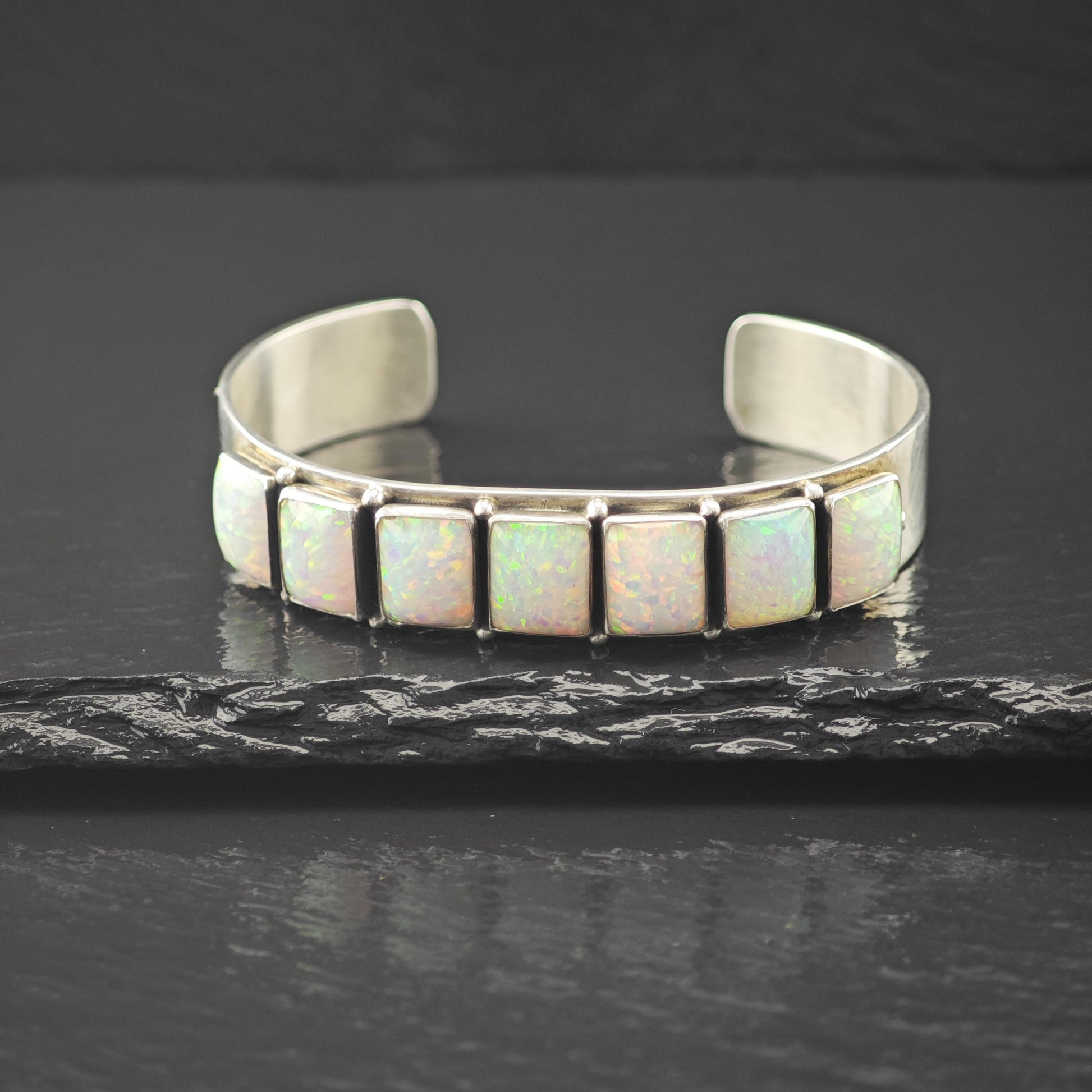 Navajo, Leonard James Lab Opal Cuff Bracelet Sterling Silver