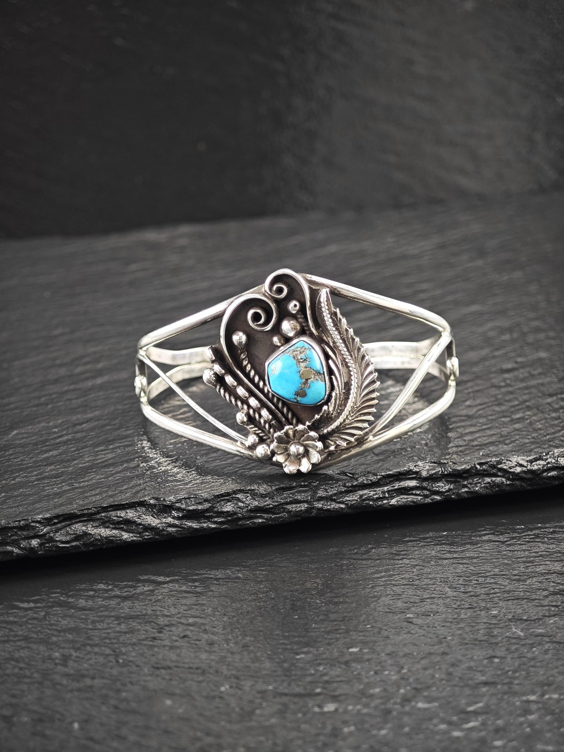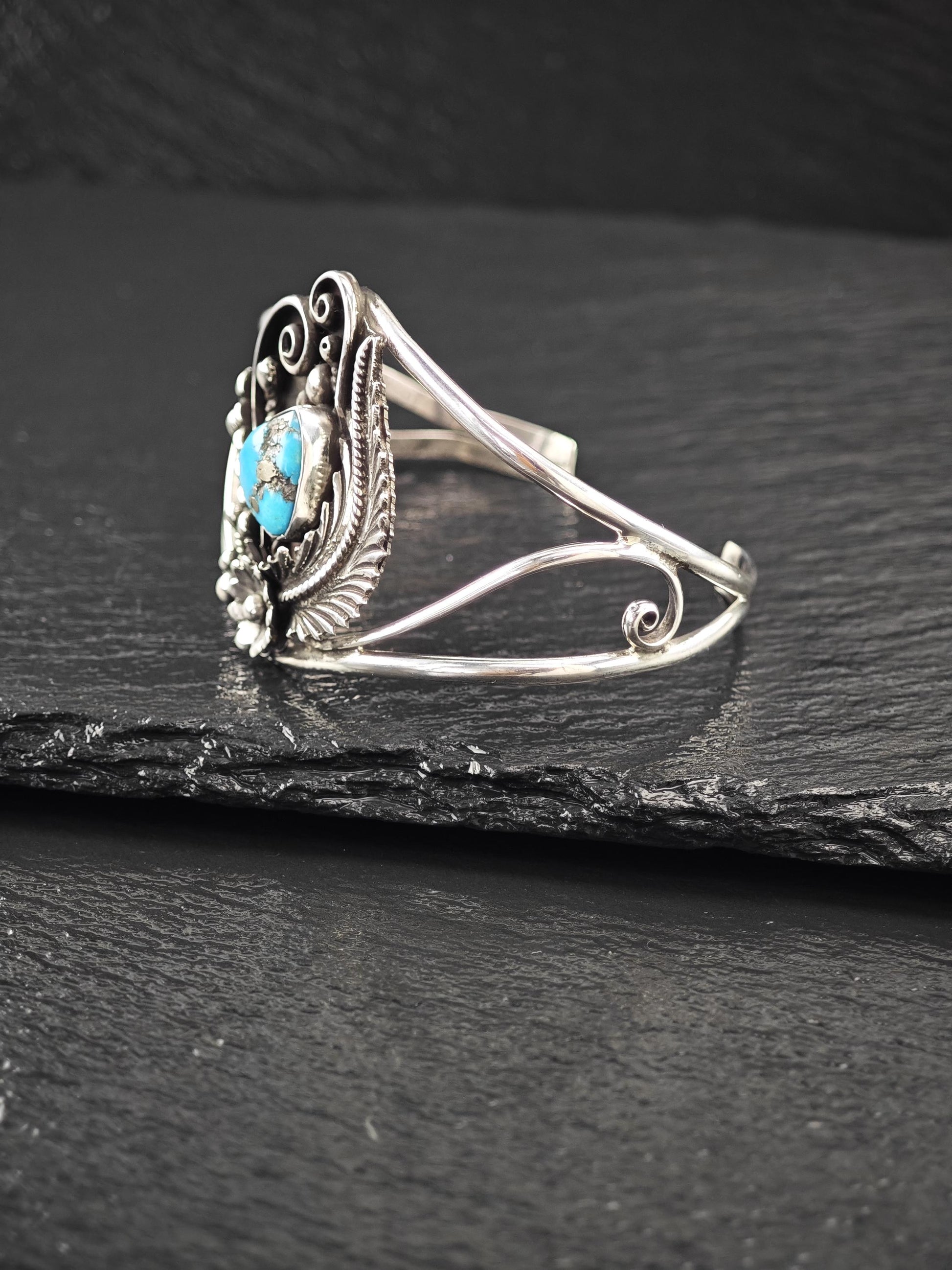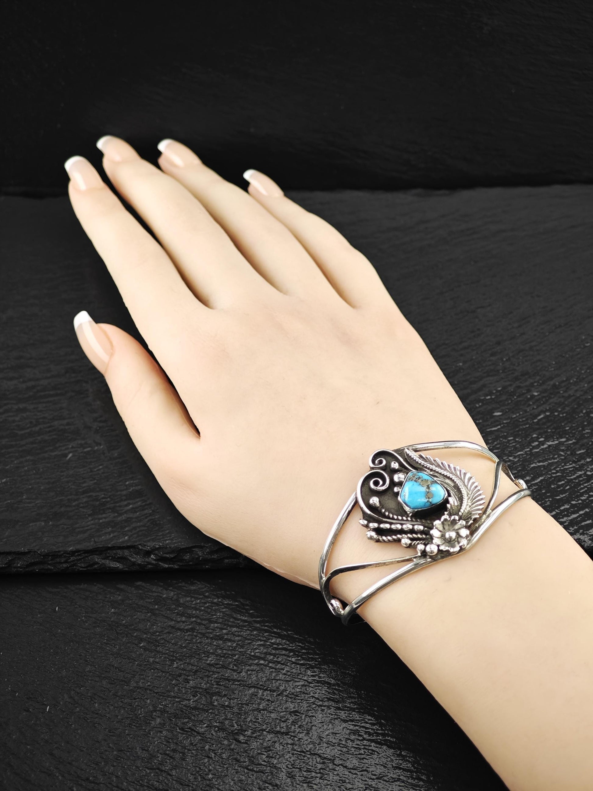 Navajo, Native American Natural Turquoise Cuff Bracelet Sterling Silver