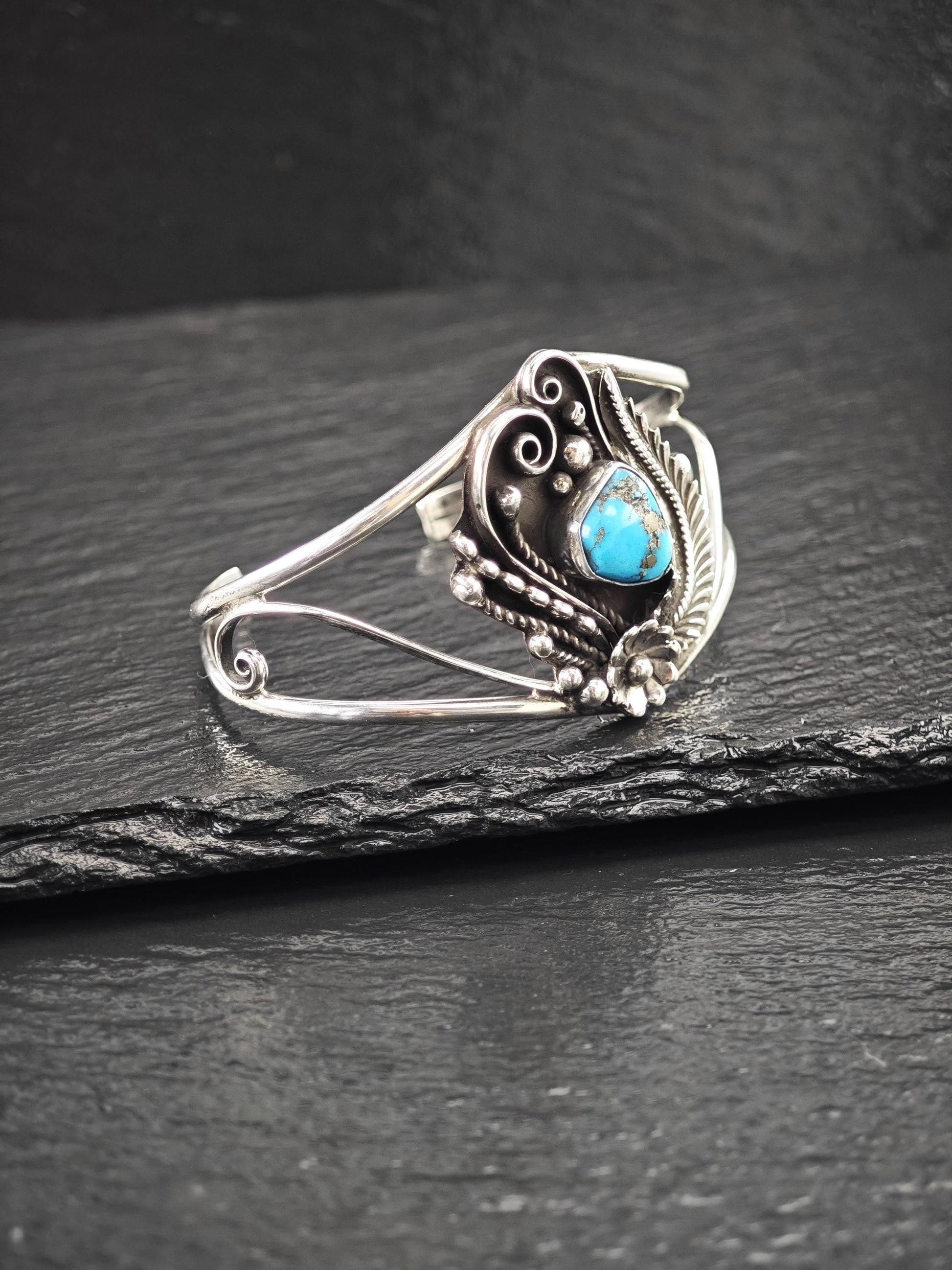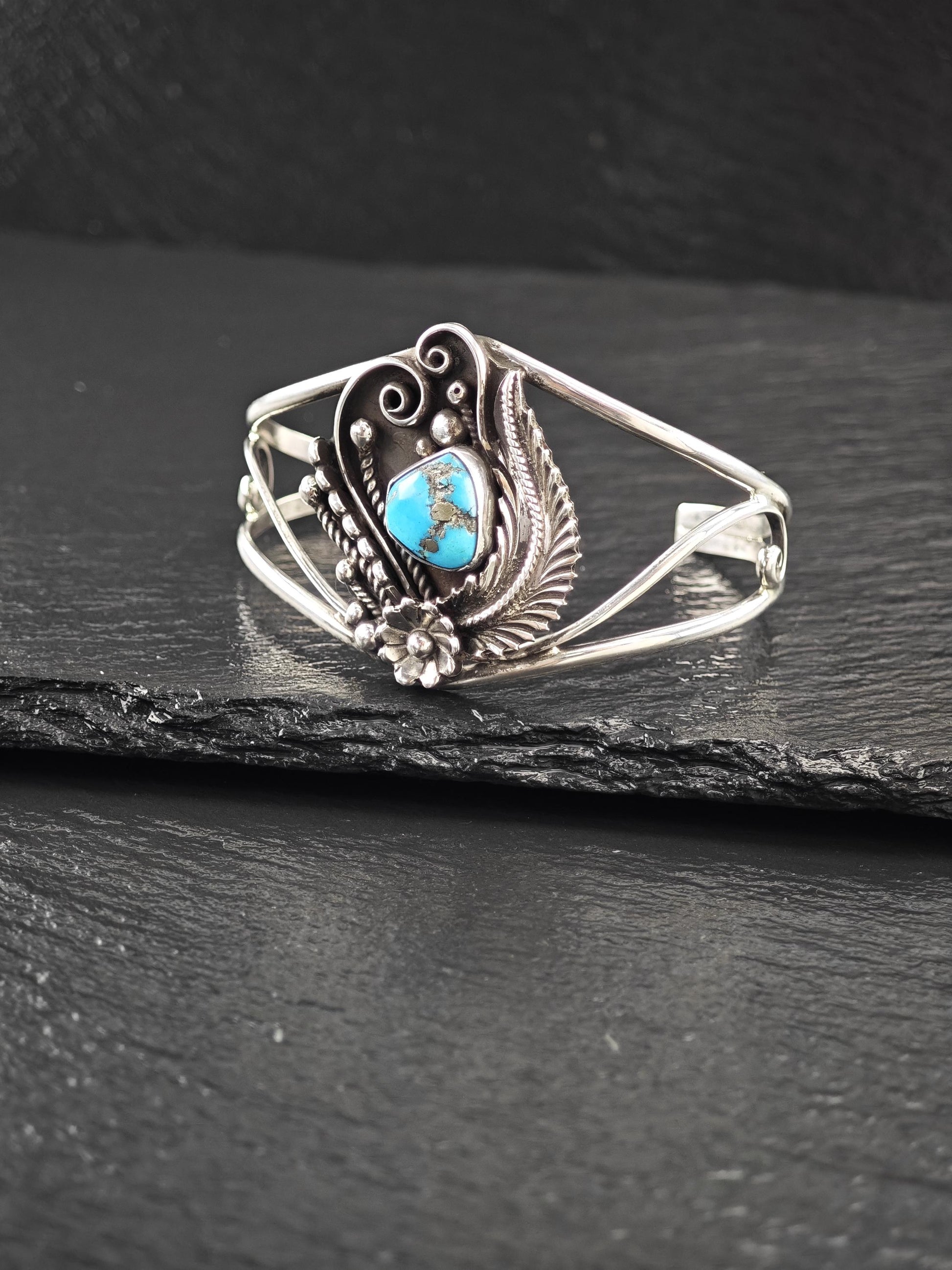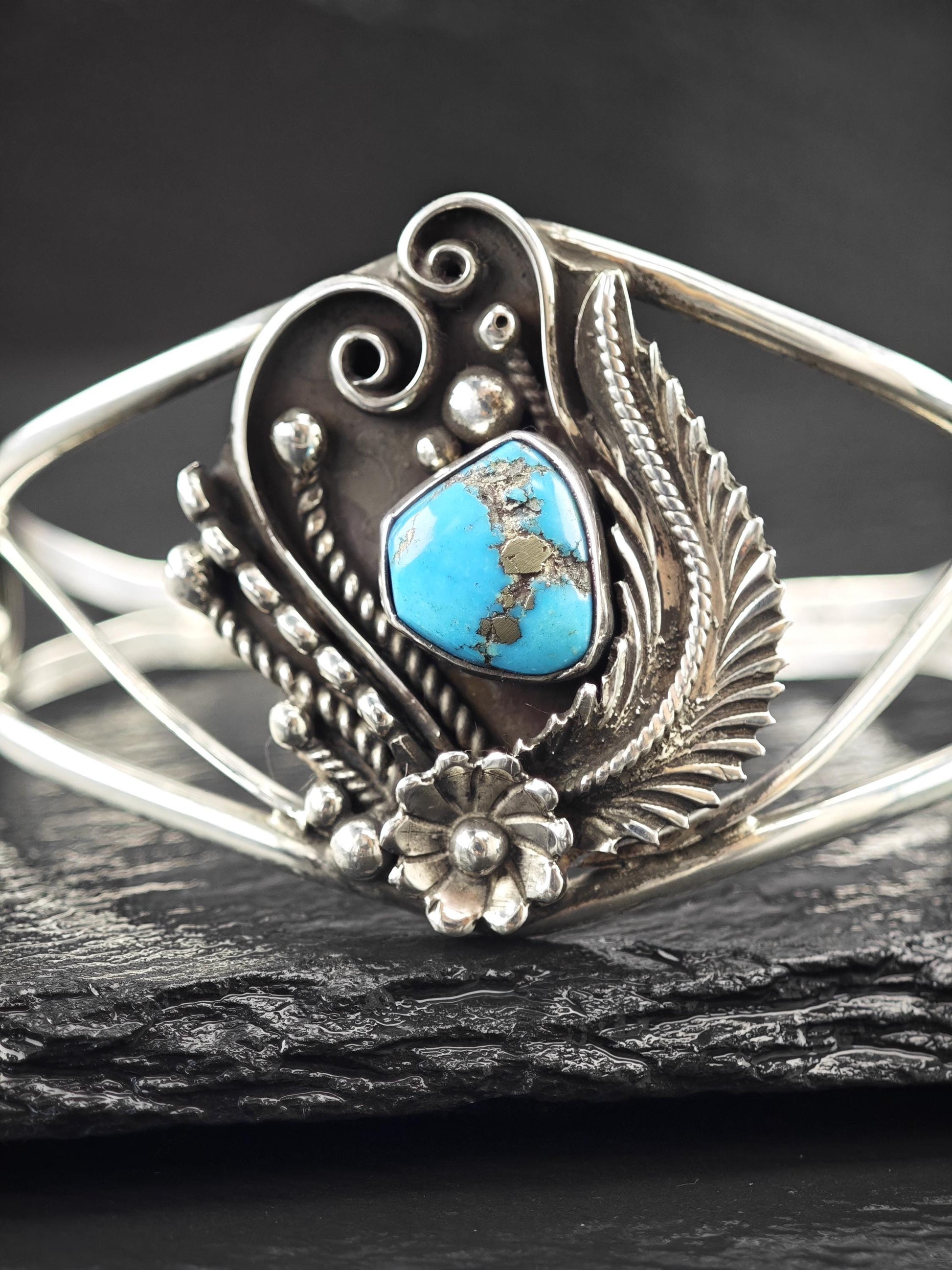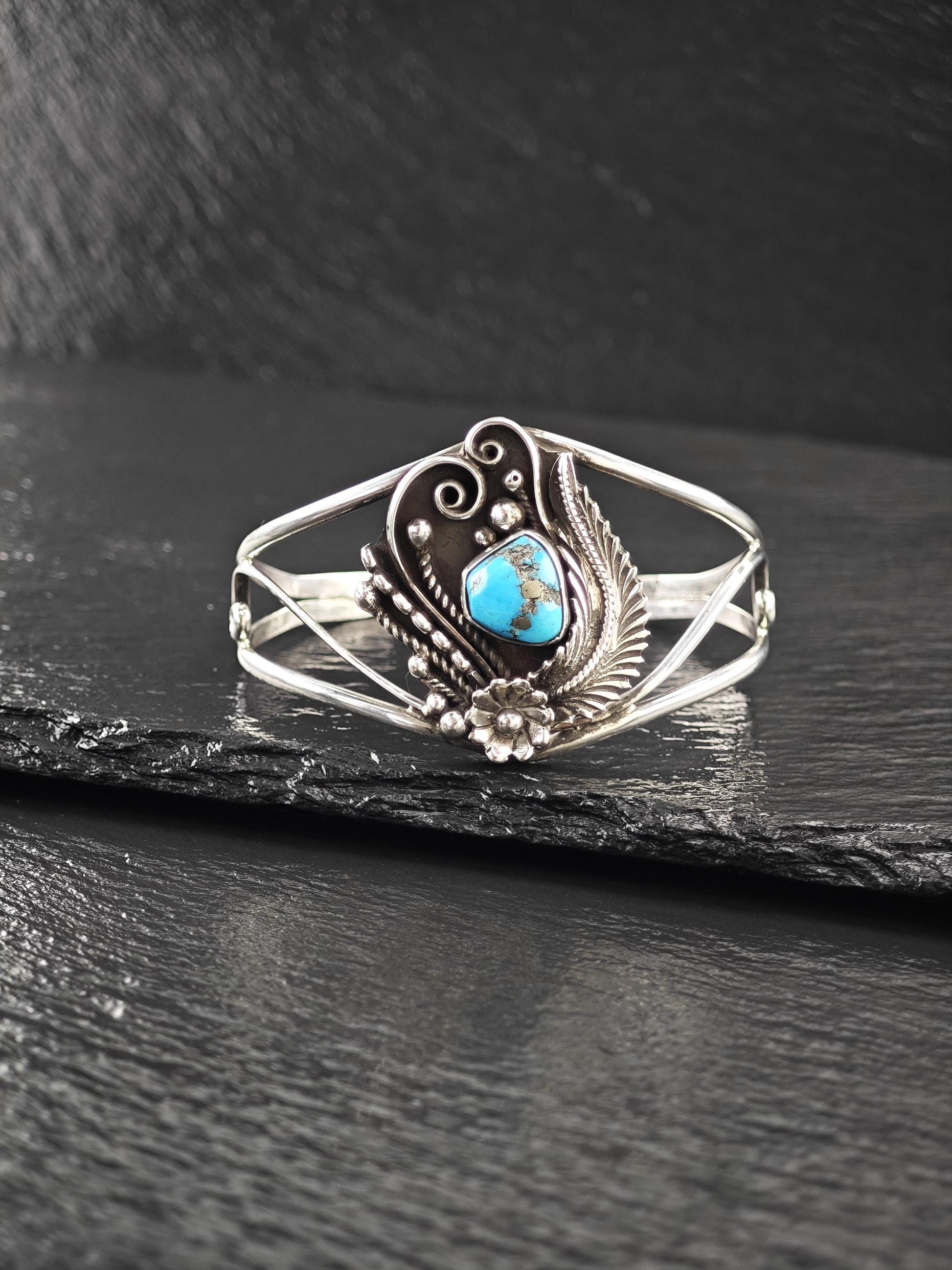 Navajo, Native American Natural Turquoise Cuff Bracelet Sterling Silver