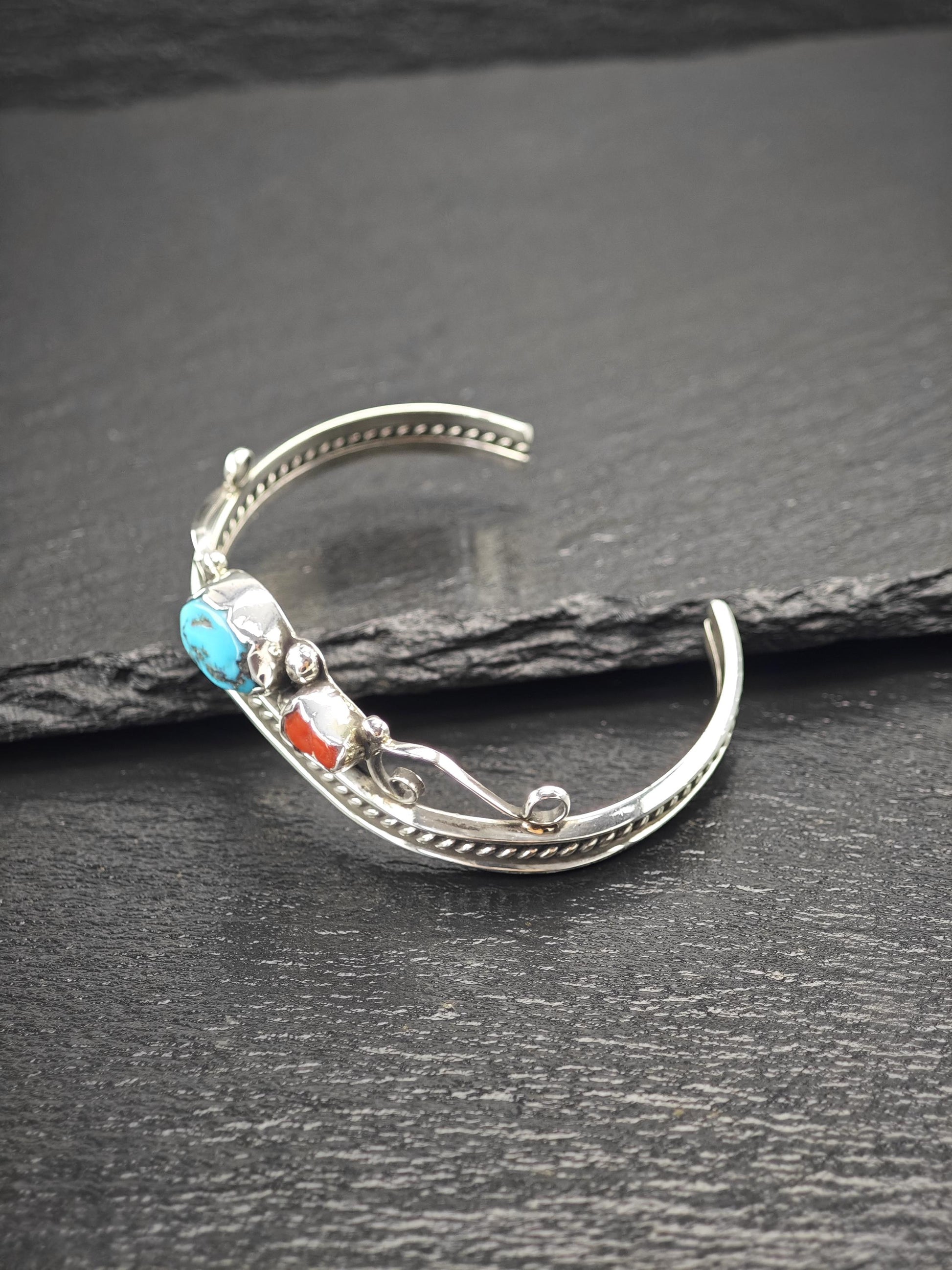 Navajo, Native American Turquoise, Coral Cuff Bracelet Sterling Silver