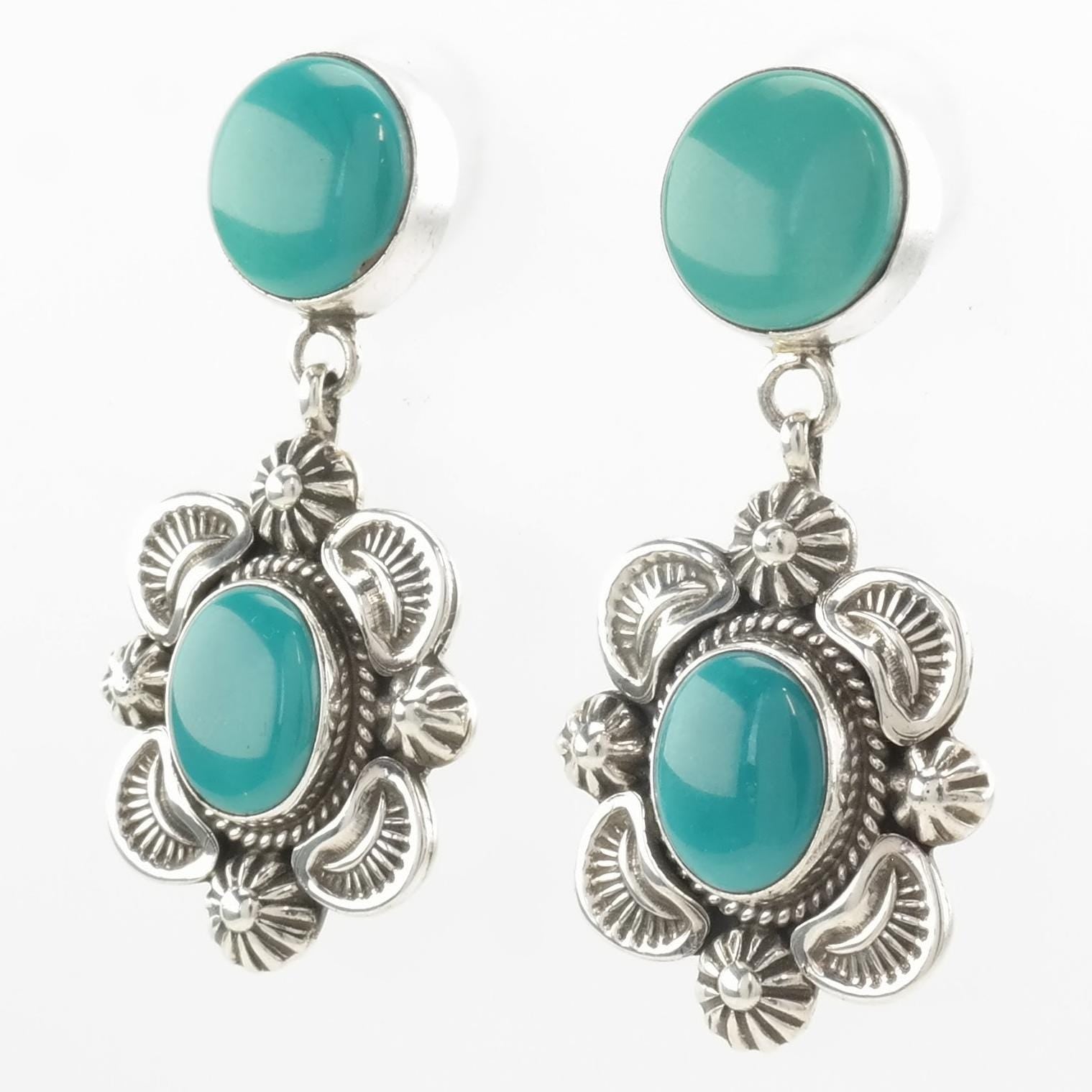 Navajo Sterling Silver Blue Turquoise Floral Earrings Stud, Dangle