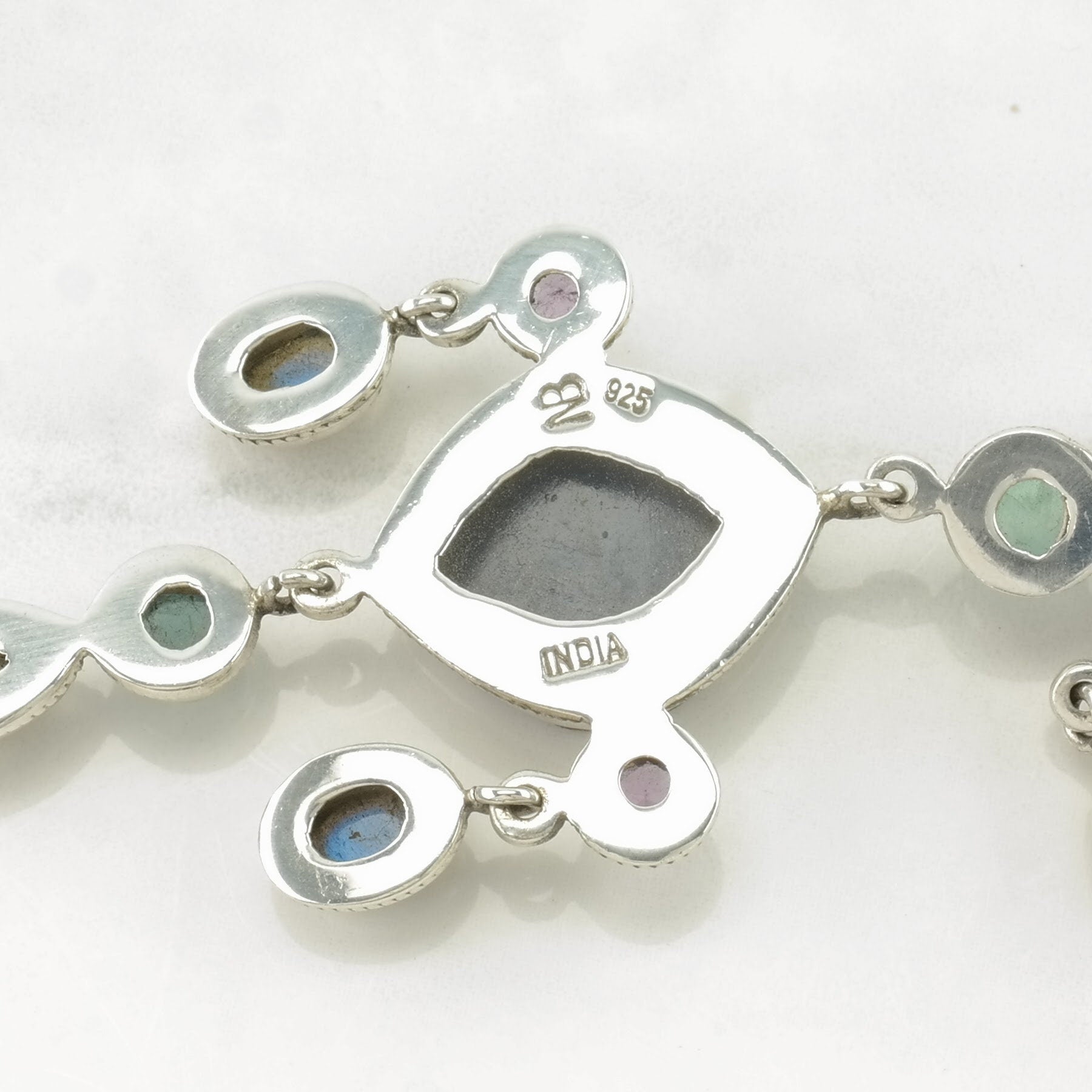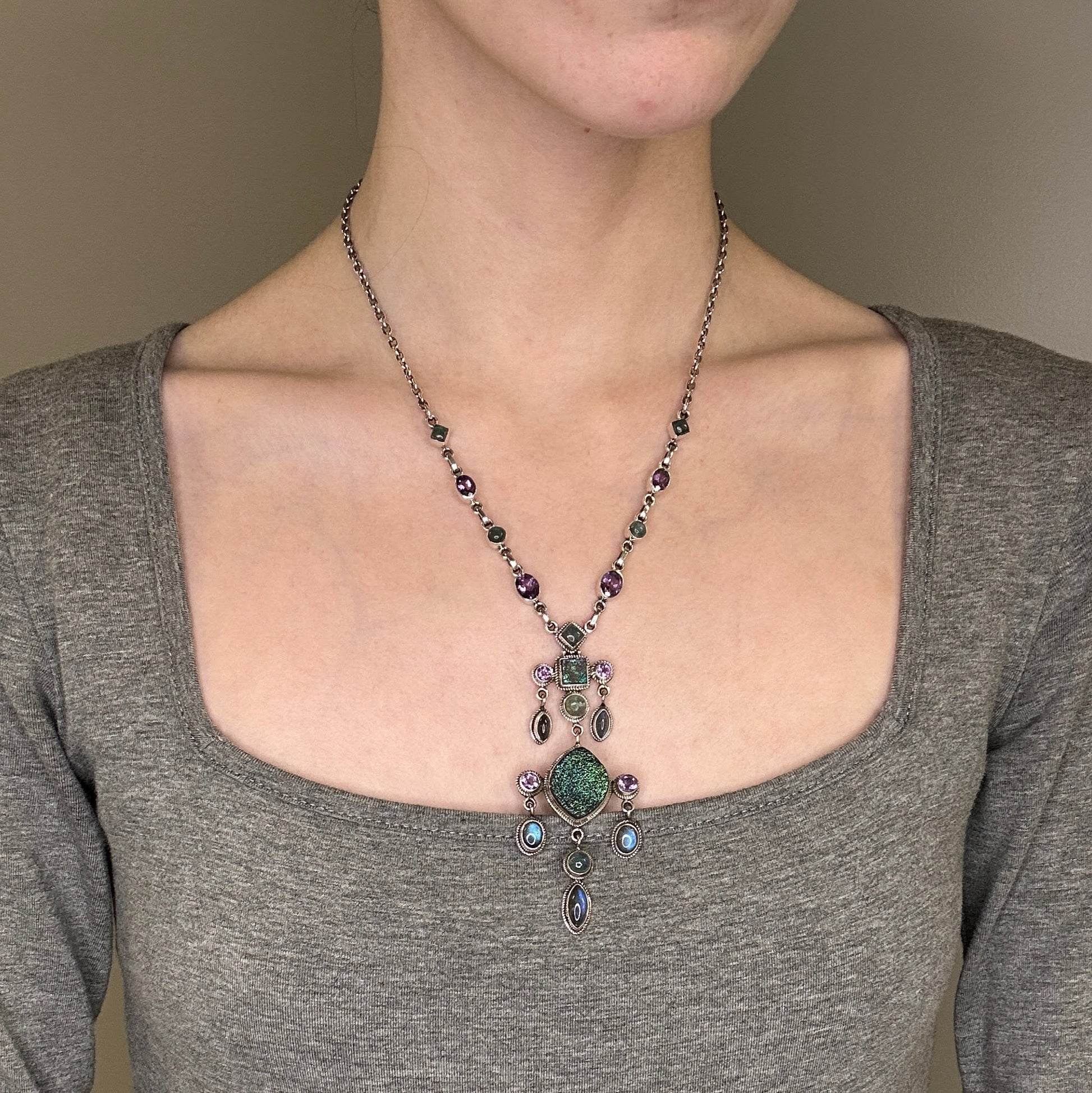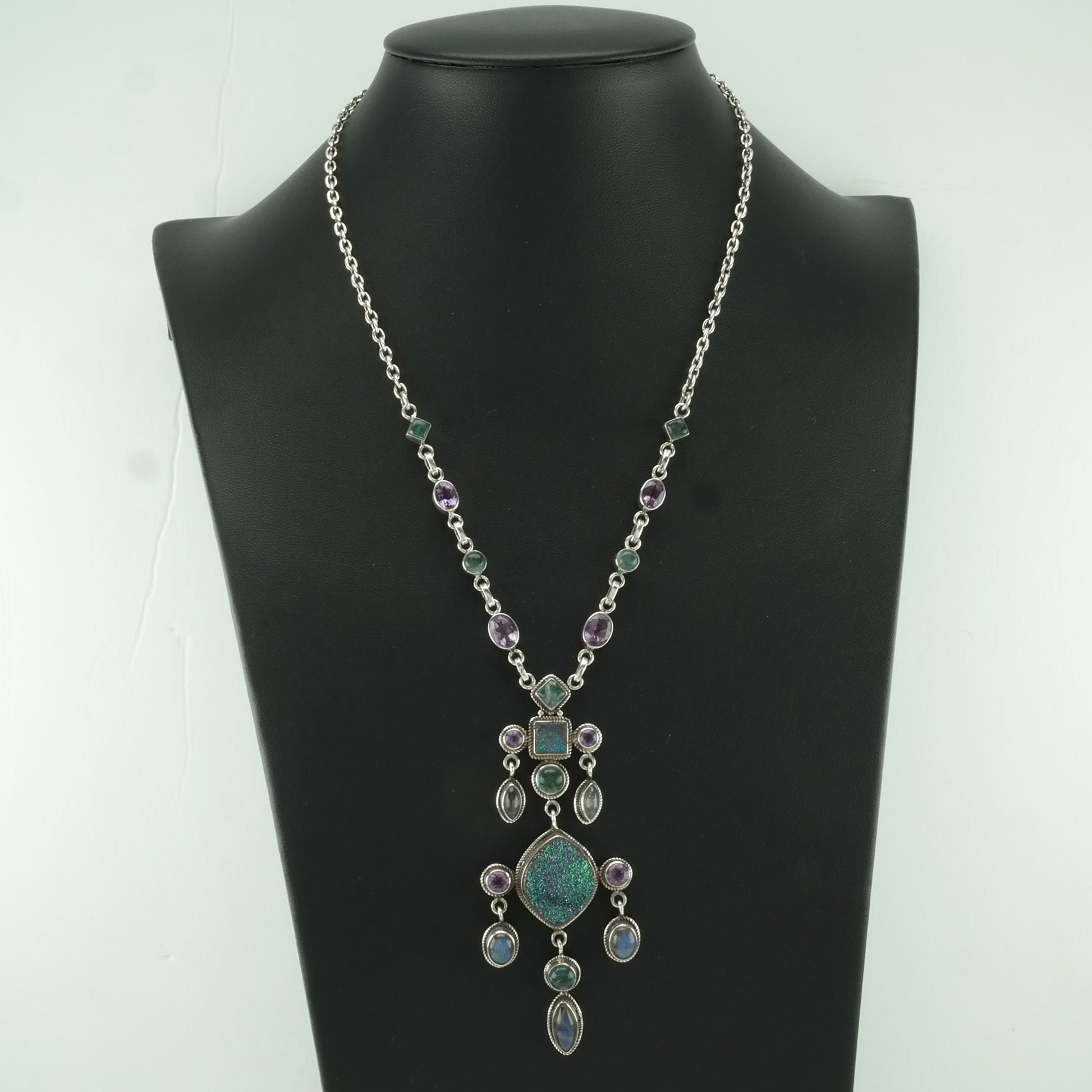 Nicky Butler Dangle Necklace Sterling Silver Purple, Green Labradorite, Amethyst, Druzy