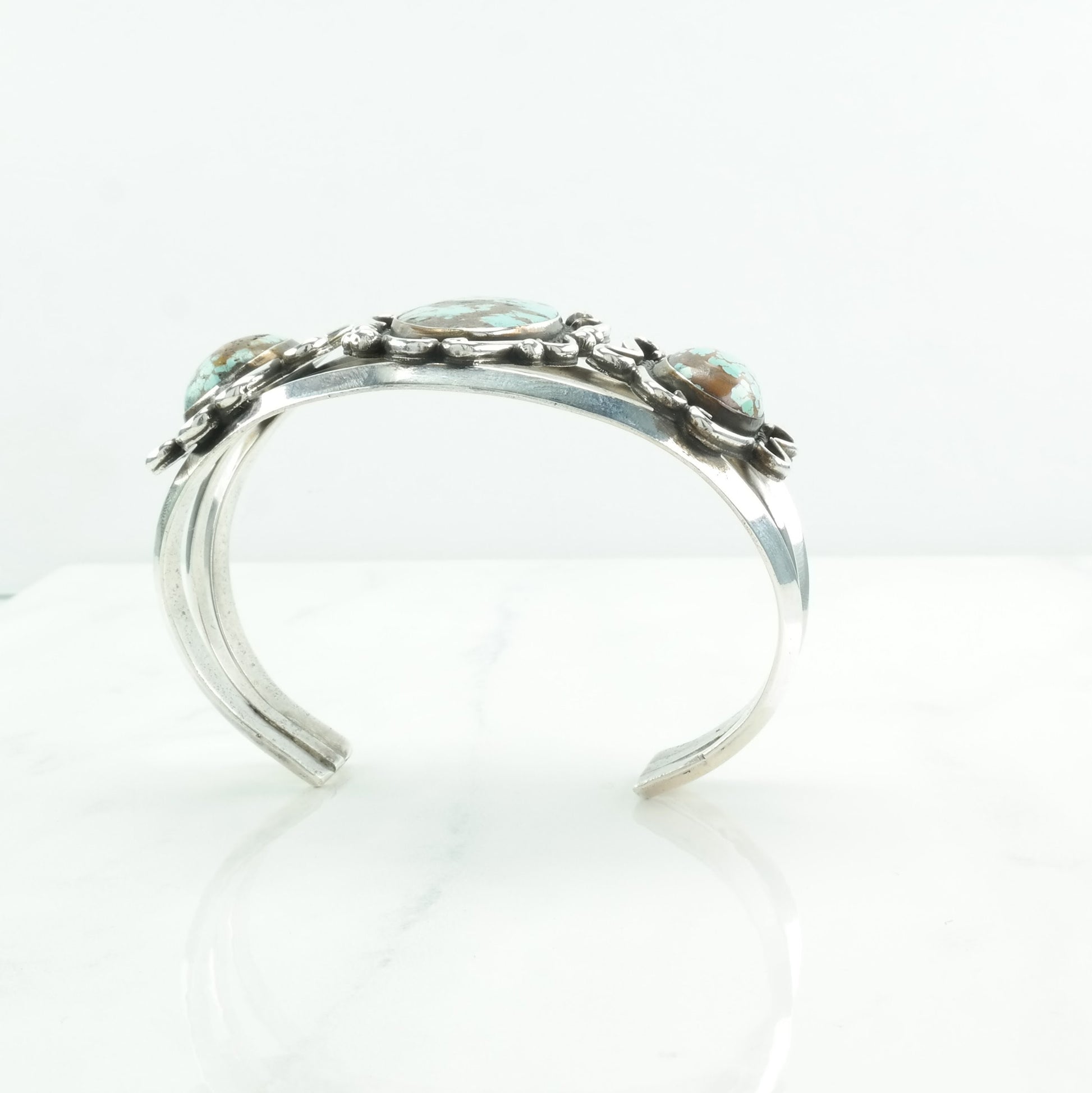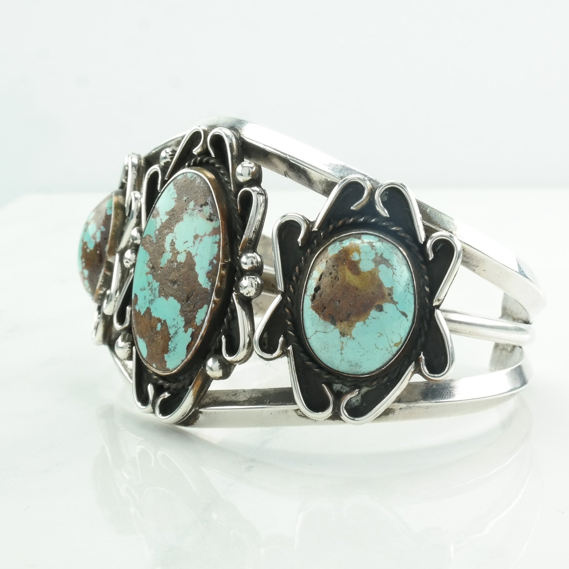 Number Eight Turquoise Native American Sterling Silver Cuff Bracelet Three Stone