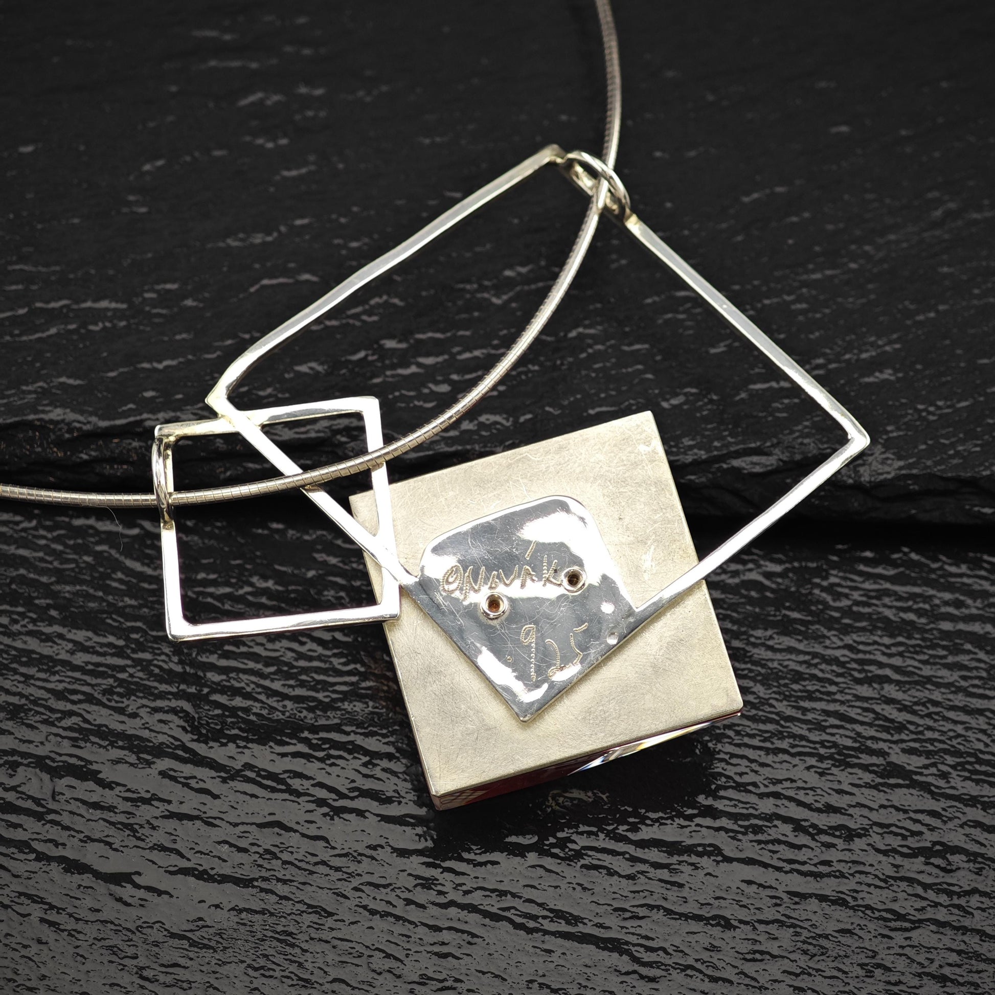 Pavel Novak Sterling Silver Red Glass Abstract, Modernist Necklace