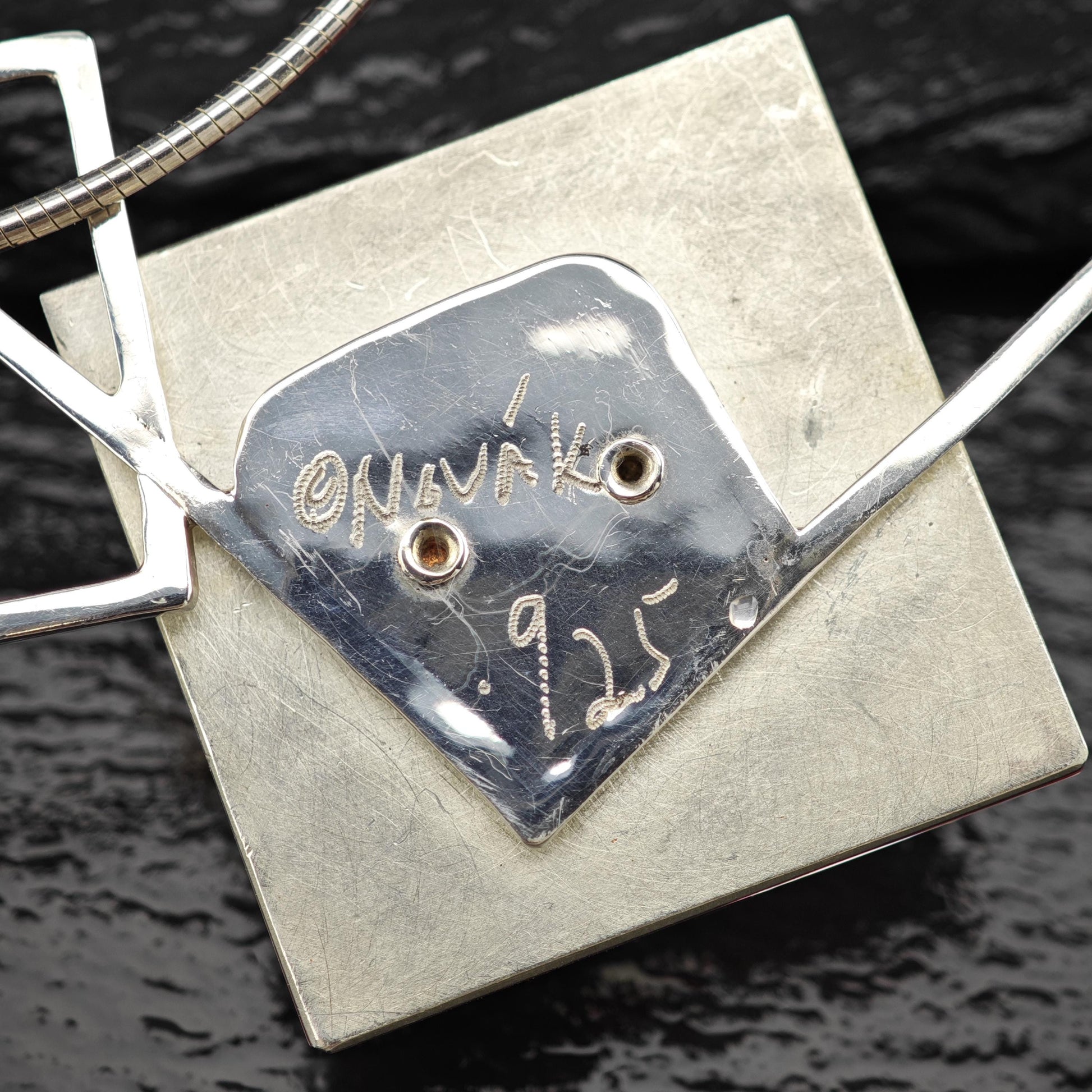 Discover a captivating blend of artistry and craftsmanship with this vintage necklace, a true treasure for lovers of sterling silver and vintage jewelry alike. Designed by Czech-trained glass artist Pavel Novak, this piece showcases a striking red glass abstract pendant set in hand-worked 925 silver, making it an exceptional statement for any collection. Whether searching for a unique holiday gift or a timeless addition to your own wardrobe, this sterling necklace offers both vivid color and modernist elegance.
