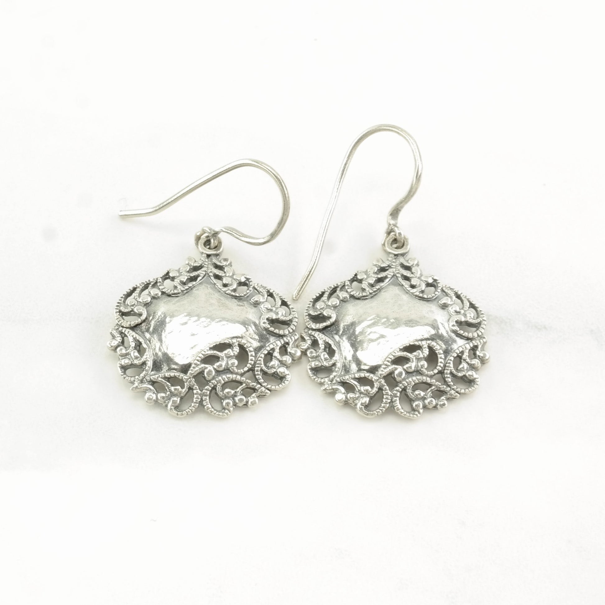 Paz Sterling Silver Hammered Art Nouveau Style Earrings Fish hook