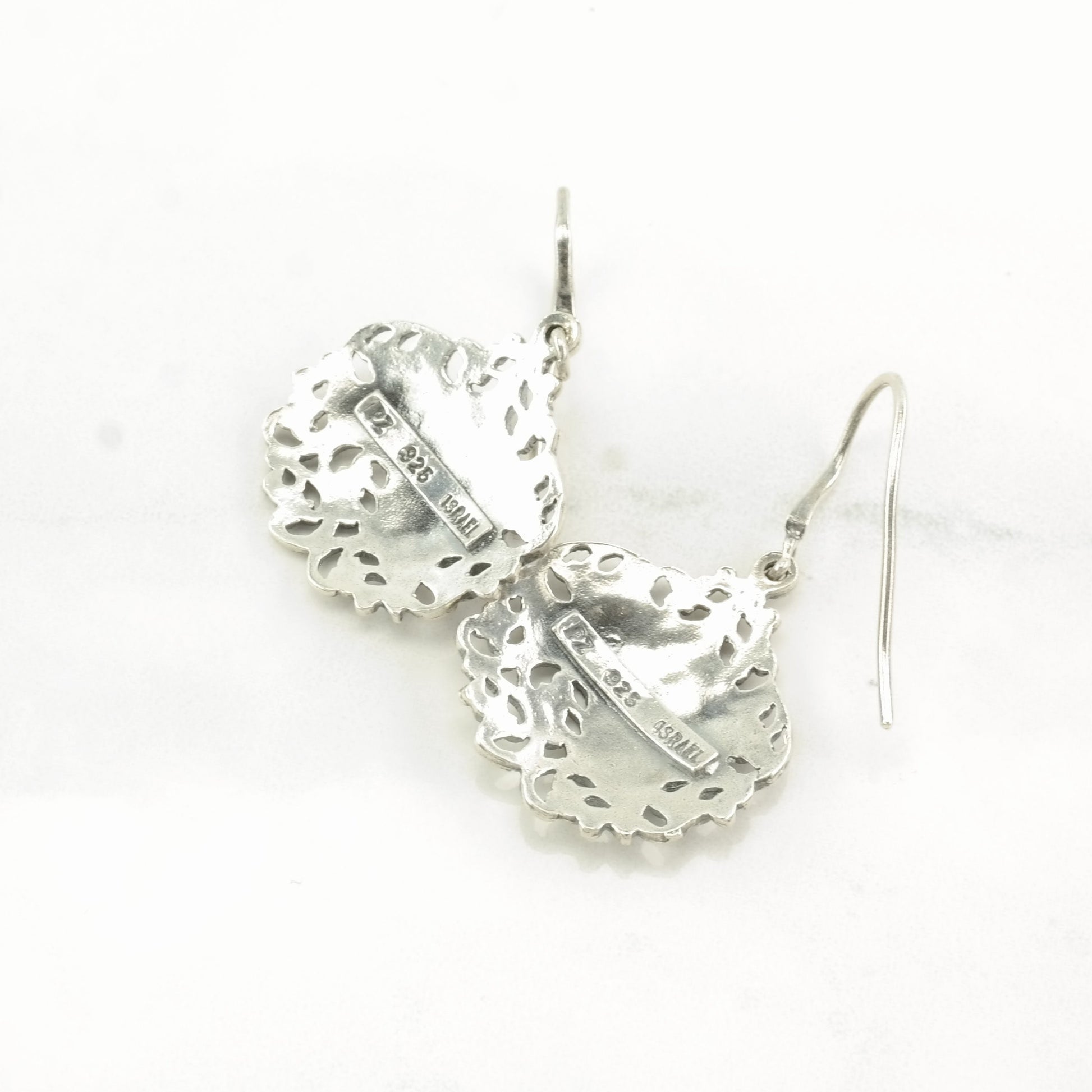 These vintage sterling silver earrings are 15/16" inches long, and 7/8" inch wide